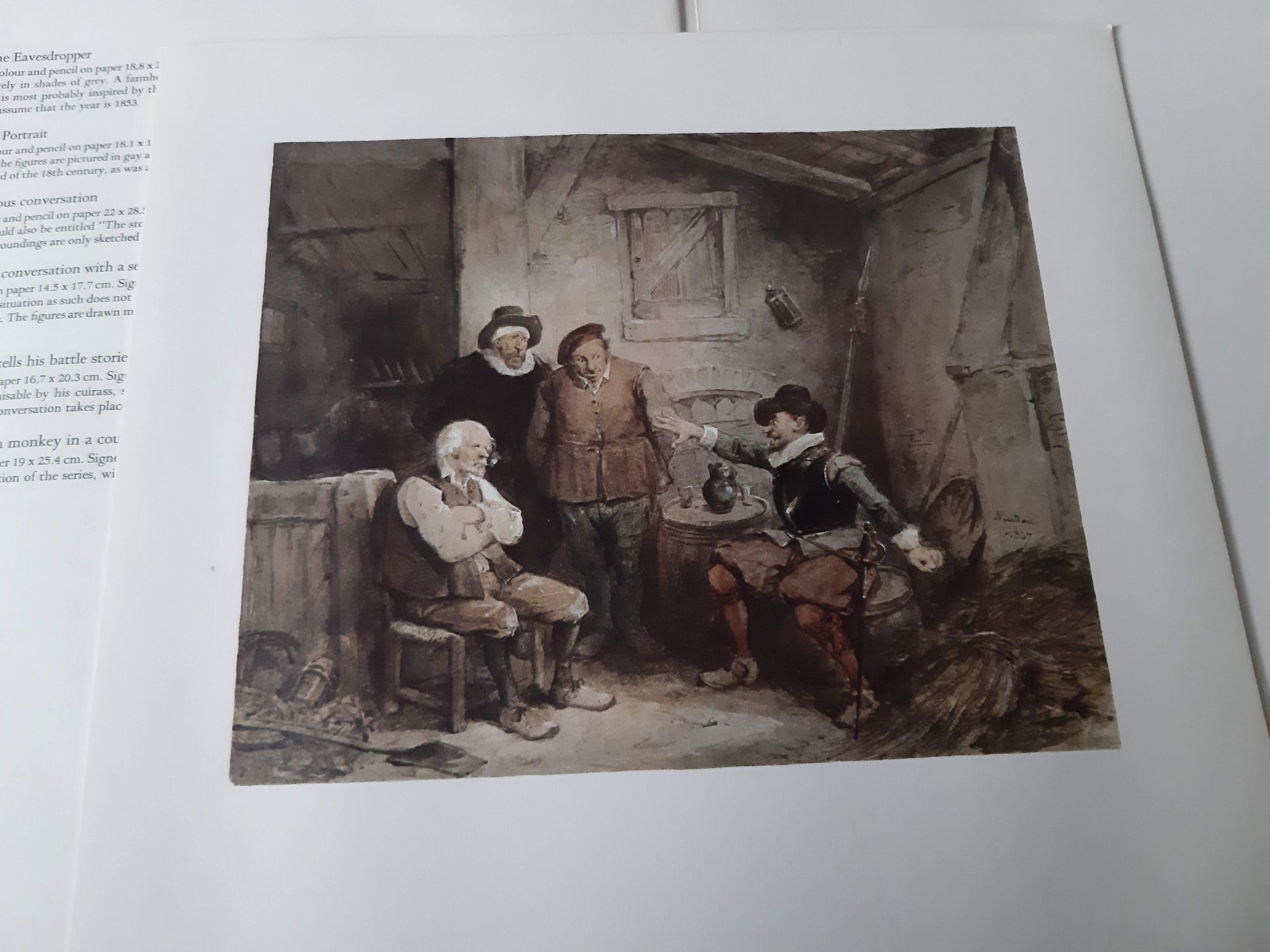 Zes gereproduceerde tekeningen en aquarellen. 1. The Eavesdropper2. The Portrait3. A serious conversation4. A girl in conversation with a seated man5. A warrior tells his battle stories6. A boy with a monkey in a country in In 1968 geproduceerd in het koperdiepdrukprocede door Drukkerij "Vada" te Wageningen.