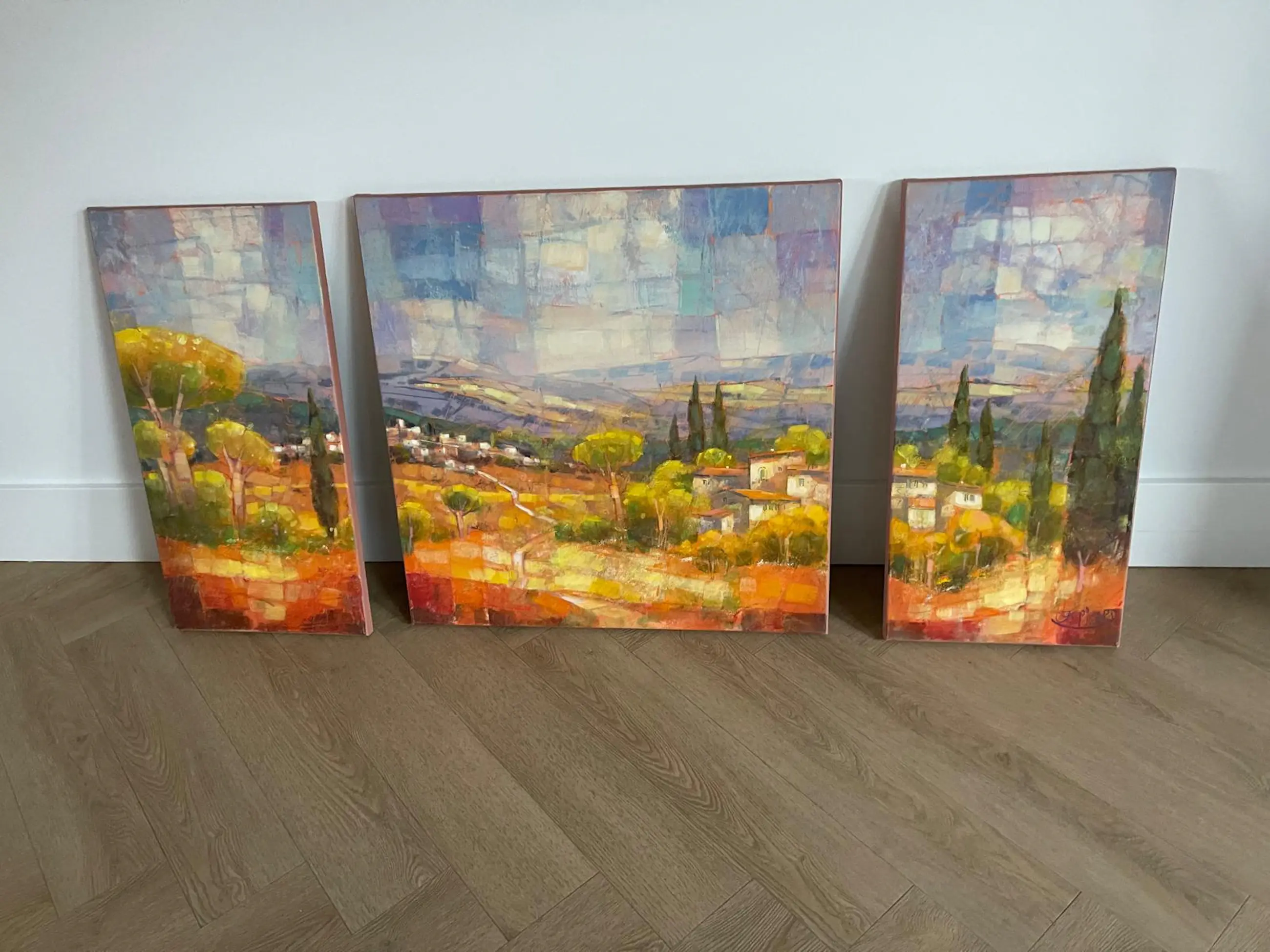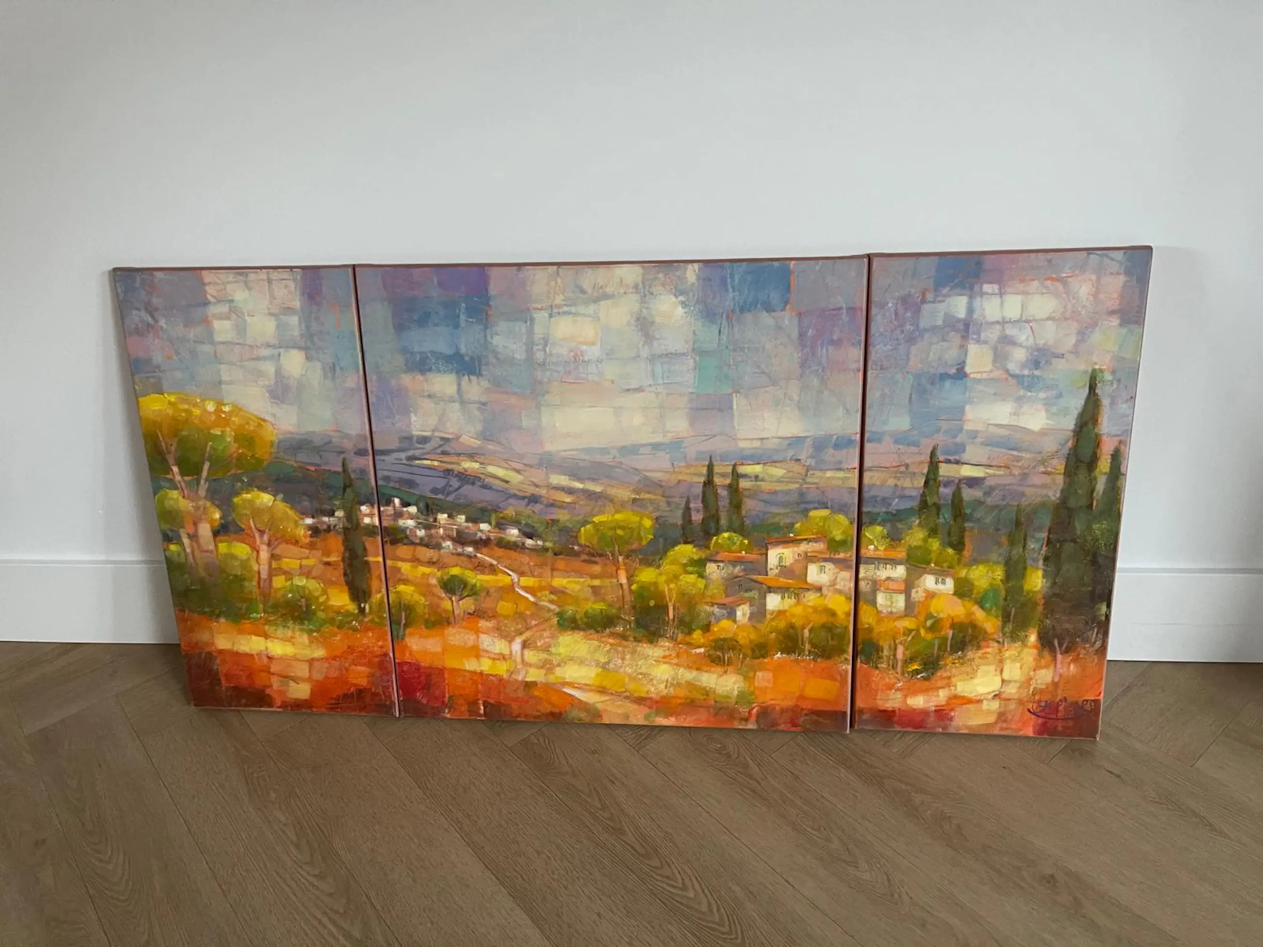 Formaat van het drieluik 30 x 60 , 60 x 60, 30 x 60 cm totaal 120cm x 60cm liggend