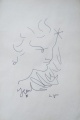 Handzeichnung in schwarzer Tinte auf feinem Papier (die Tinte ist rückseitig des Blattes sichtbar), Spätwerk verm. der 60er Jahren. Betitelt "Jean" (Jean Marais, bekanntes Motiv). Grösse das Blatt ca. 33 x 22 cm, von dem Künztler handsigniert. Zustand: sehr gut mit Ausnahme leichter Gebrauchspuren sowie wegen dem Älter leicht gebraünte Lichtrände. Herkunft: Privatsammlung. Privatverkauf ohne Gewähr, keine Provenance Dokumente sind vorhanden (bitte vor dem Bieten/Zuschlag persönliche Recherchen veranlassen), ohne Rückgaberecht. Überweisung auf deutsches Konto möglich. Versand versichert: Frankreich EUR 15, andere EU Länder EUR 18, Weltweit auf Anfrage.
