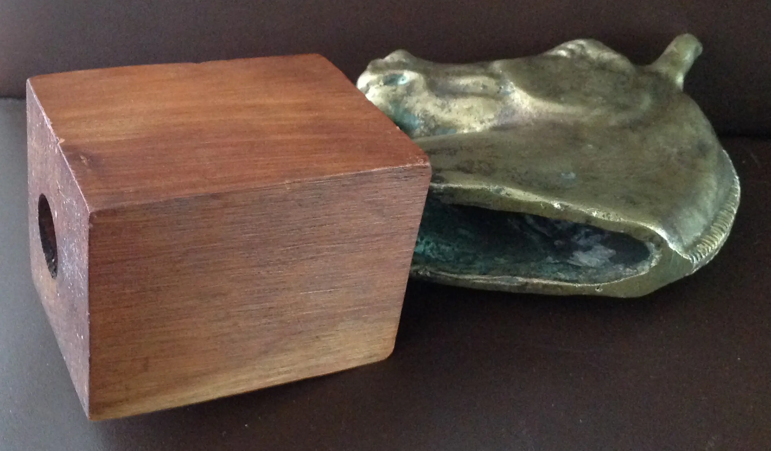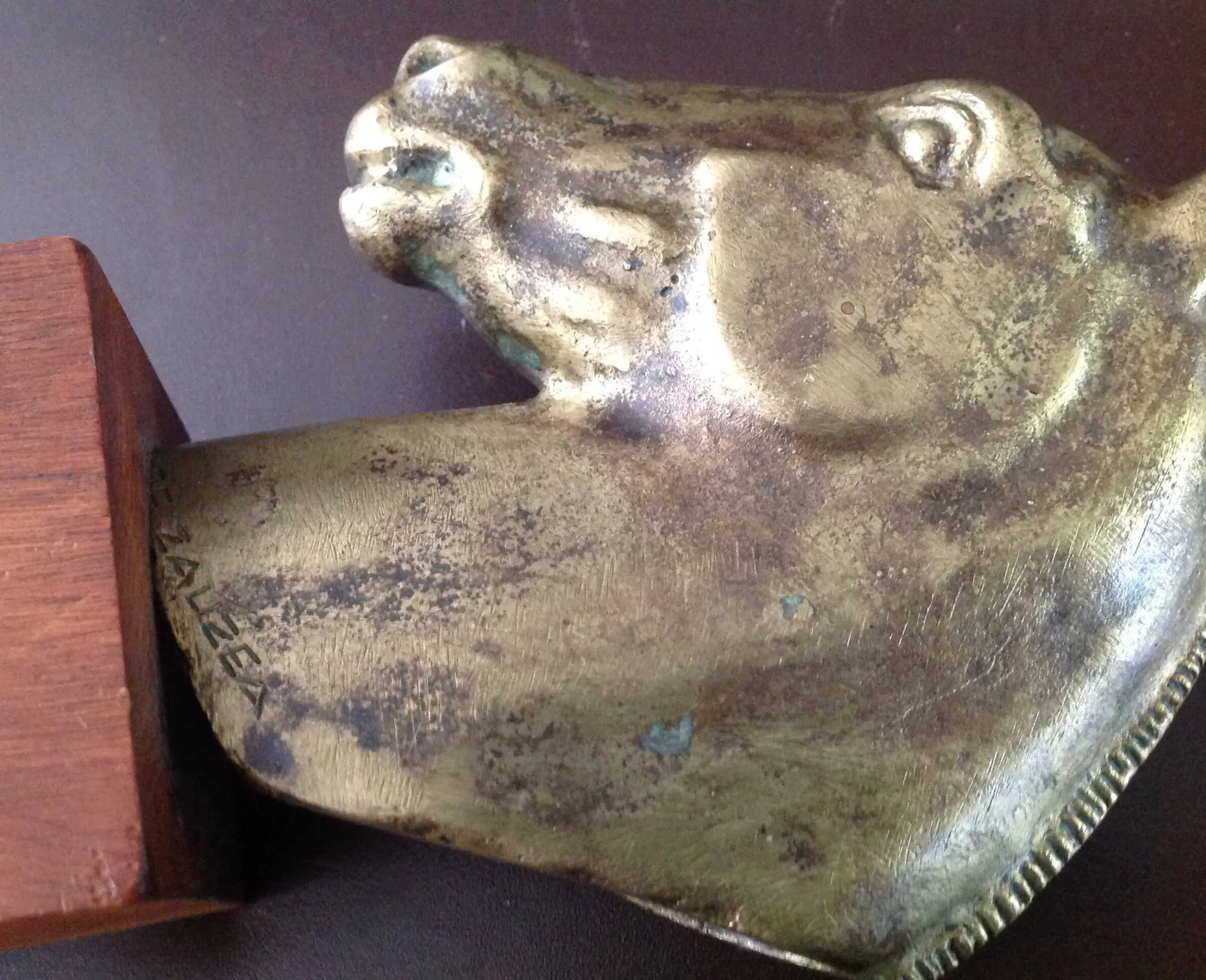 Twee sculpturen paardenhoofd, gesigneerd De Sauzea. Prachtige kwaliteit brons, gemonteerd op houten sokkel.