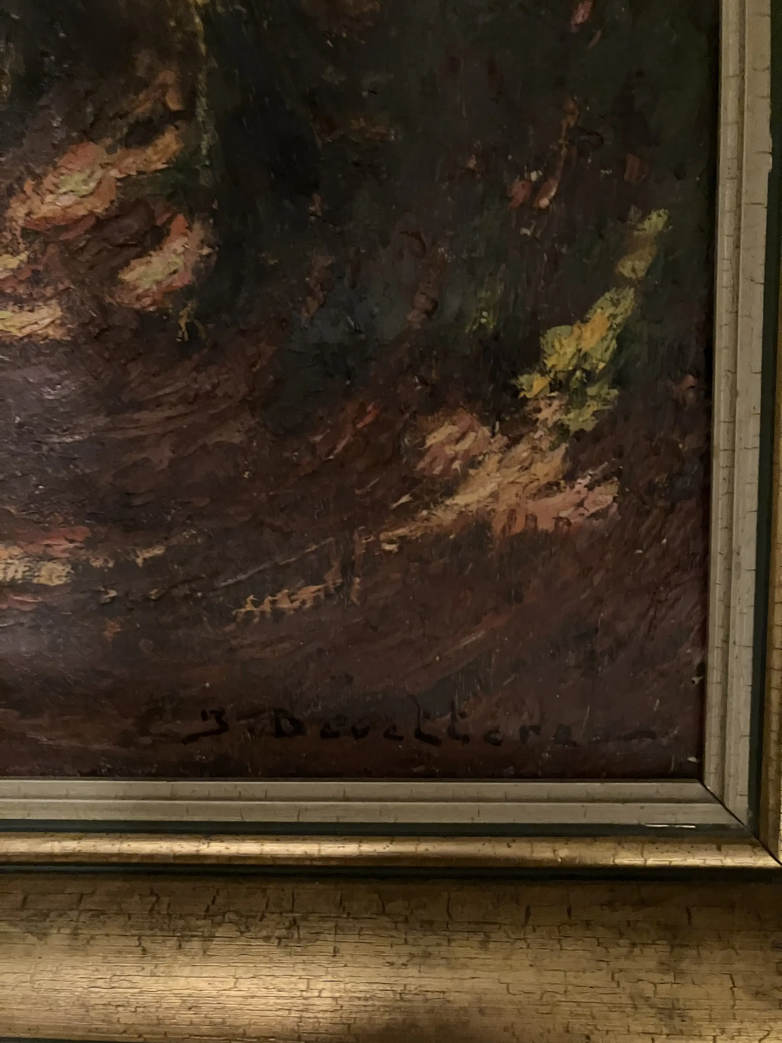 Schilderij van de Waalse schilder Jean de Vettere, geboren in Brussel in 1890 - jaar van overlijden onbekend. Zijn favoriete thema's waren vooral de natuur en landschappen. Hij signeerde zijn werken met 'Devettere'. Olieverf op doek 60cm breed x 70cm hoog