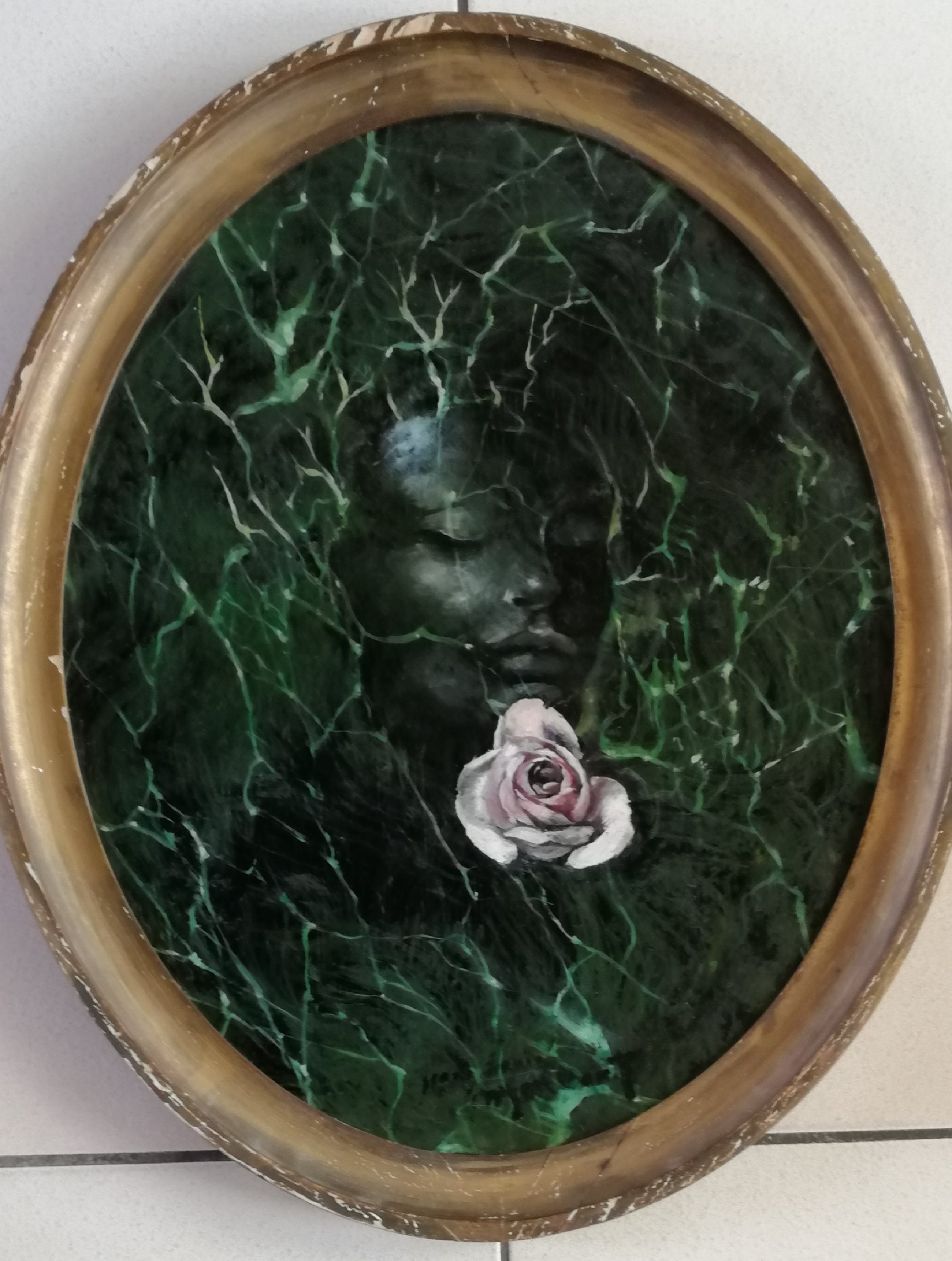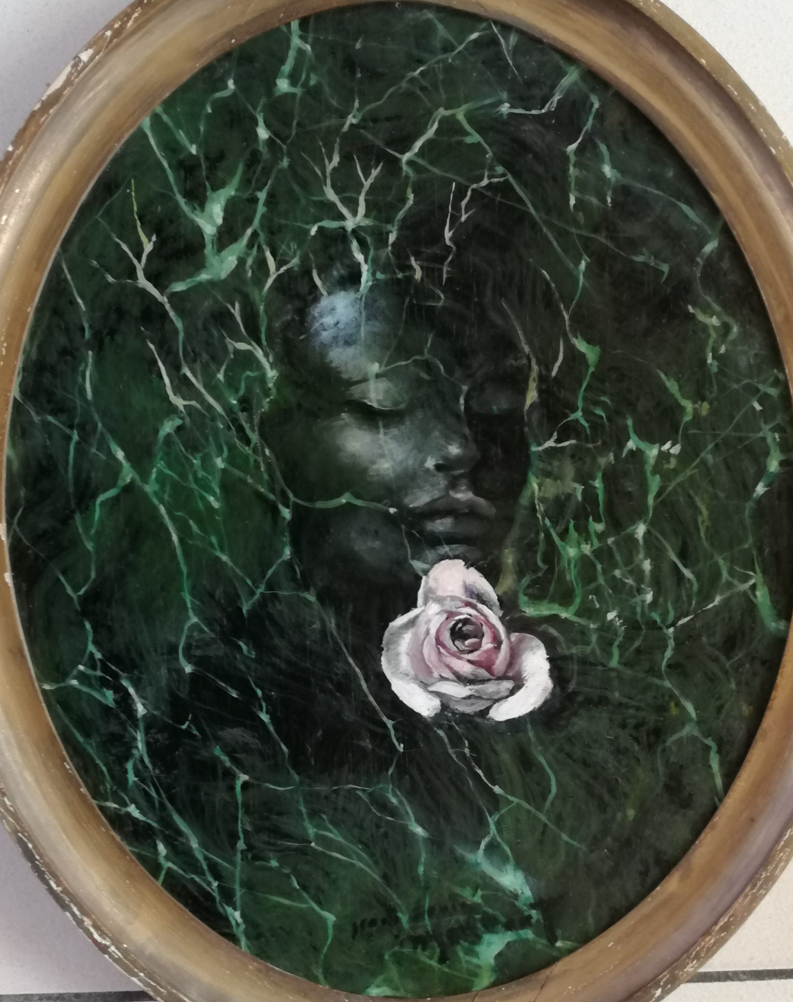 Olieverf op een ovaal paneel. Gesigneerd rechtsonder. Jean Denis Maillart werd geboren te Parijs op 19 september 1913 en overleed te Illiers-l'Evêque in 2004. Opgeleid aan de Ecole des Beaux Arts. Later was hij de leraar van Francois Morellet. Hij was portretschilder, graveur, illustrator, fresco's en decoraties.