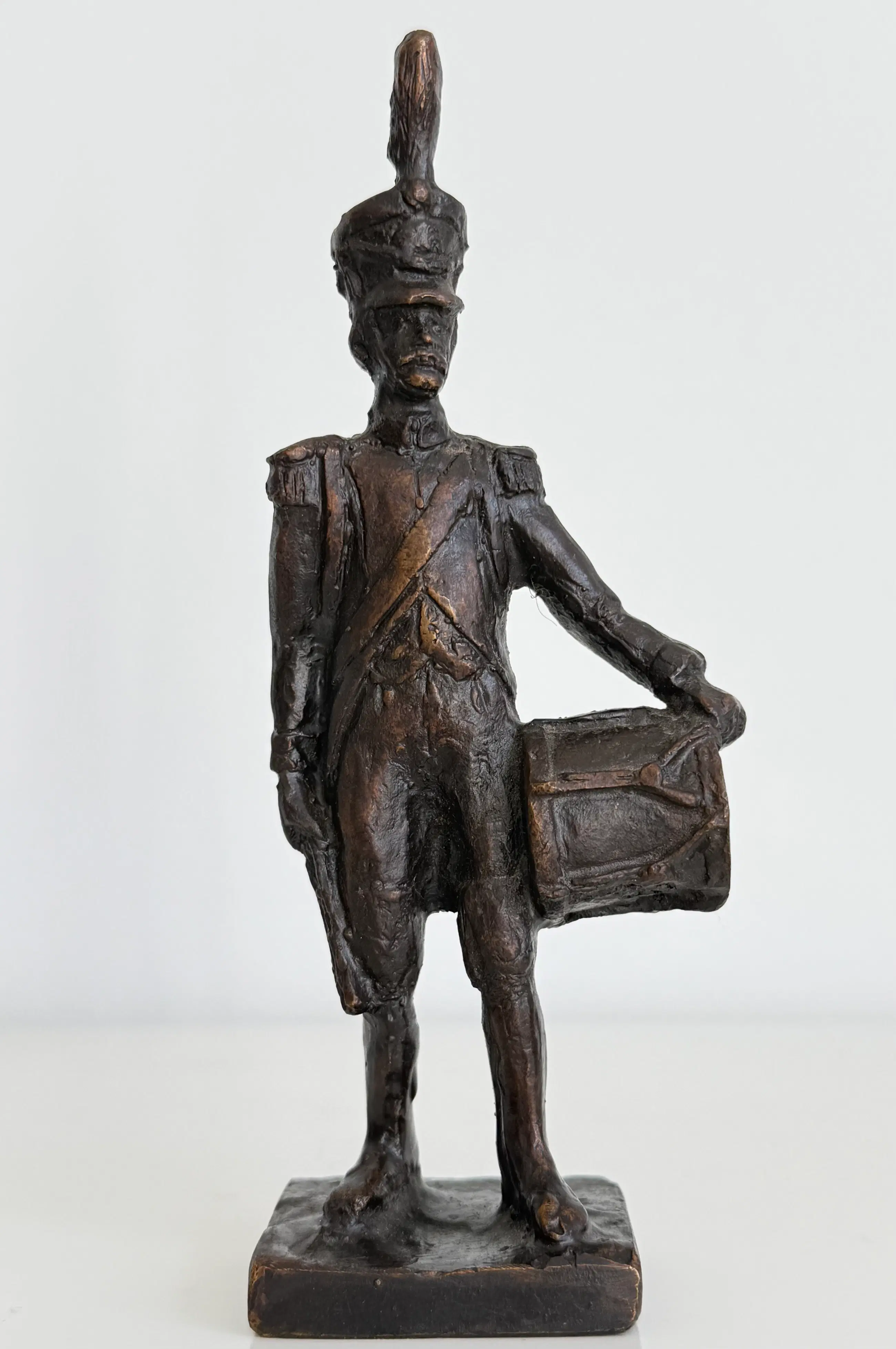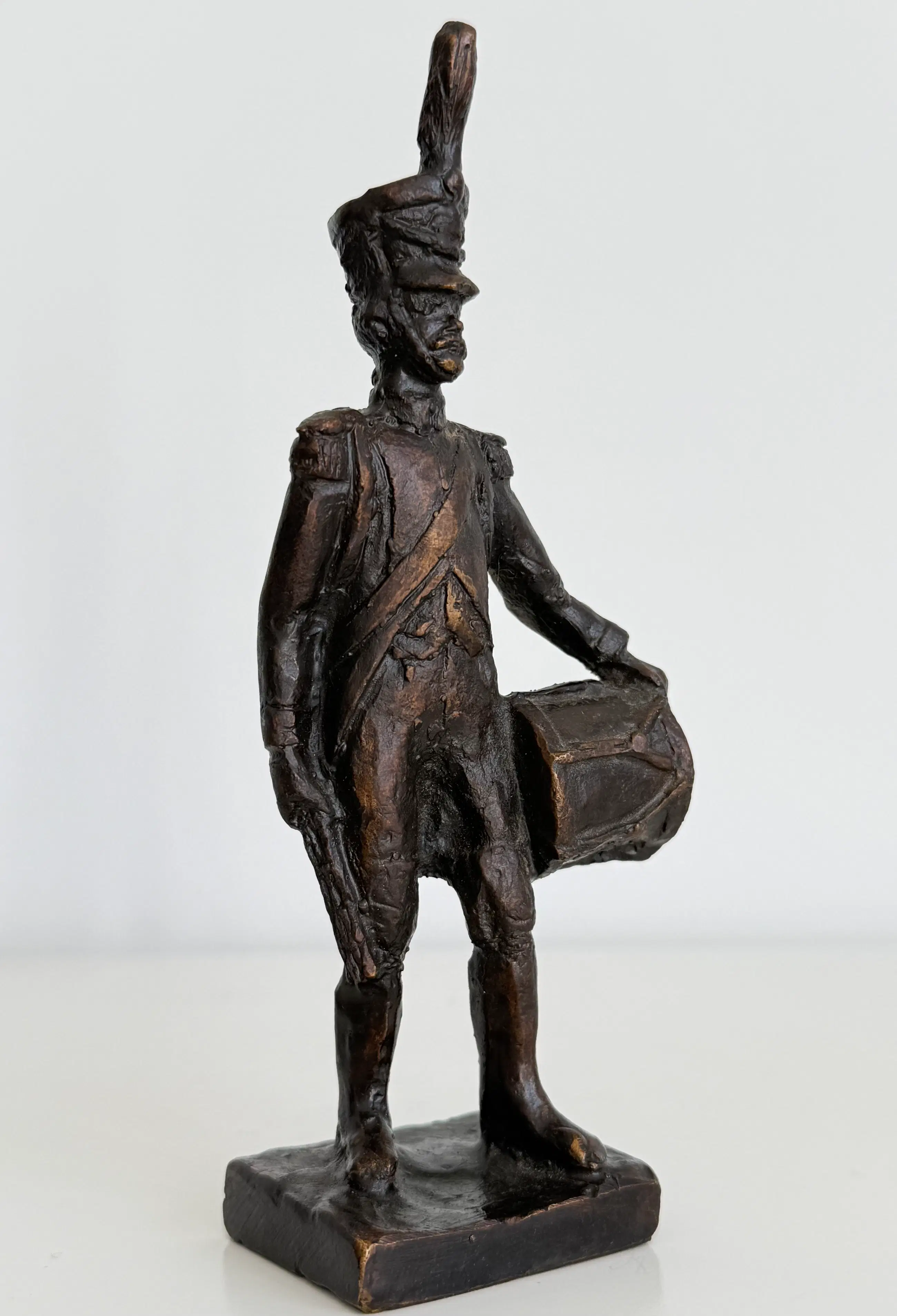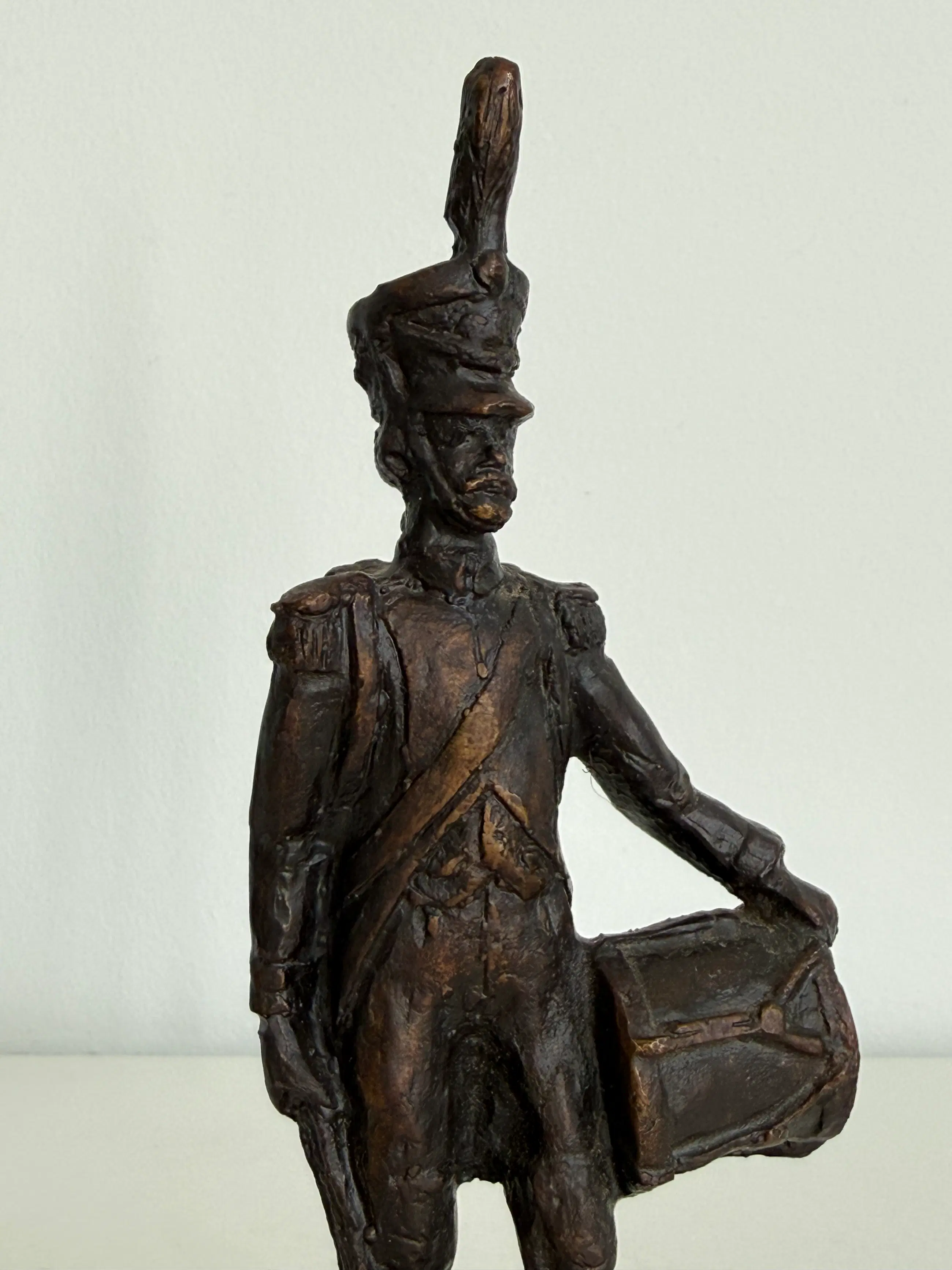 Prachtig gedetailleerd sculptuur van een tamboer, een militaire trommelaar.
