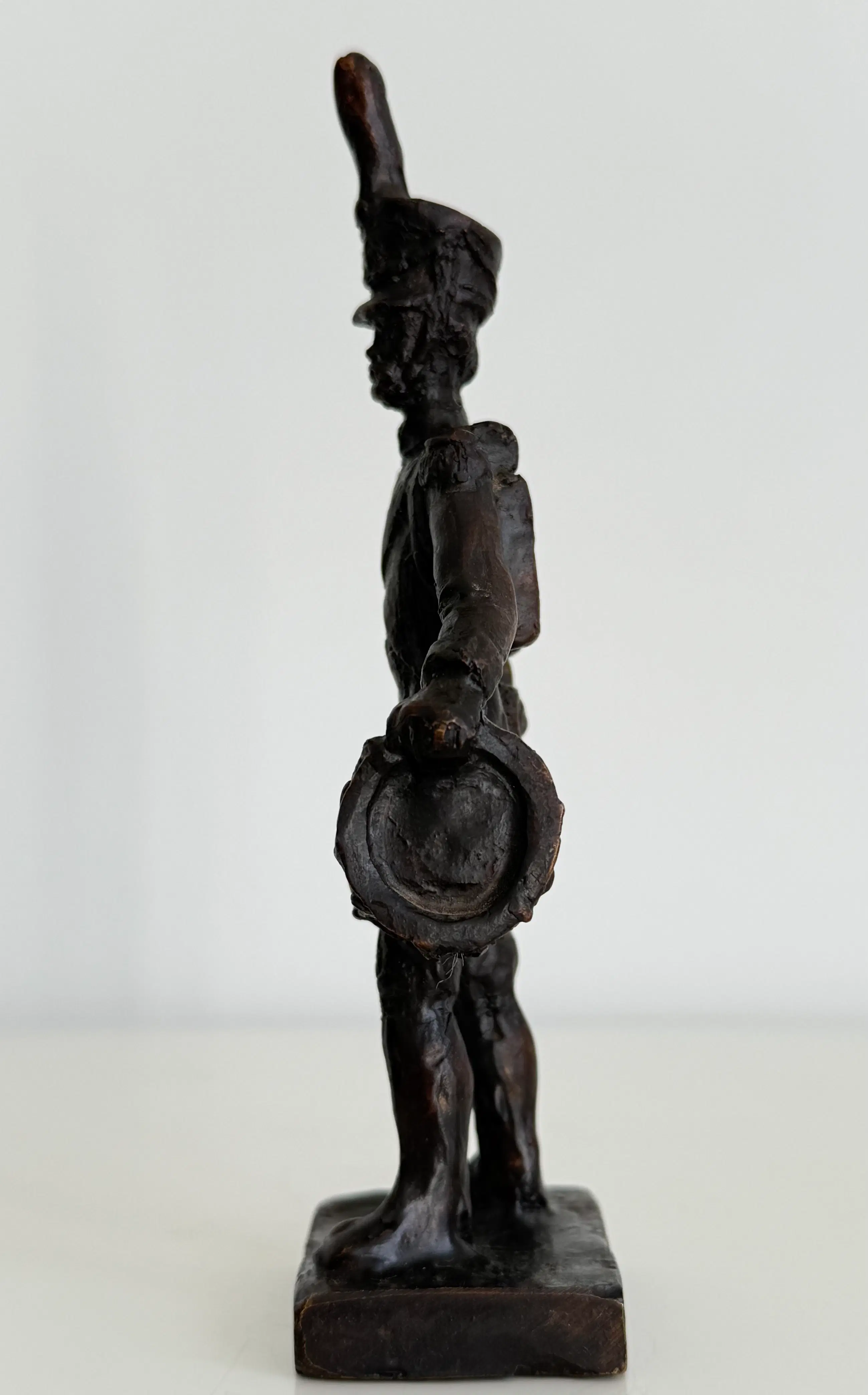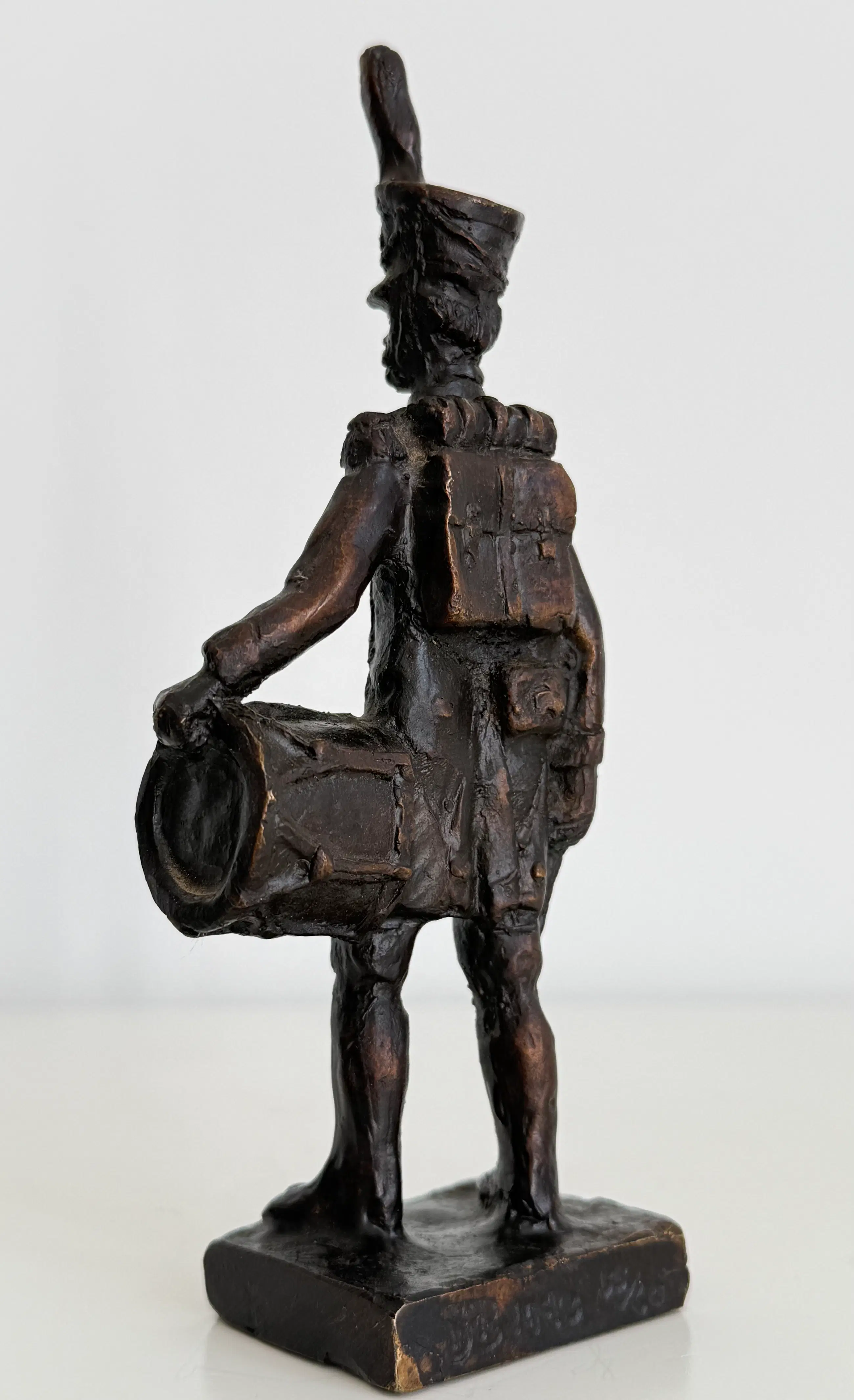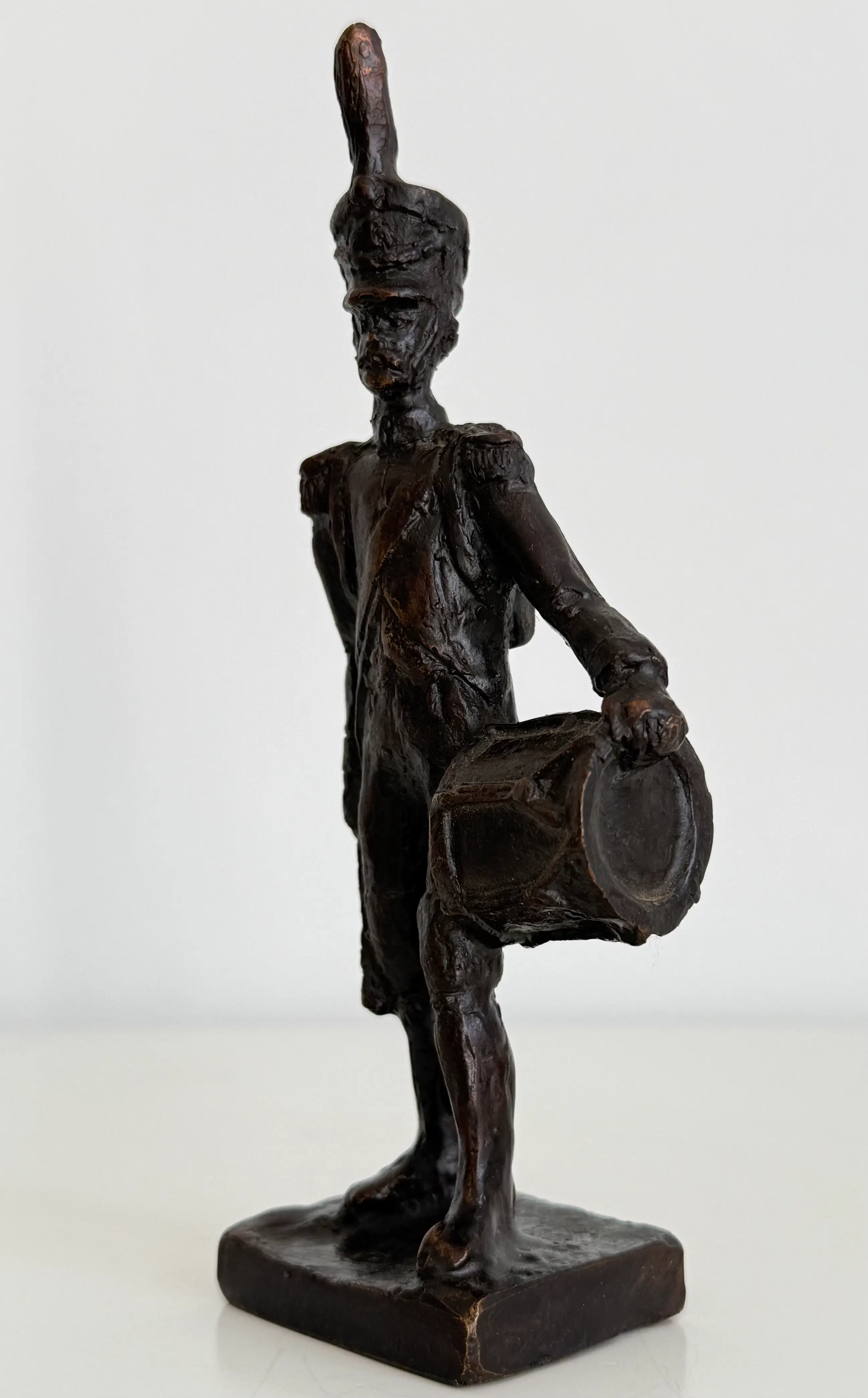 Prachtig gedetailleerd sculptuur van een tamboer, een militaire trommelaar.