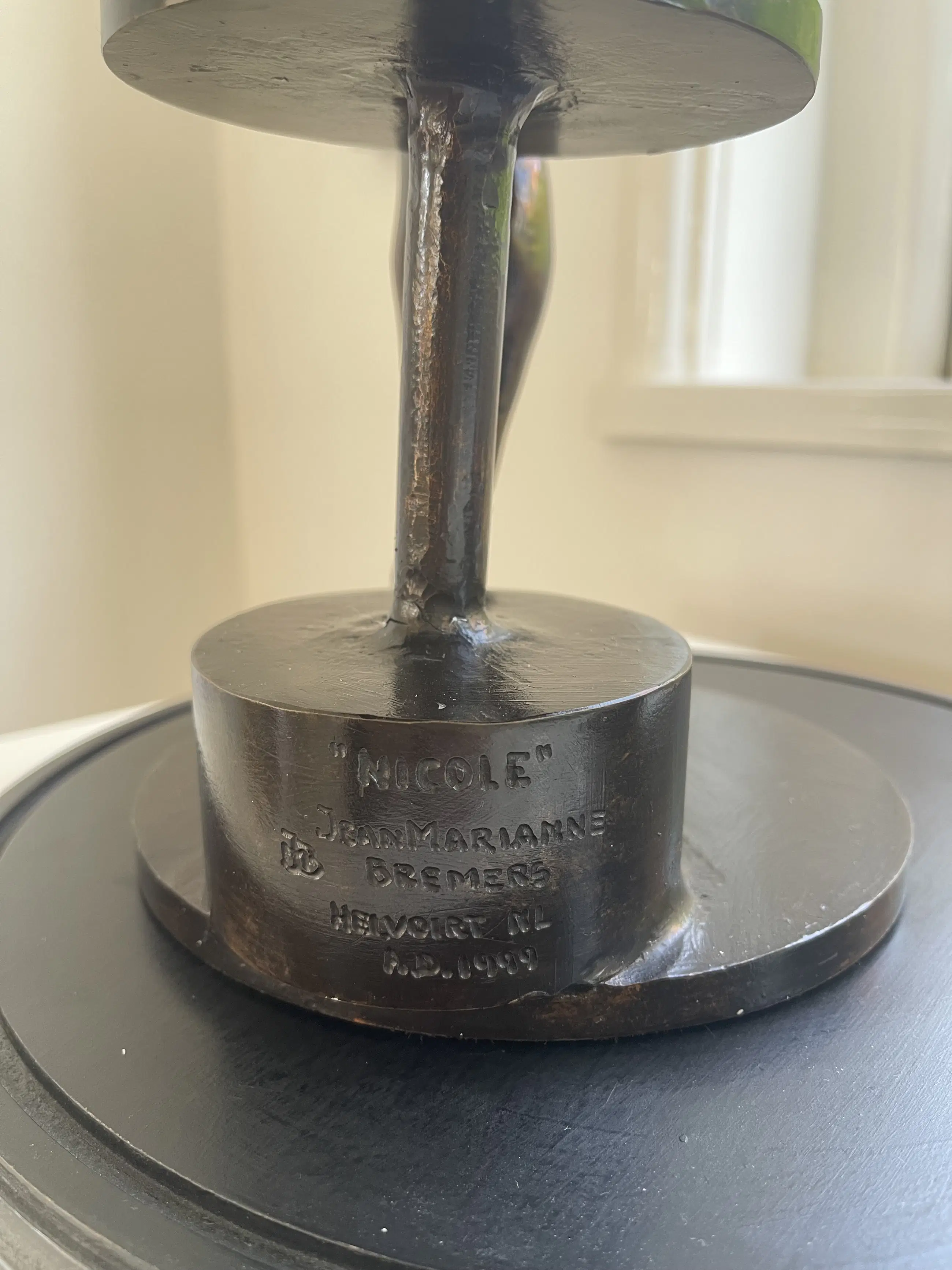 Een bronzen kunstwerk van het echtpaarsduo Bremers, dat elegantie uitstraalt en genaamd Nicole.