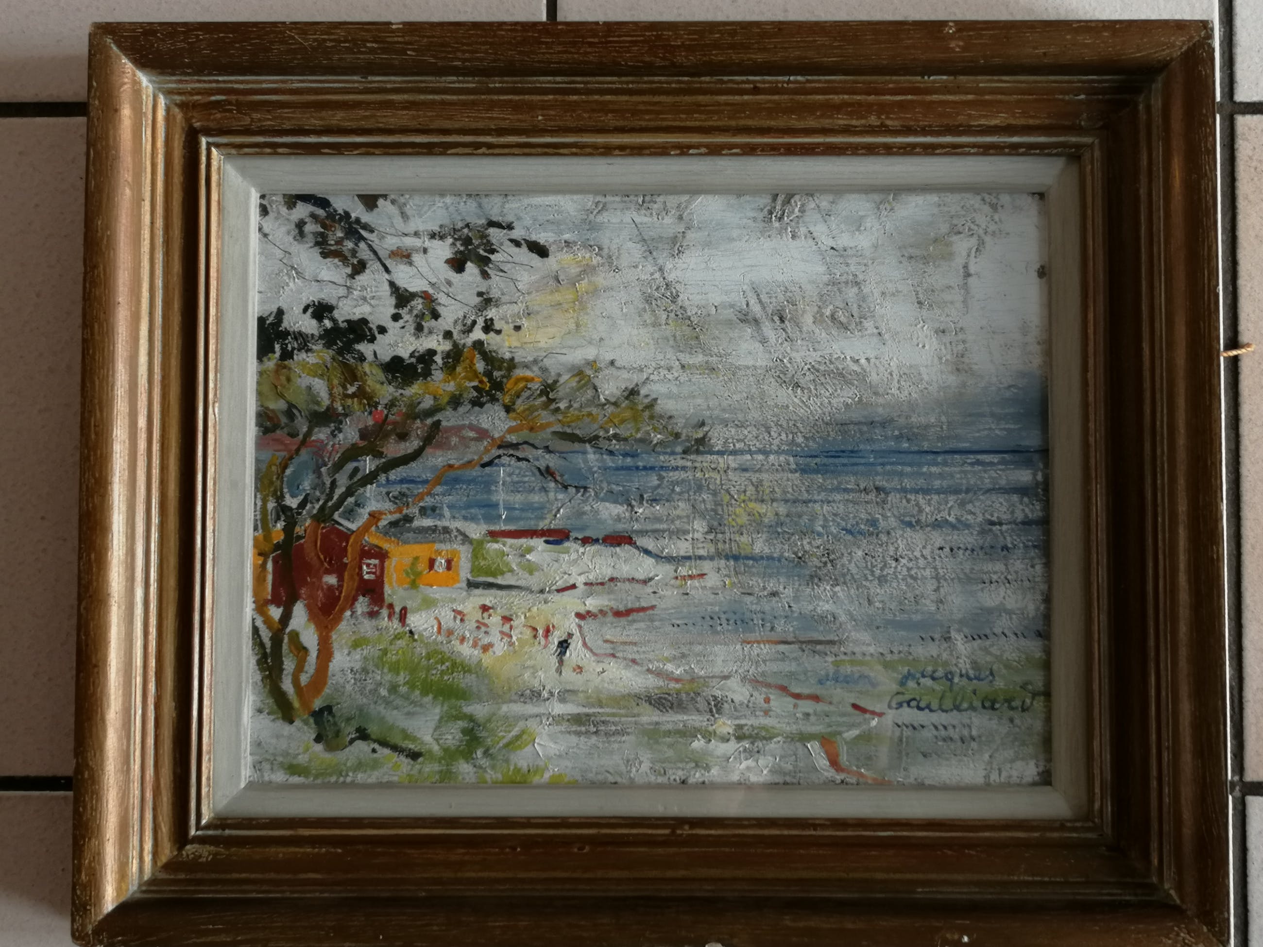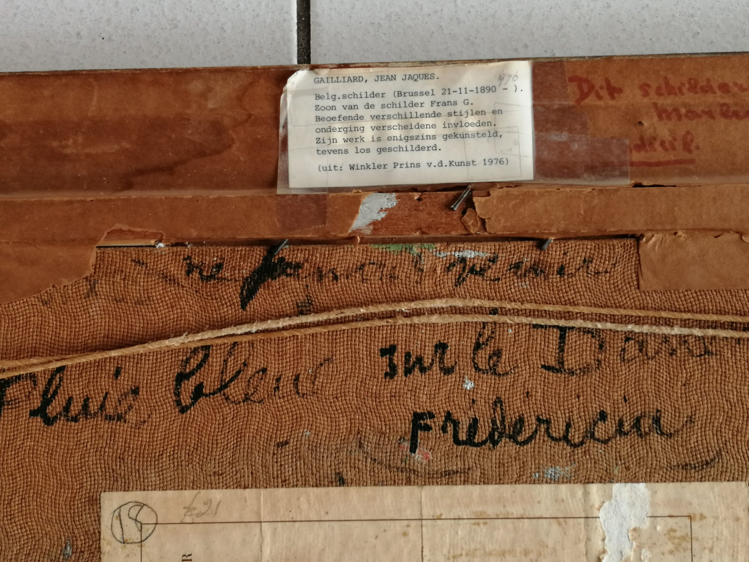 Olieverf op board met een voorstelling bij de plaats Frédéricia in Denemarken.Gesigneerd rechtsonder.Signatuur, titel en adres van de kunstenaar op de achterzijde.Jean Jacques Gailliard werd geboren te Brussel op 22 november 1890 en overleed in Sint Gillis op 17 april 1976. Hij genoot zijn opleiding op de Academie des Beaux Arts te Brussel.Hij verbleef te Parijs van 1920-1924, daarna te Brussel.
