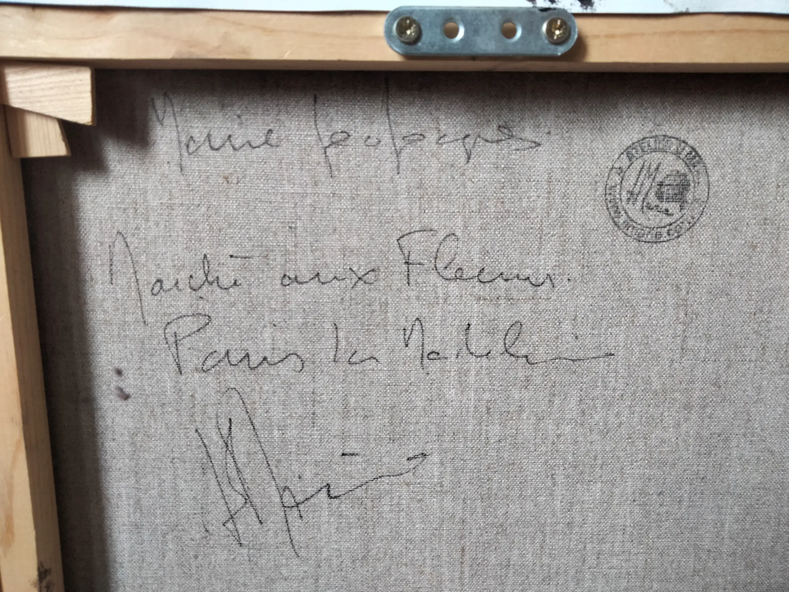 Het kleurenpalet combineert heldere tinten (geel, rood, groen) met een meer minerale en stedelijke structuur, die doet denken aan de omringende architectuur van de Madeleinekerk. Het contrast tussen de verticaliteit van de gebouwen en de drukte van de markt brengt balans en dynamiek in de compositie.
