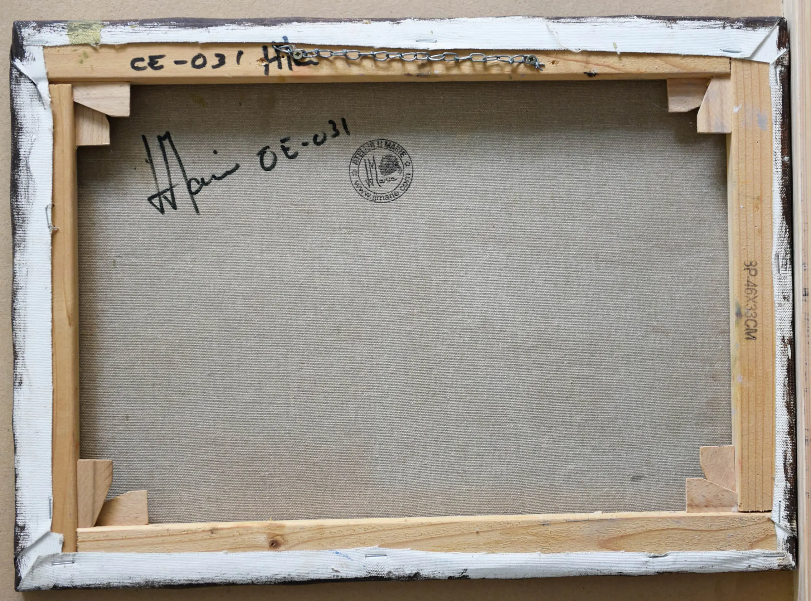 Het kunstwerk is rechtsonder en op de achterzijde gesigneerd met het referentienummer.