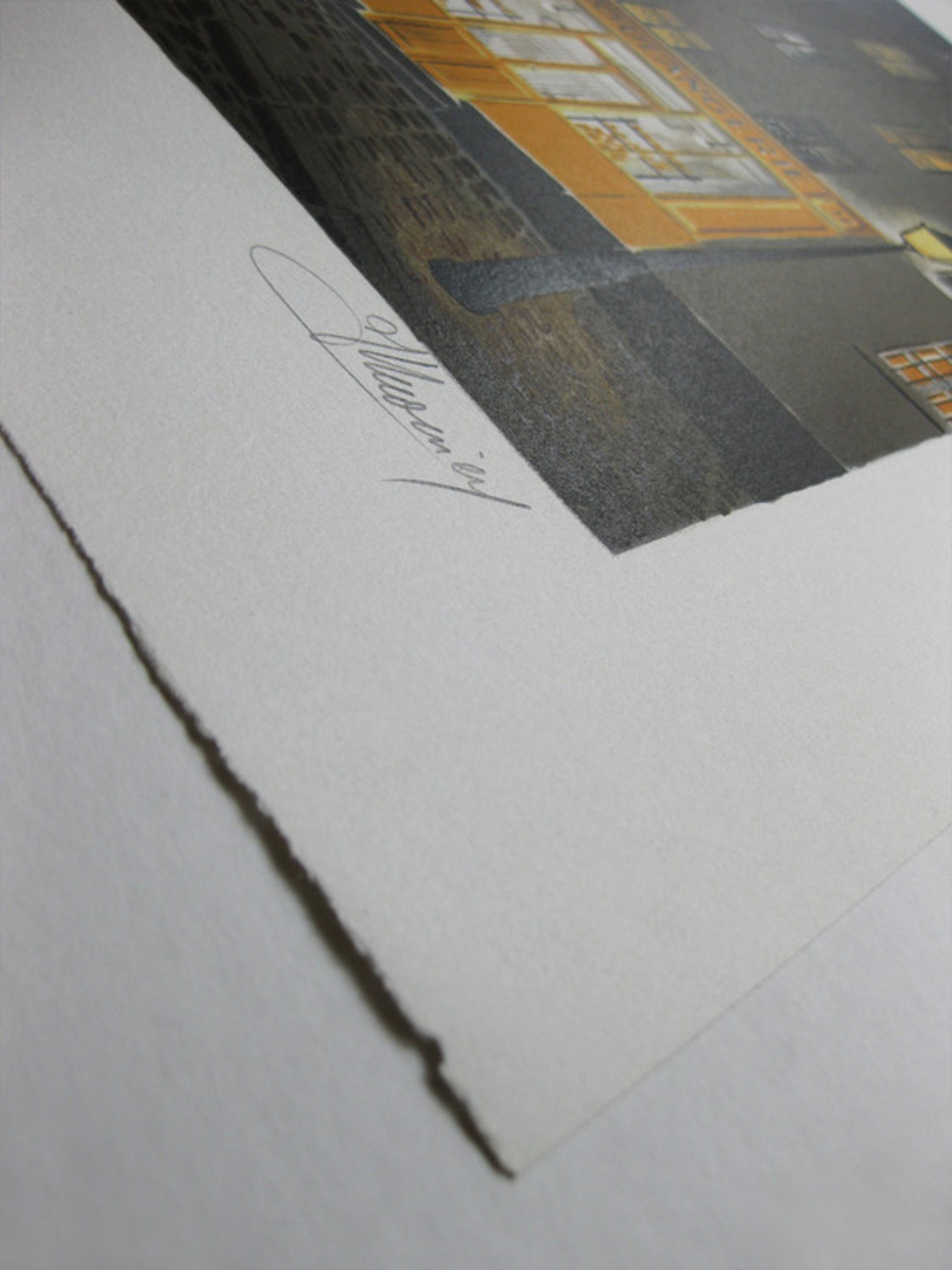 Gesigneerde en genummerde kleuren litho op geschept Arches papier