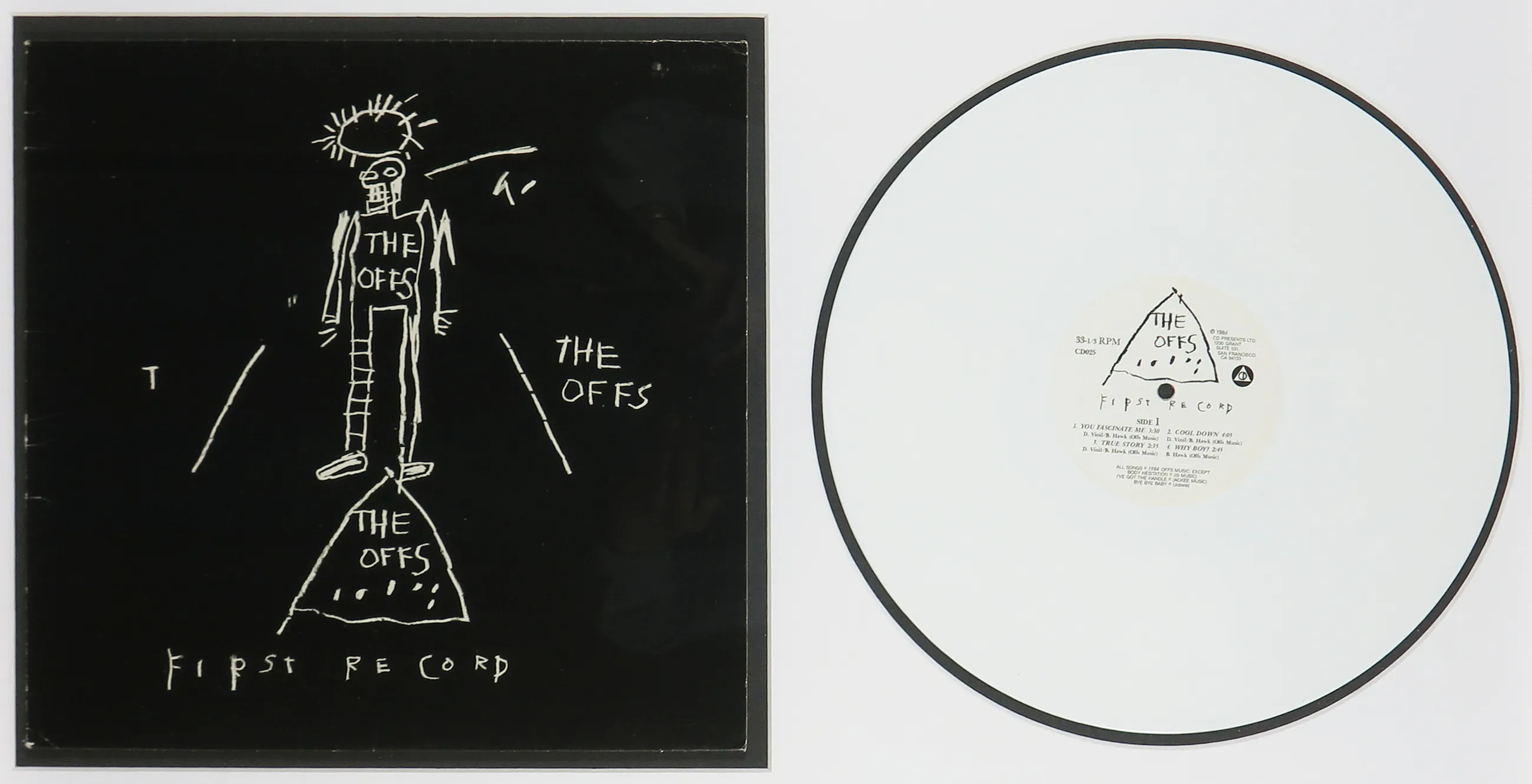 LP-hoes ontworpen door Basquiat voor het album 'First Record' van The Offs. Met originele white vinyl.