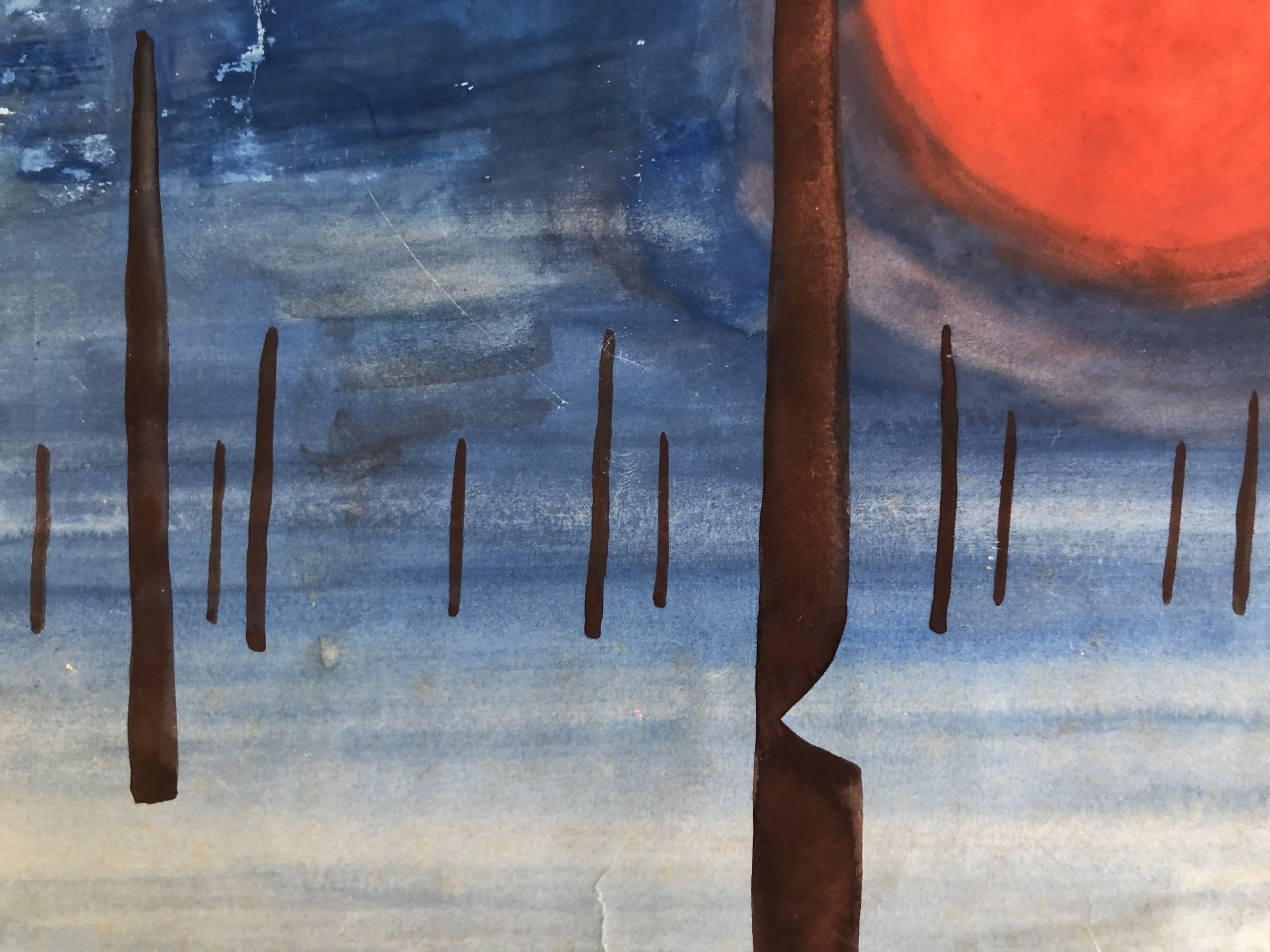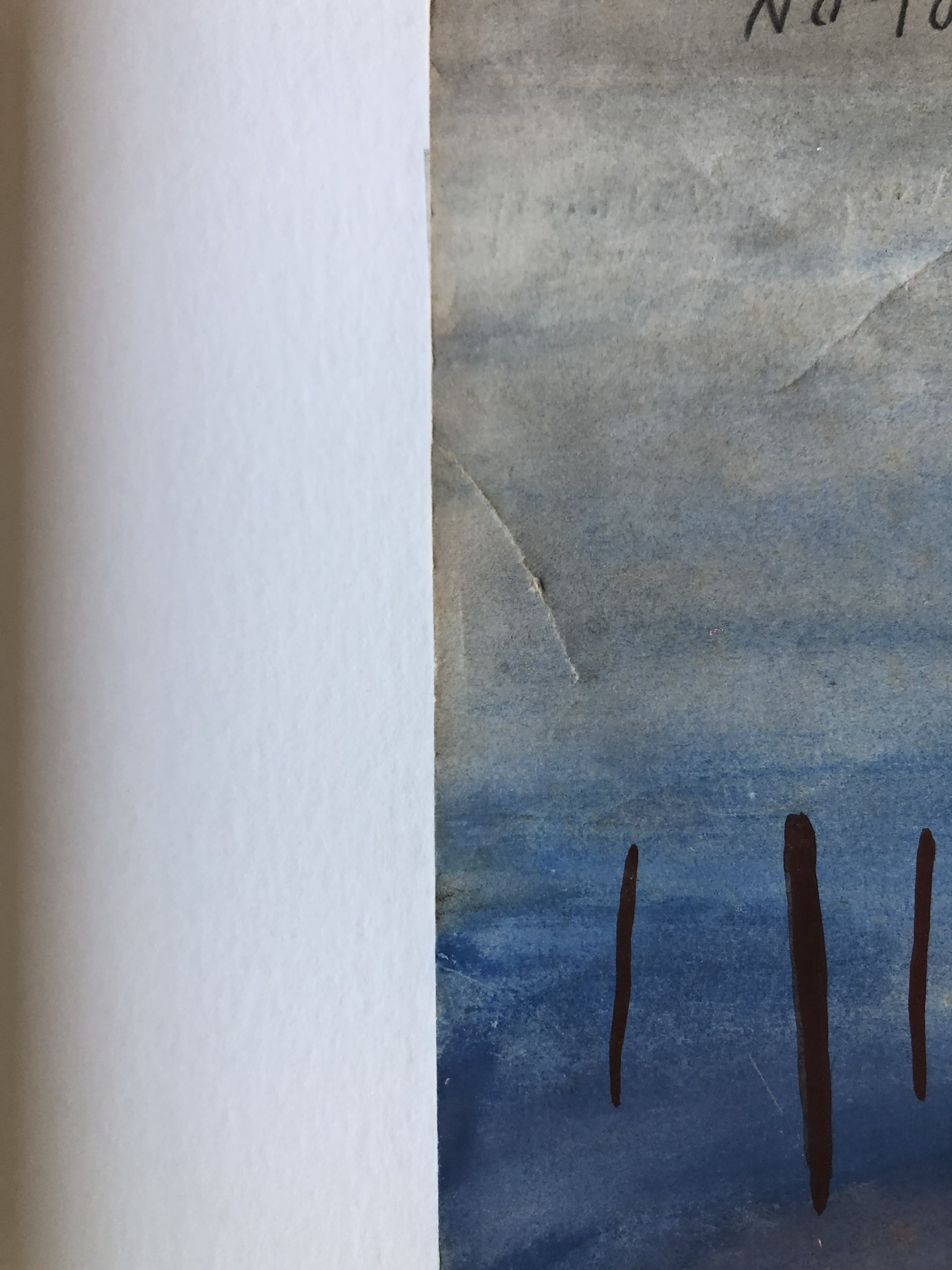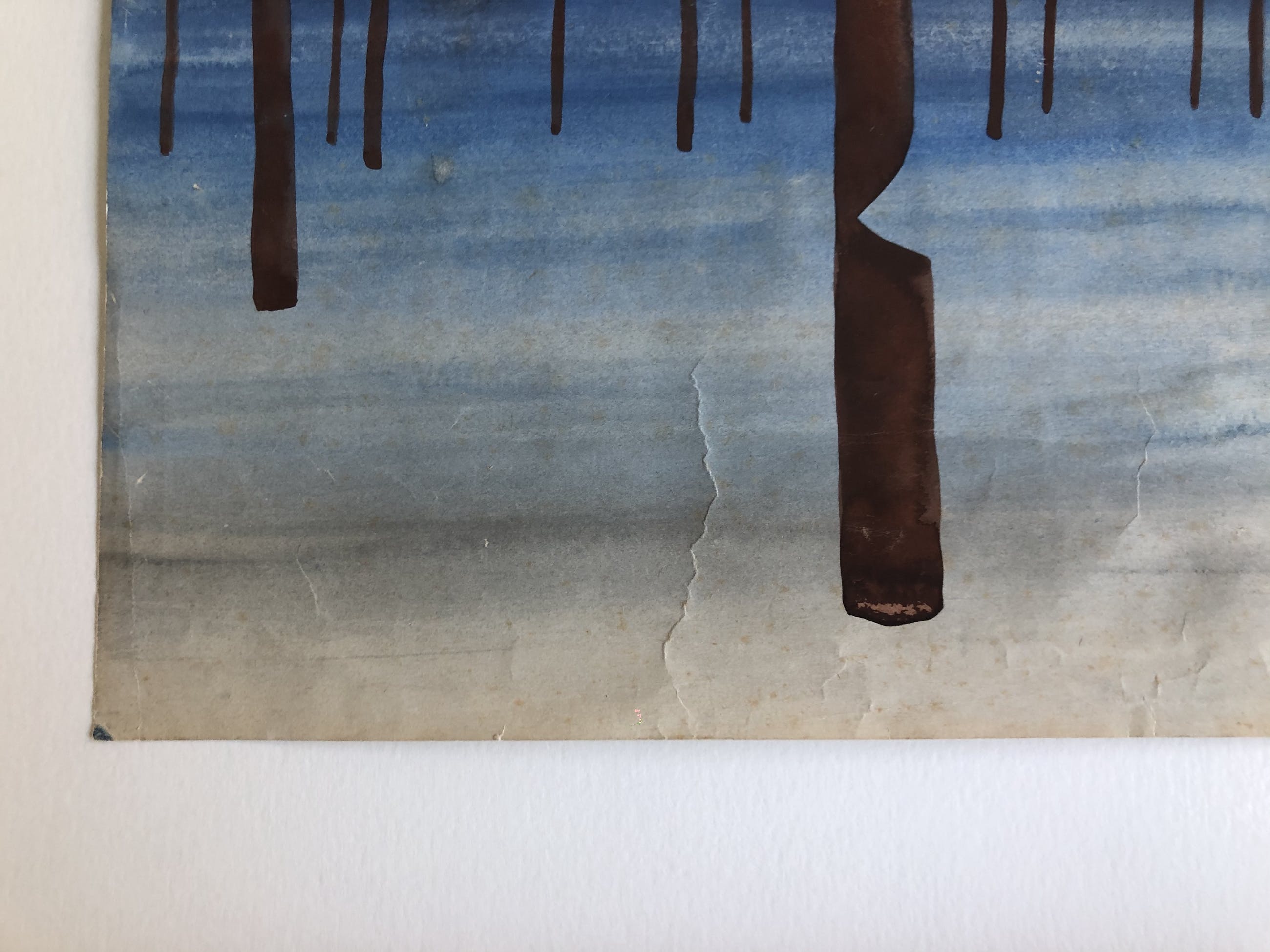 Werk heeft jarenlang bij de vorige eigenaar in een kapotte kader op zolder gestaan. Verschillende kreuken. Alles werd echter zo goed mogelijk gerestaureerd en professioneel ingekaderd.
