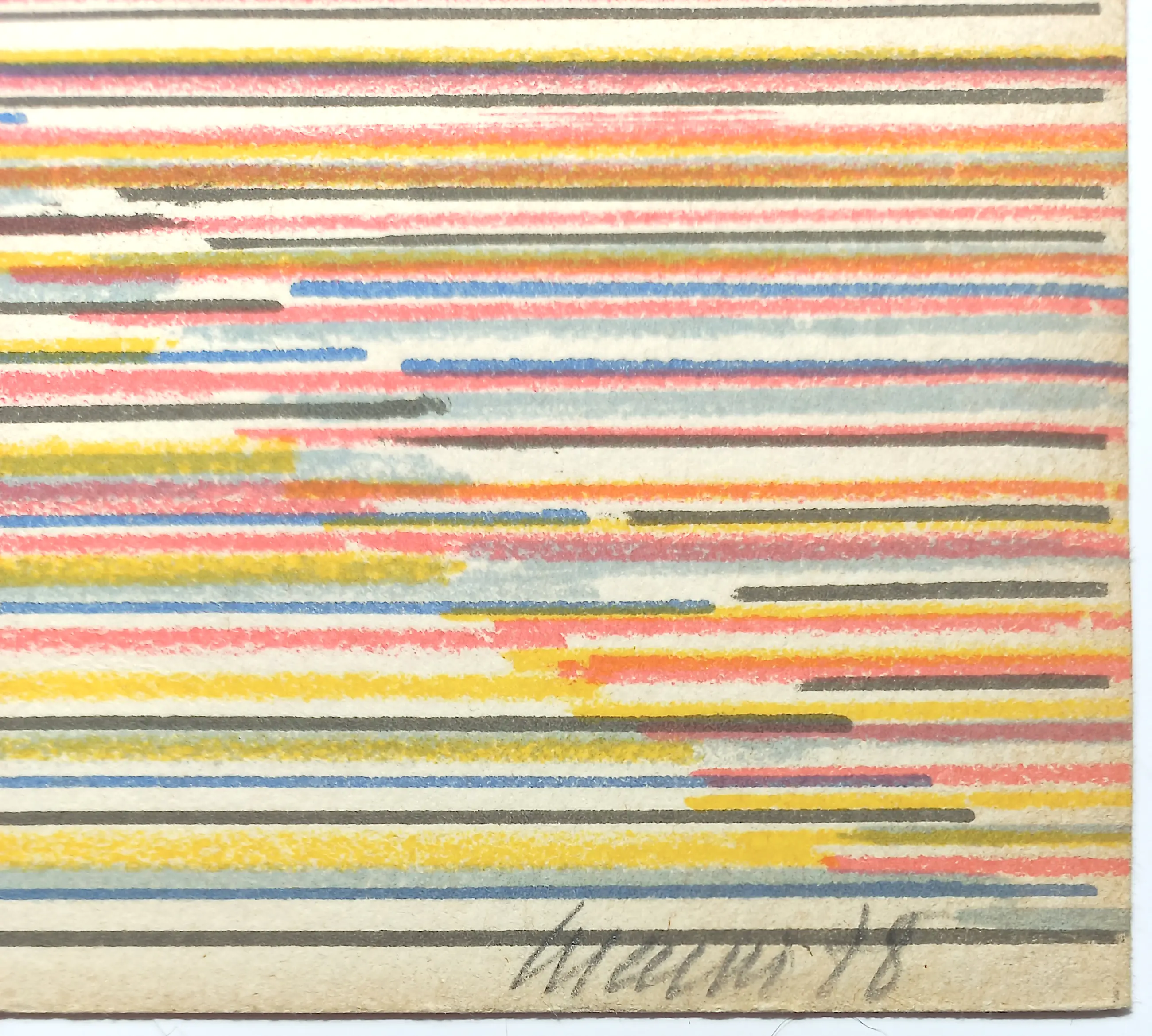 Linksonder in de hoek is het blad wat rafelig en/of missen er hele kleine stukjes (zie foto). Ingelijst met passe-partout valt dit onder het passe-partout en is het werk zeer goed toonbaar.
