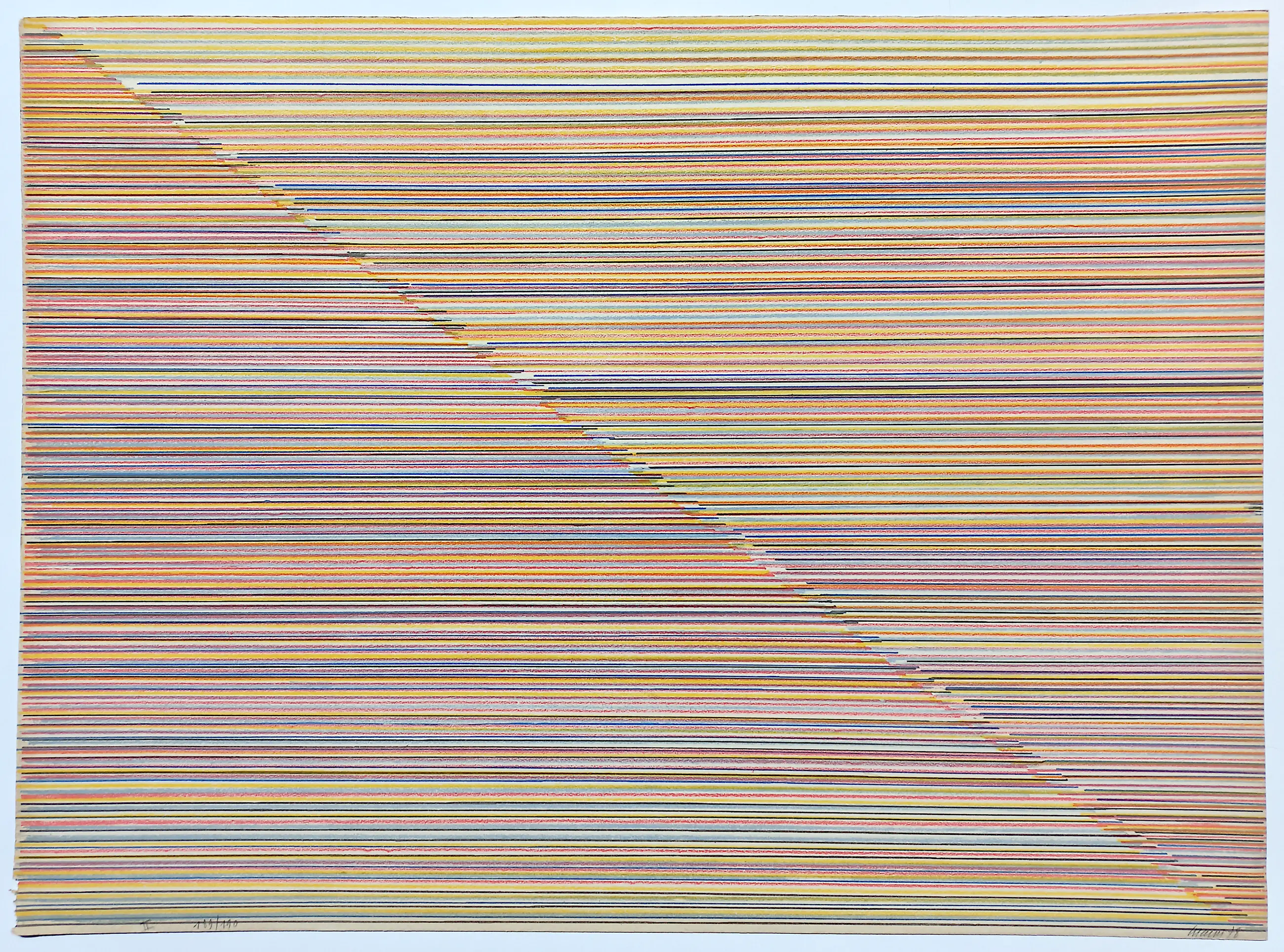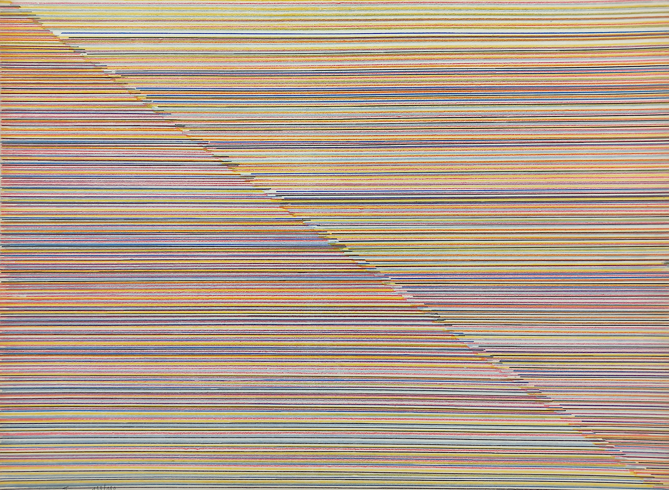 Bekende compositie van Jean Michel Meurice uit 1978, uitgegeven door Prent 190. Litho op Arches papier, met potlood gesigneerd, gedateerd, getiteld (“II”) en genummerd (189/190). In goede conditie.