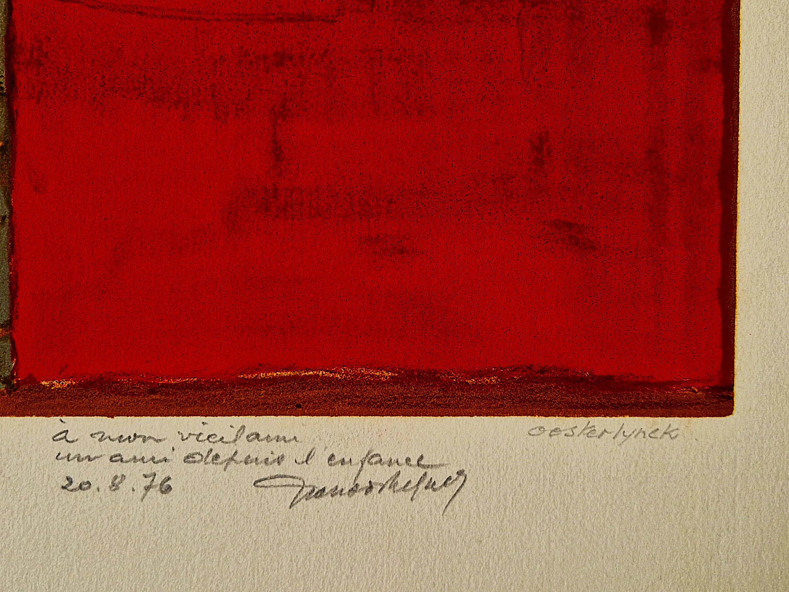 Door de kunstenaar in potlood gesigneerd en van een persoonlijke opdracht voorzien (pour un vieil ami ...).