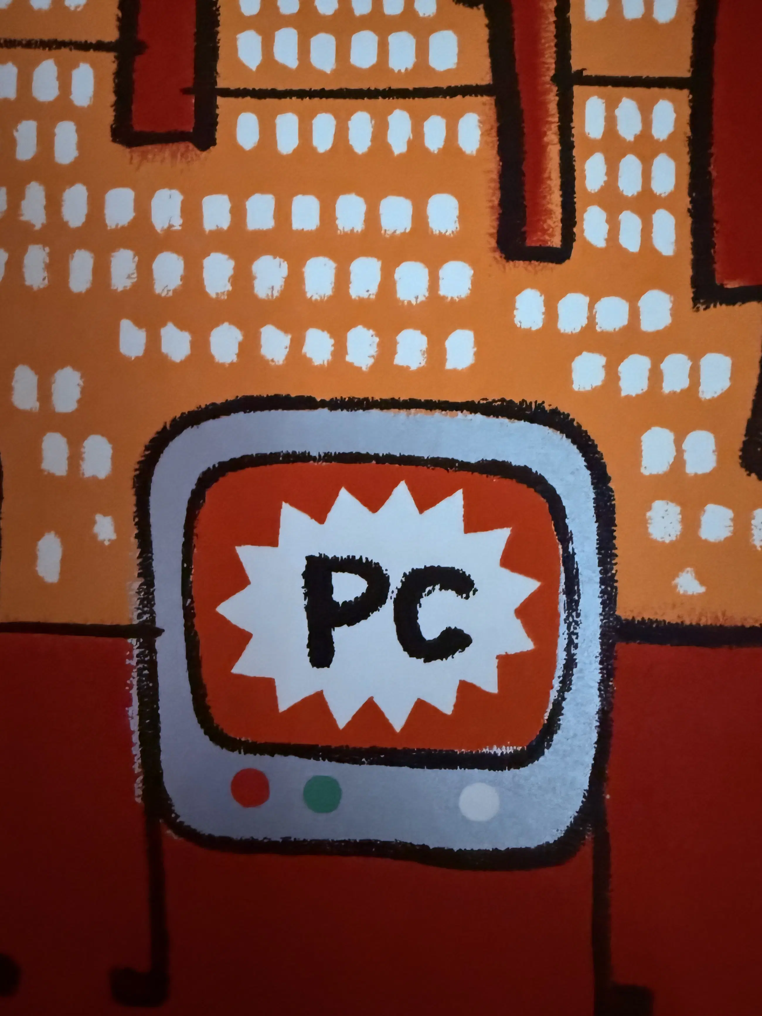 Jean Paul Marsman: “TV & PC”. Handgesigneerde en genummerde zeefdruk. Oplage: 150 ex. (nummer op foto's kan afwijken). Deze kleuren zeefdruk is nooit ingelijst geweest en is bewaard in een donker archiefopslag tussen beschermend zuurvrij papier. De getoonde foto's zijn onderdeel van de beschrijving. Dit kunstwerk wordt zorgvuldig stevig verpakt en in beschermend zuurvrij papier verzonden.