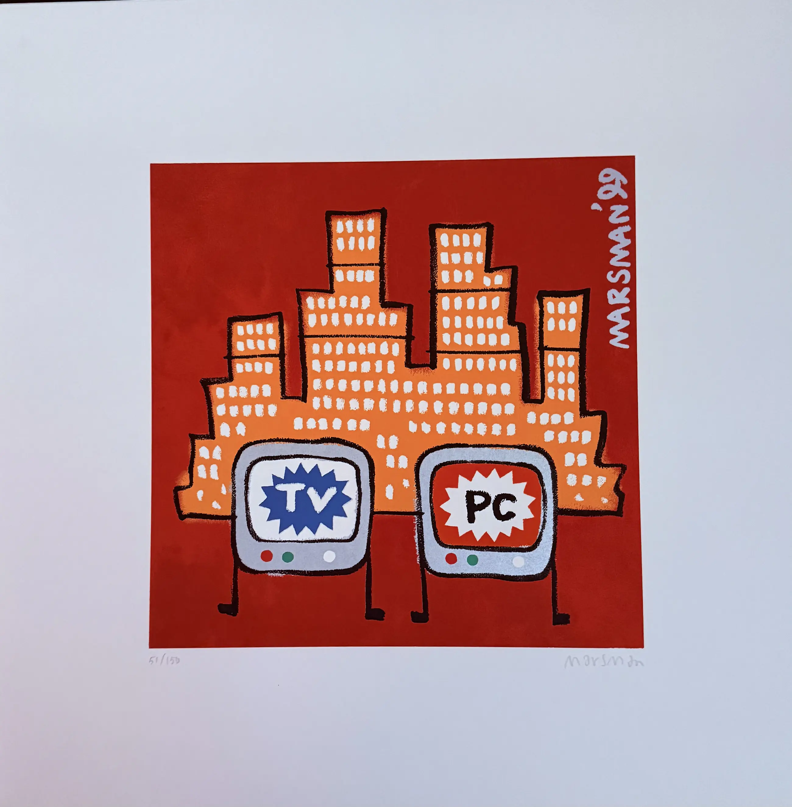 Jean Paul Marsman - “TV & PC”. Handgesigneerd en genummerde zeefdruk.