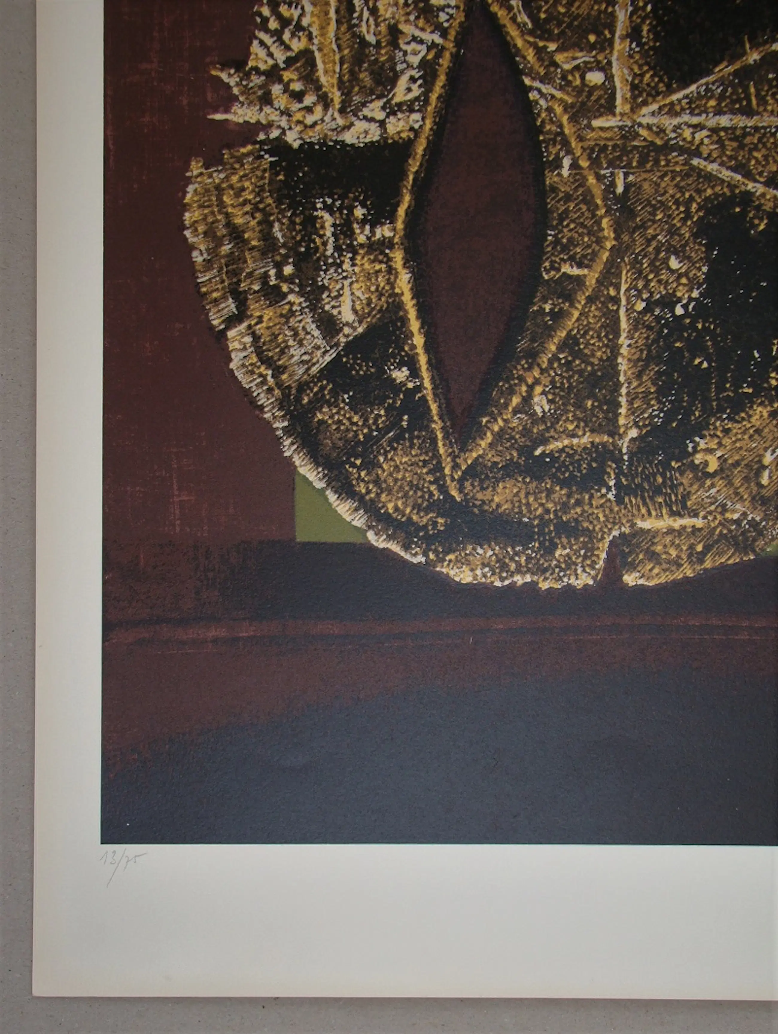 Originele kleuren zeefdruk op vélin d'Arches papier.