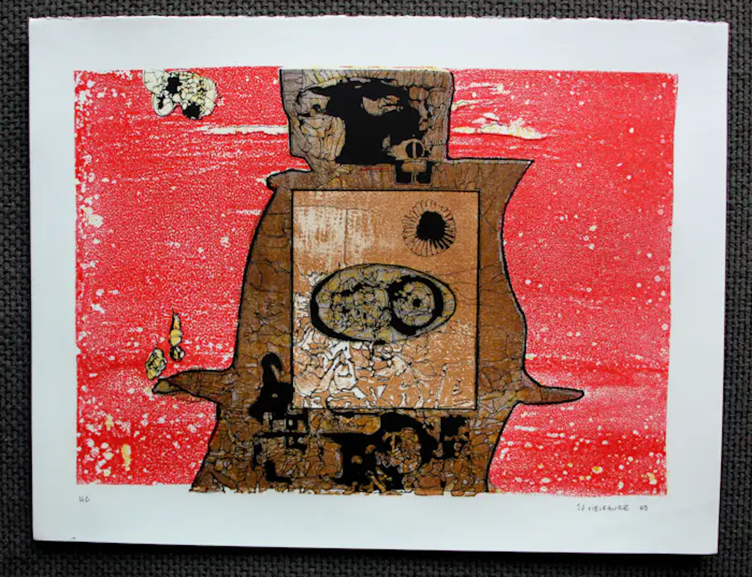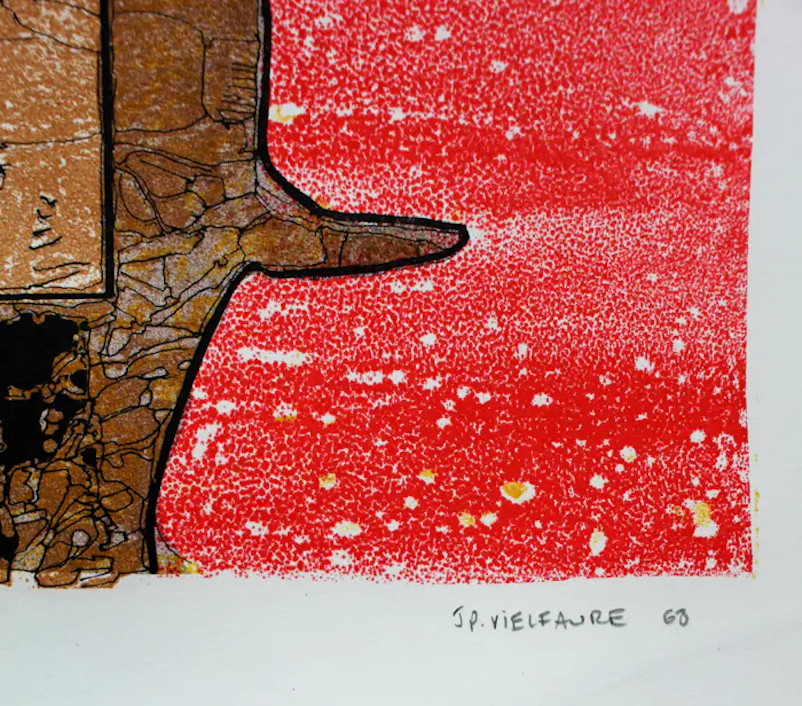 Litho van Pierre Vielfaure uit 1968. Uit de serie Opéra Civilisation. Oplage: H.C. Afmetingen blad: H29 x b38cm. Afmetingen voorstelling: H x bcm. Het werk is rechtsonder, met potlood, gesigneerd door de kunstenaar. De authenticiteit van het aangeboden werk wordt volledig gegarandeerd. Een certificaat van echtheid kan, op aanvraag, worden gemaild.