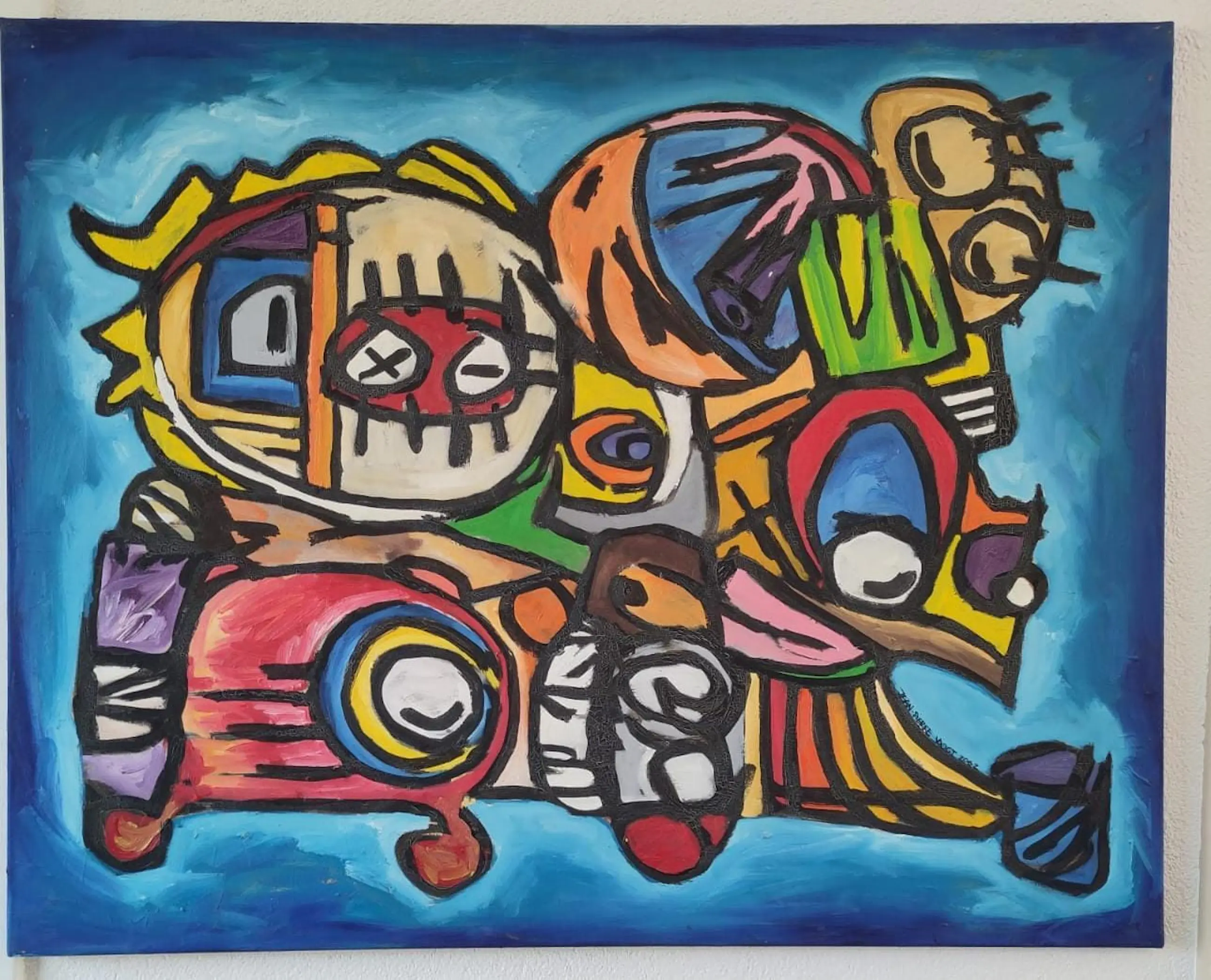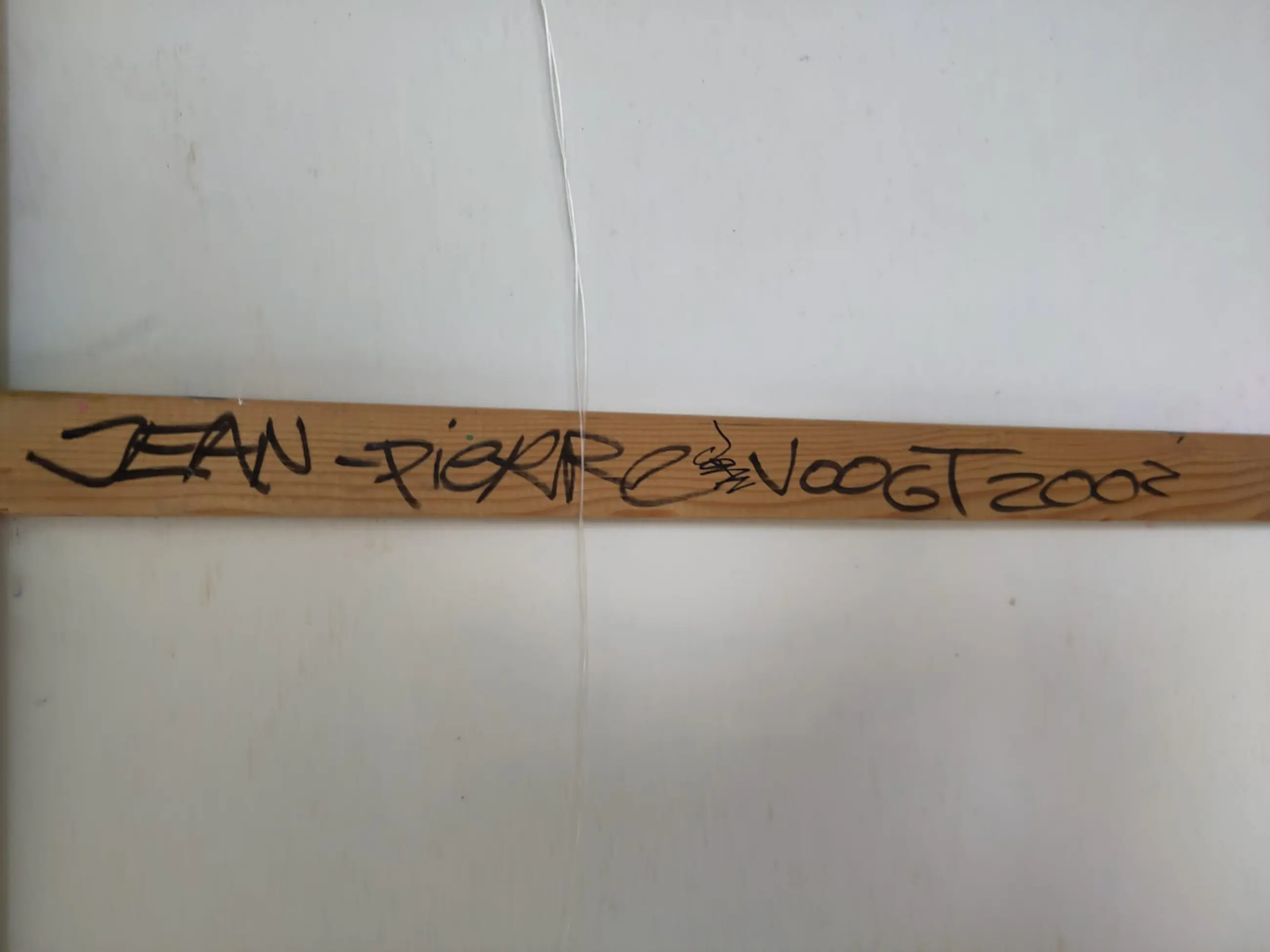 Het werk heeft sinds de aankoop aan de muur gehangen. Er is dus niets vreemds mee gebeurd en er zitten ook geen beschadigingen op.