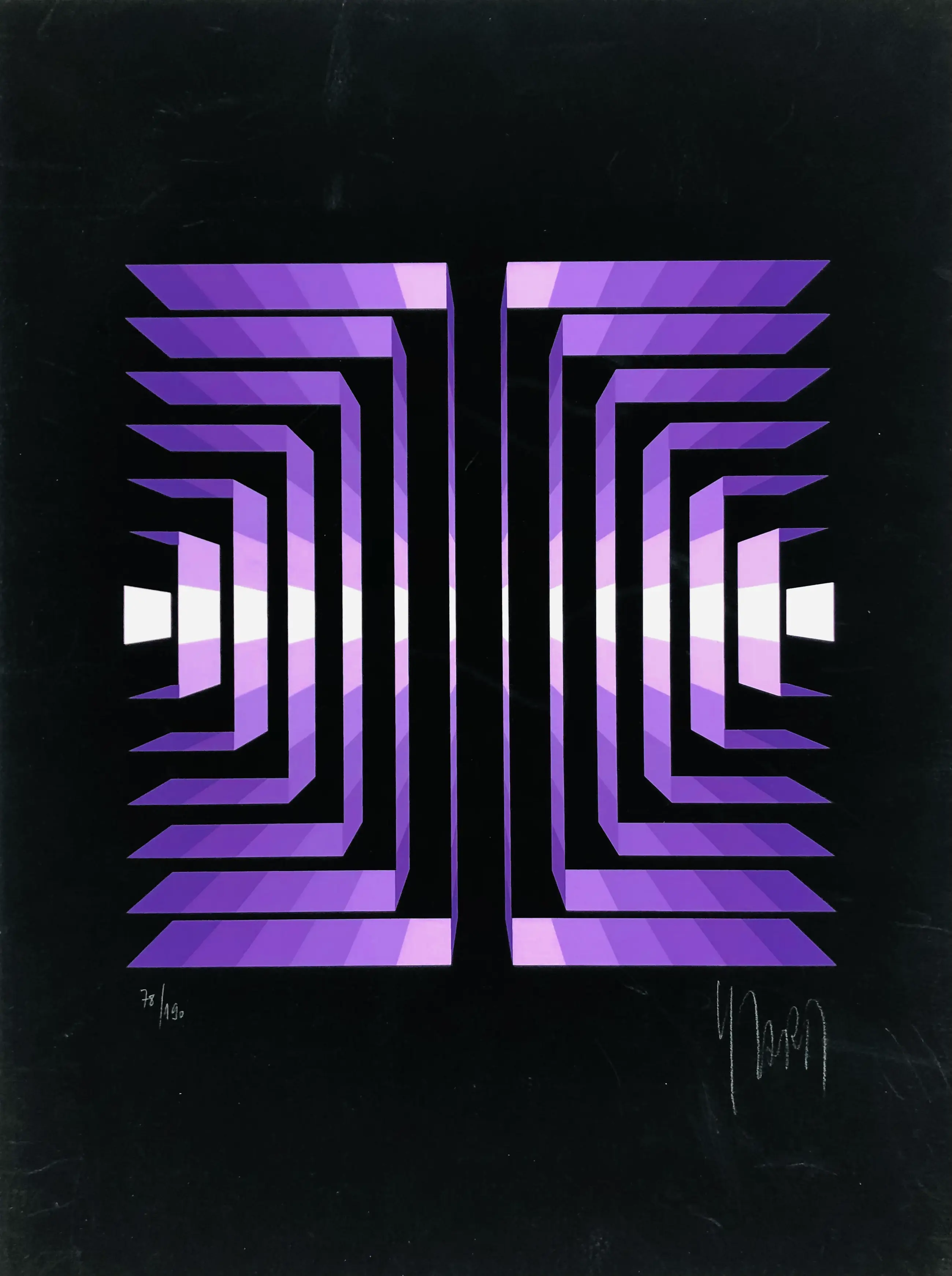 Fraai geometrisch werk van Jean Pierre Yvaral voor prent 190. Gesigneerd met potlood.