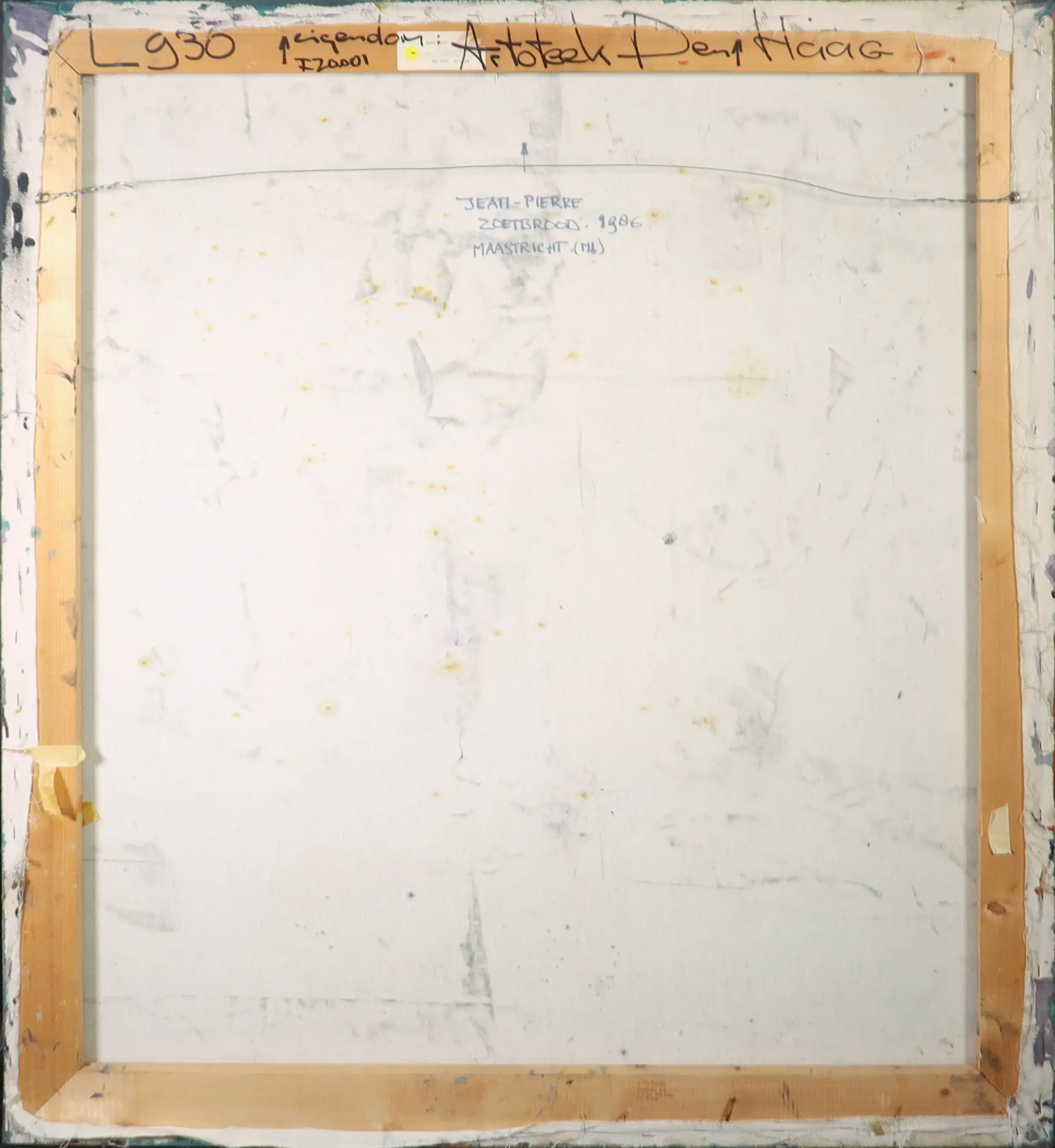 | Tegen het werk heeft waarschijnlijk een ander, kleiner doek gestaan dat voor strepen en deuken in dit doek heeft gezorgd. Dit zit in het midden van de voorstelling. Daarnaast verfschade en vuil aanwezig. | |