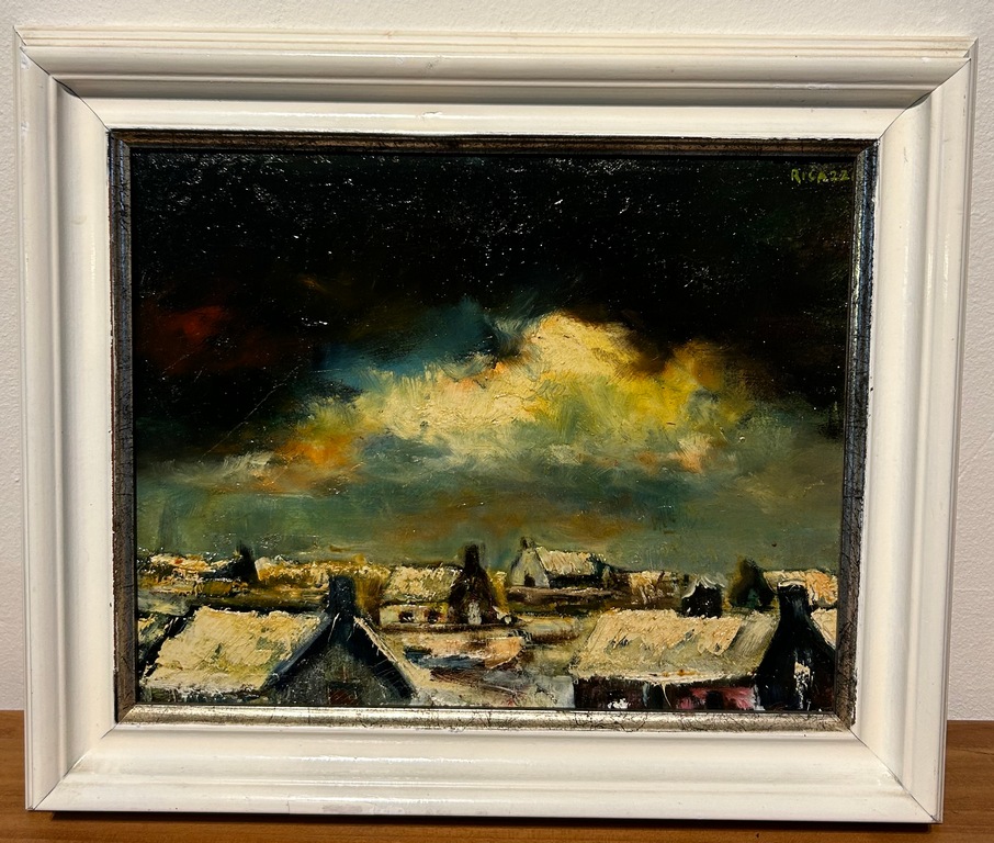 Jean Rigazzi was een Frans-Belgische kunstenaar geboren te Besançon (Frankrijk) in 1922 en gestorven te Antwerpen in 1993. Hij was een schilder, beeldhouwer, keramist, ontwerper van assemblages, glasramen en wandtapijten. Hij studeerde een tijd rechtswetenschappen aan de Universiteit te Lyon. Hij was autodidact wat beeldende kunsten betreft. Hij belandde na de Tweede Wereldoorlog te Antwerpen. Zijn werk is zowel expressionistisch als symbolistisch en lyrisch abstract. Kleur en materie spelen een voorname rol in de opbouw van zijn werken. Hij vond zijn inspiratie onder meer in het landschap, de Schelde, de zee en de vrouw. Zijn werken lijken soms doordrongen van een fel en mystiek licht. Uit de pers: “Wie met het werk van deze kleurdronken schilder in aanraking komt wordt alvast verrast door de echt ‘Vlaamse’ manier waarop Rigazzi de sfeer van zijn geliefd Scheldelandschap verklankt. In grootse kleurenevocaties, die naar het abstracte overhellen om de manier waarop zij gesynthetiseerd worden, zingt de kunstenaar de lof van het onvolprezen landschap aan de boorden van de stroom.”