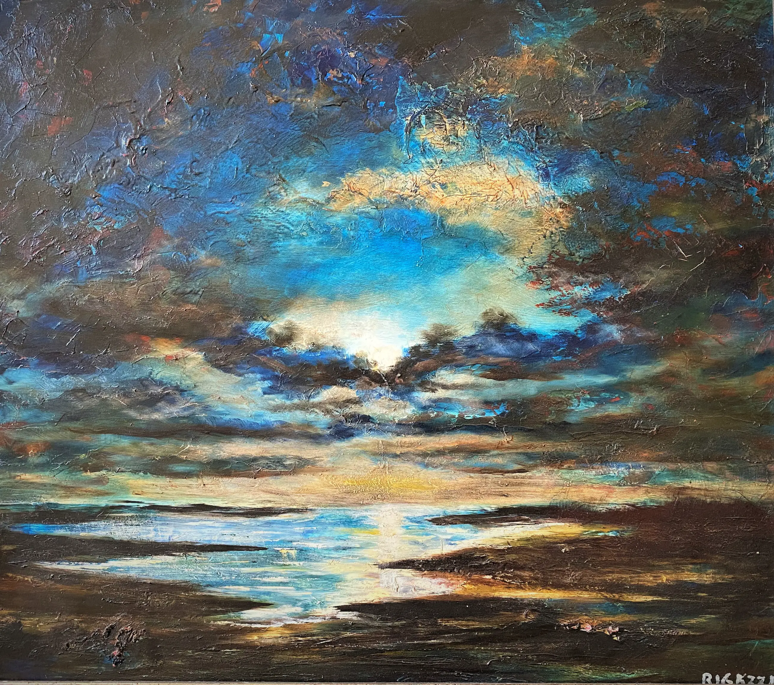 Jean Rigazzi was een Frans-Belgische kunstenaar geboren te Besançon (Frankrijk) in 1922 en gestorven te Antwerpen in 1993. Hij was een schilder, beeldhouwer, keramist, ontwerper van assemblages, glasramen en wandtapijten. Hij studeerde een tijd rechtswetenschappen aan de Universiteit te Lyon. Hij was autodidact wat beeldende kunsten betreft. Hij belandde na de Tweede Wereldoorlog te Antwerpen. Zijn werk is zowel expressionistisch als symbolistisch en lyrisch abstract. Kleur en materie spelen een voorname rol in de opbouw van zijn werken. Hij vond zijn inspiratie onder meer in het landschap, de Schelde, de zee en de vrouw. Zijn werken lijken soms doordrongen van een fel en mystiek licht. Uit de pers: “Wie met het werk van deze kleurdronken schilder in aanraking komt wordt alvast verrast door de echt ‘Vlaamse’ manier waarop J.R. de sfeer van zijn geliefd Scheldelandschap verklankt. In grootse kleurenevocaties, die naar het abstracte overhellen om de manier waarop zij gesynthetiseerd worden, zingt de kunstenaar de lof van het onvolprezen landschap aan de boorden van de stroom.” Hij stelde onder meer tentoon in Hof de Bist in 1975. Hij was toen werkzaam te Schoten. Jean Rigazzi staat vermeld in Twee eeuwen signaturen van Belgische kunstenaars vermend in Piron.en andere kunstboeken.