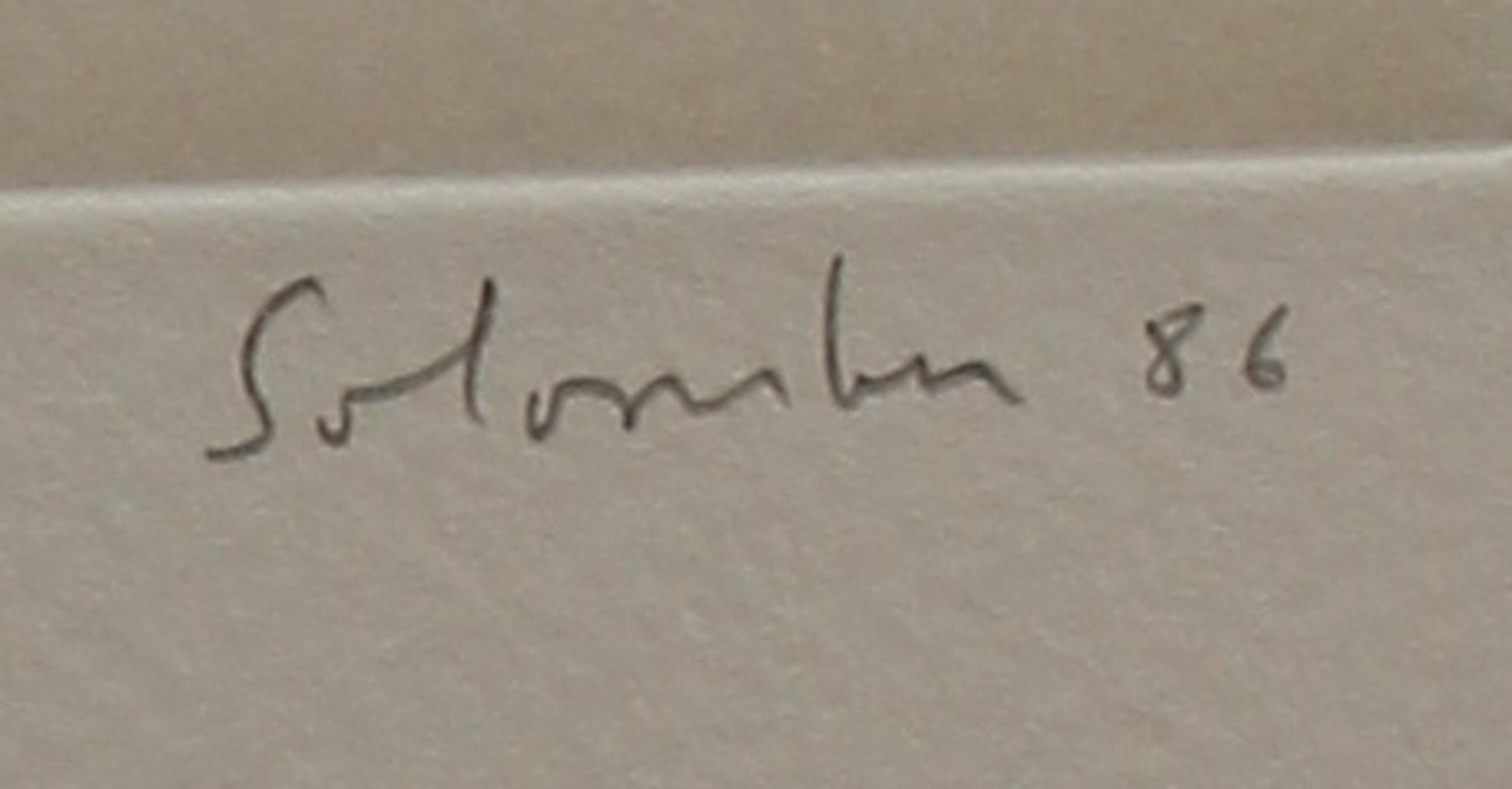 Ets/aquatint van Jean Solombre. Titel: Onleesbaar. Jaar: 1986. Nummer: 176/145. Afmetingen blad: H76 x 56cm. Afmetingen voorstelling: H43 x b43cm. Het werk is rechtsonder gesigneerd door de kunstenaar. De authenticiteit van het aangeboden werk wordt volledig gegarandeerd. Een certificaat van echtheid kan, op aanvraag worden gemaild.