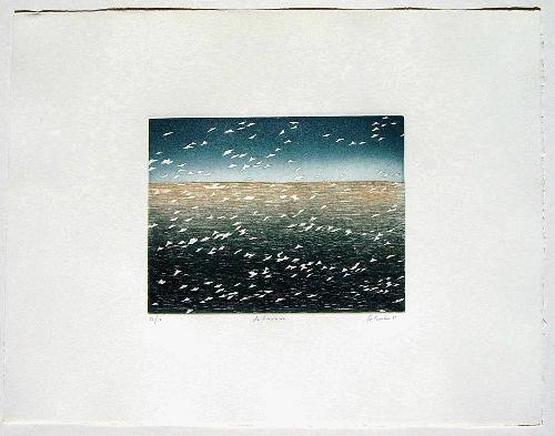Farbradierung auf Bütten, handsigniert und datiert "solombre 83" betitelt "Traversée", numeriert "57/110". Blattgröße: 49,5 x 38 cm. Darstellung: 23,5 x 17,5 cm. Sehr guter Zustand. Echtheit wird garantiert! Privatverkauf!