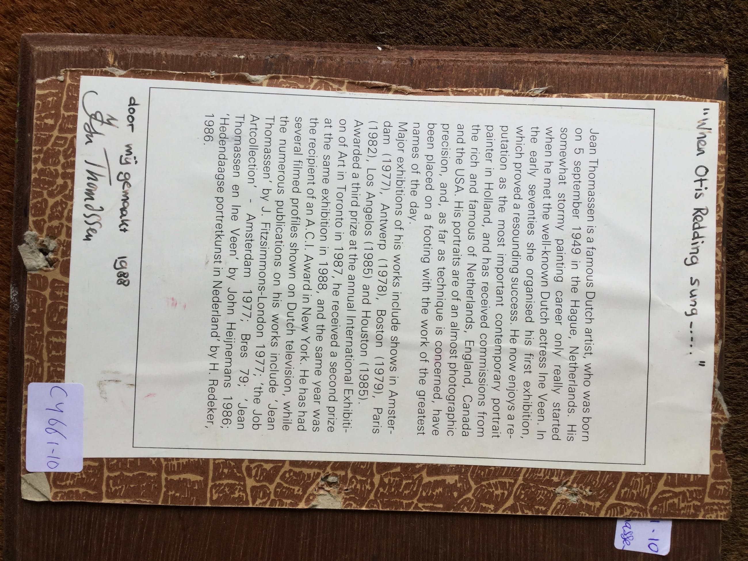 | Afhalen | Het werk is af te halen op locatie. Als koper dient u zelf verpakkingsmateriaal mee te nemen. De locatie is: Nieuwersluis, Nederland |