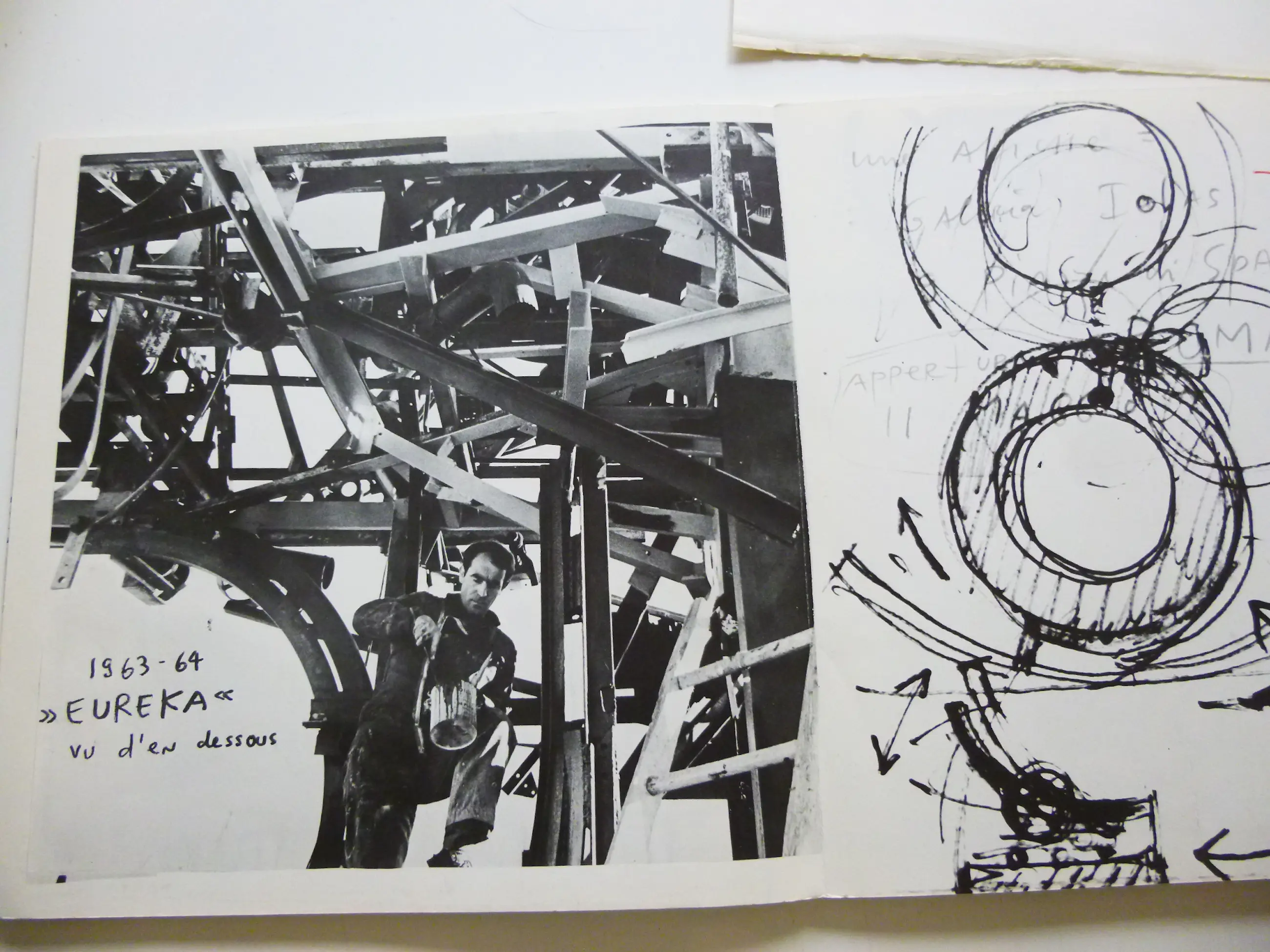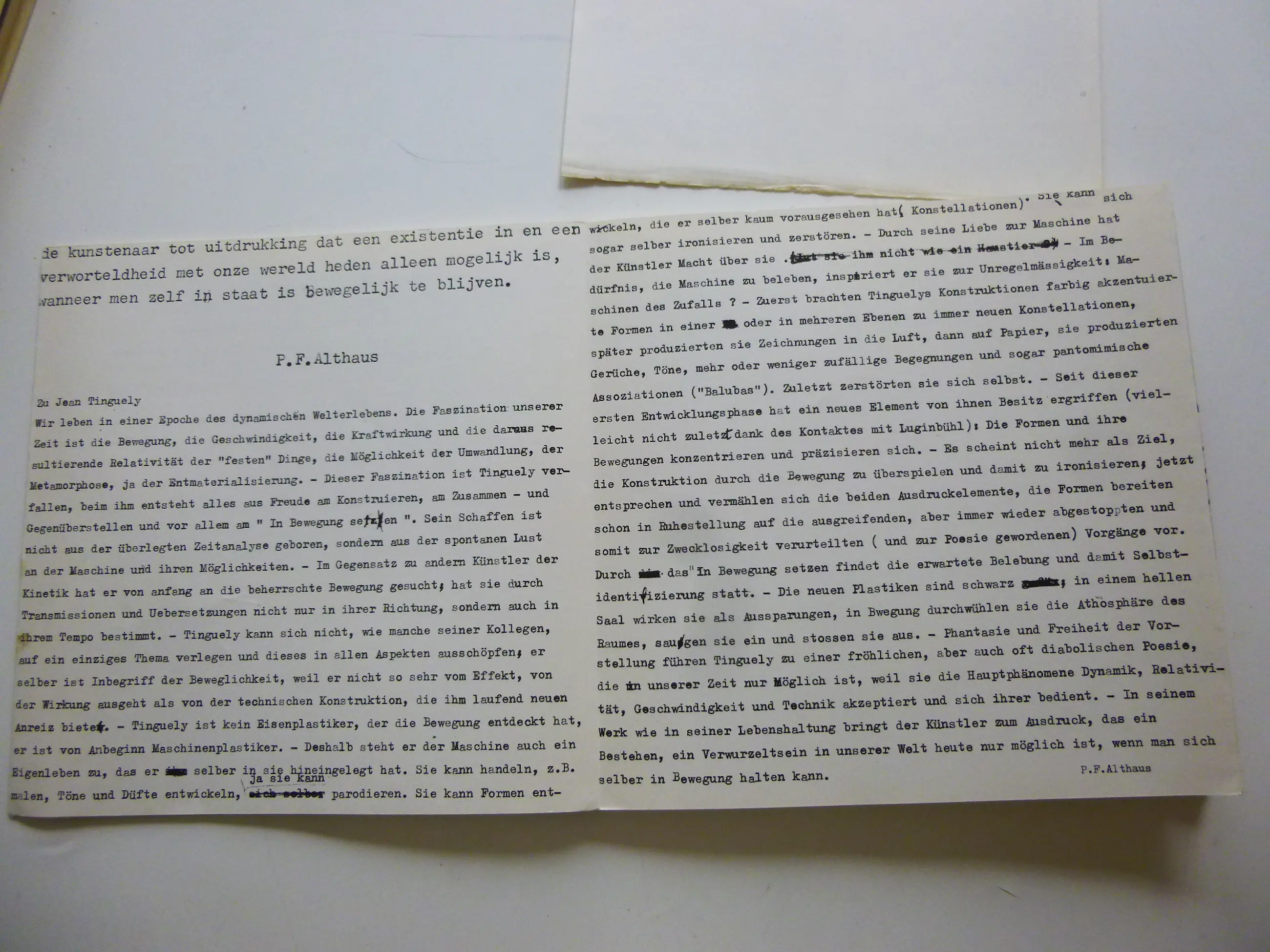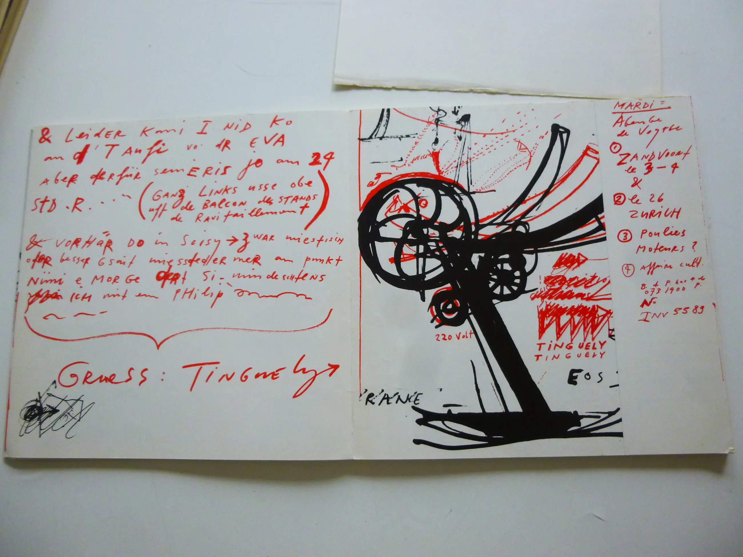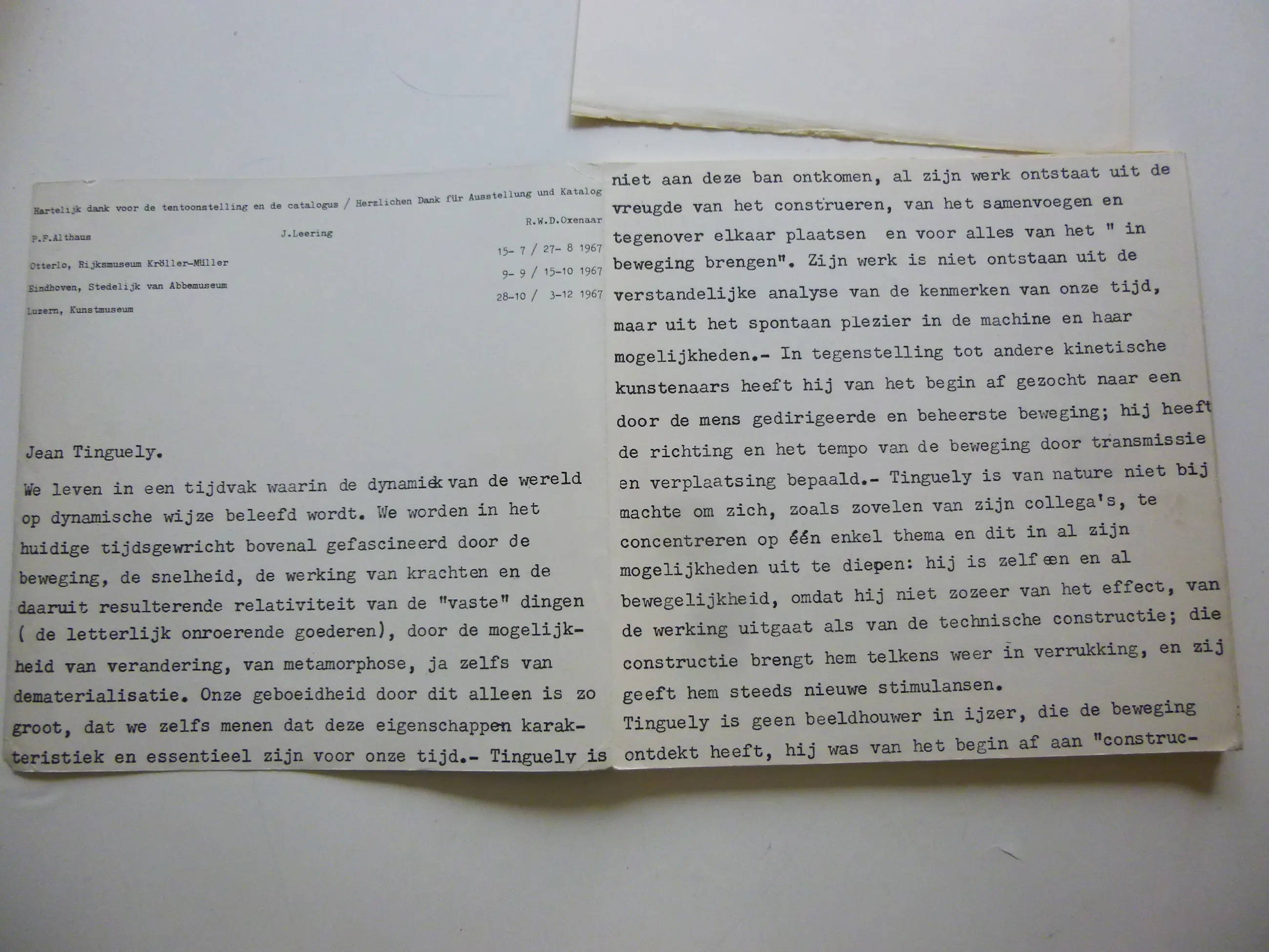 vouwblad catalogus voor 3 exposities in 3 musea. een zijde foto's van werk van Tinguely andere zijde Luginbühl's werk. het zijn 30 afbeeldingen per kunstenaar; iedere vouw is 21 cm x21cm; en dat dubbelzijdig