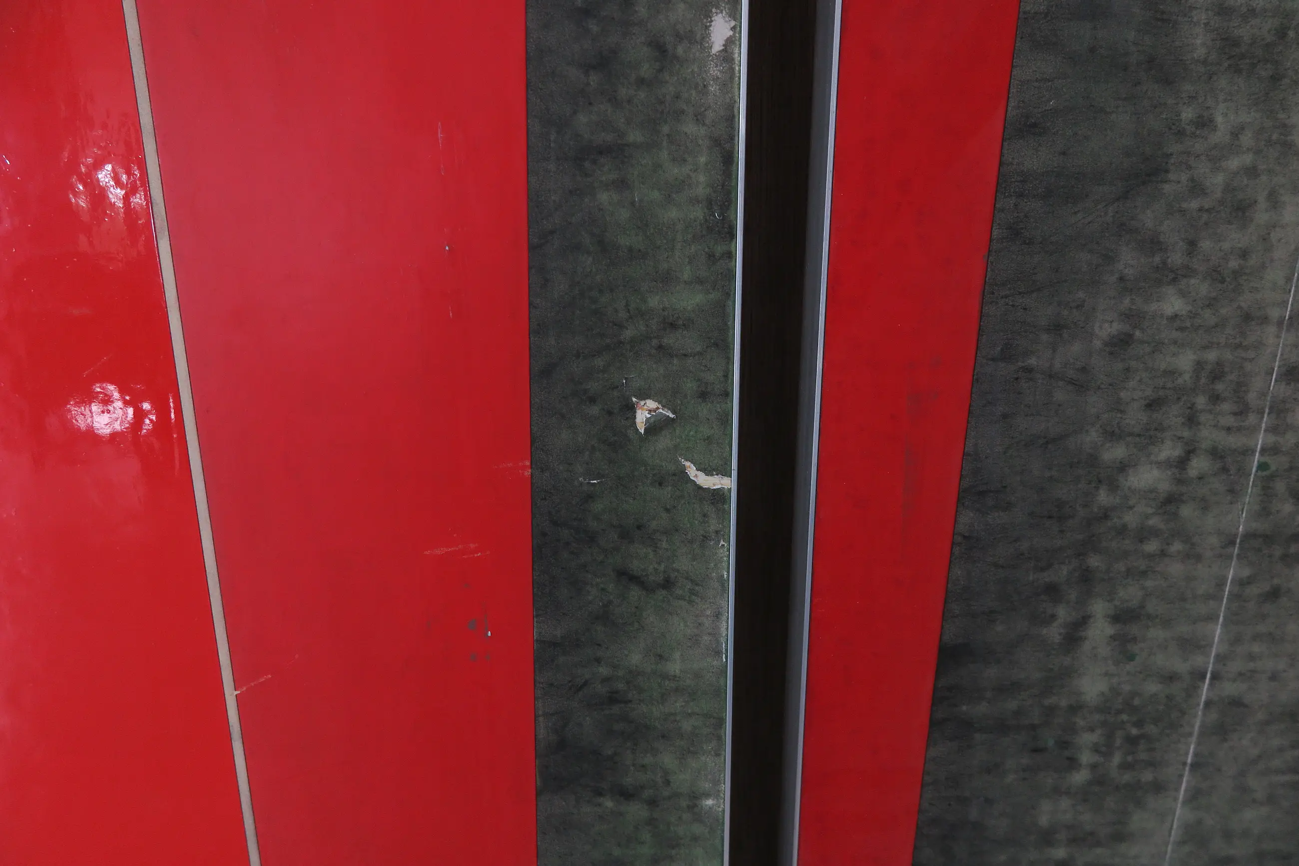 Een gekleurde en abstracte voorstelling van Jean van Wijk. Het werk is een drieluik: het bestaat uit drie losse platen die samen één geheel vormen.