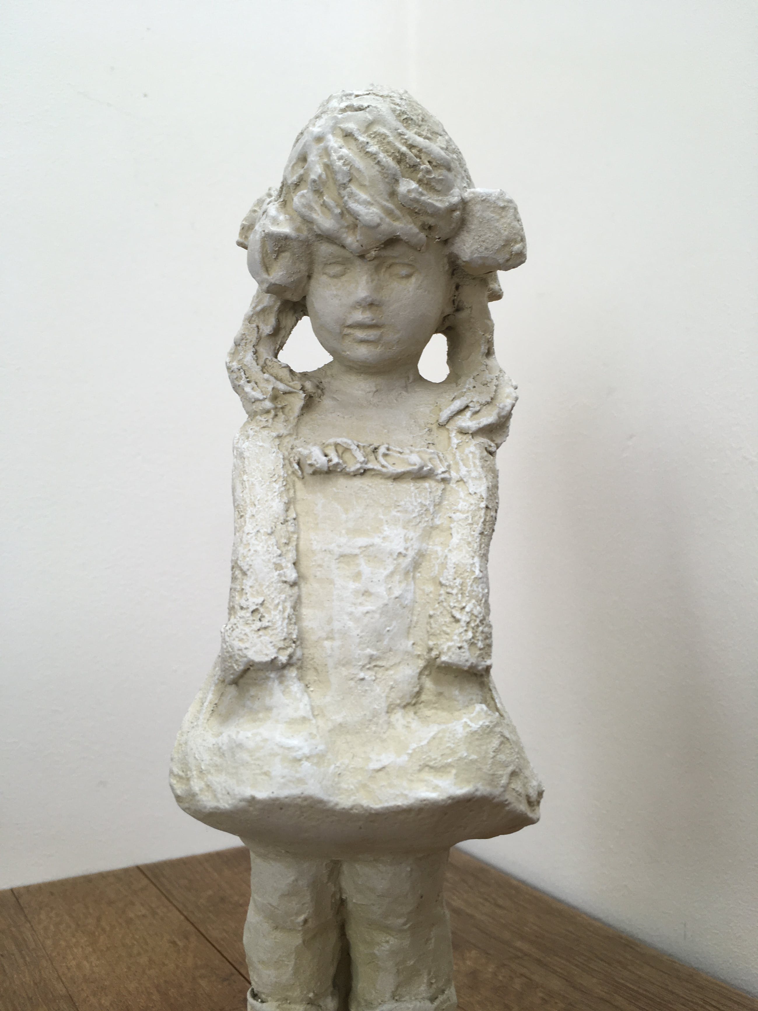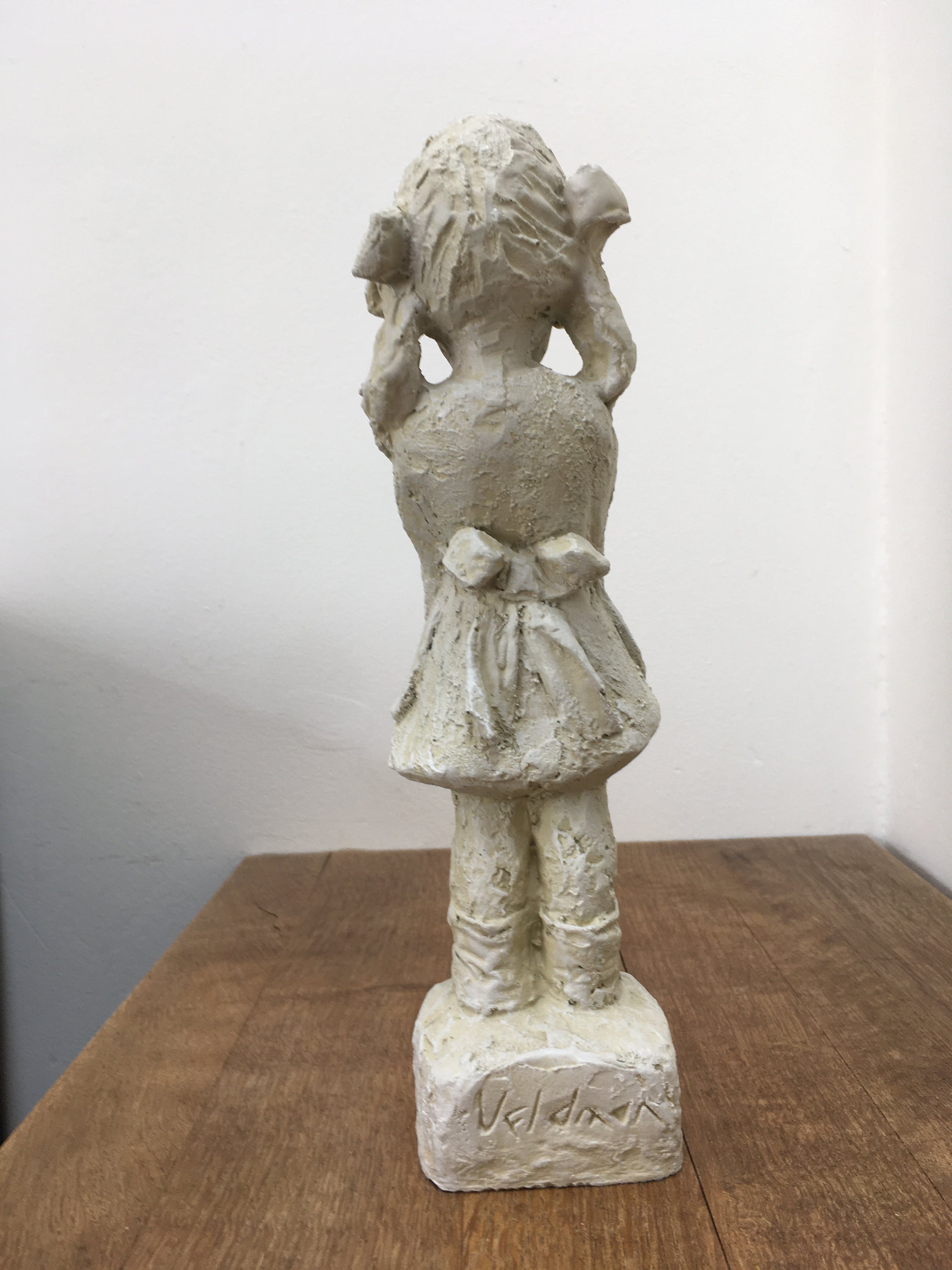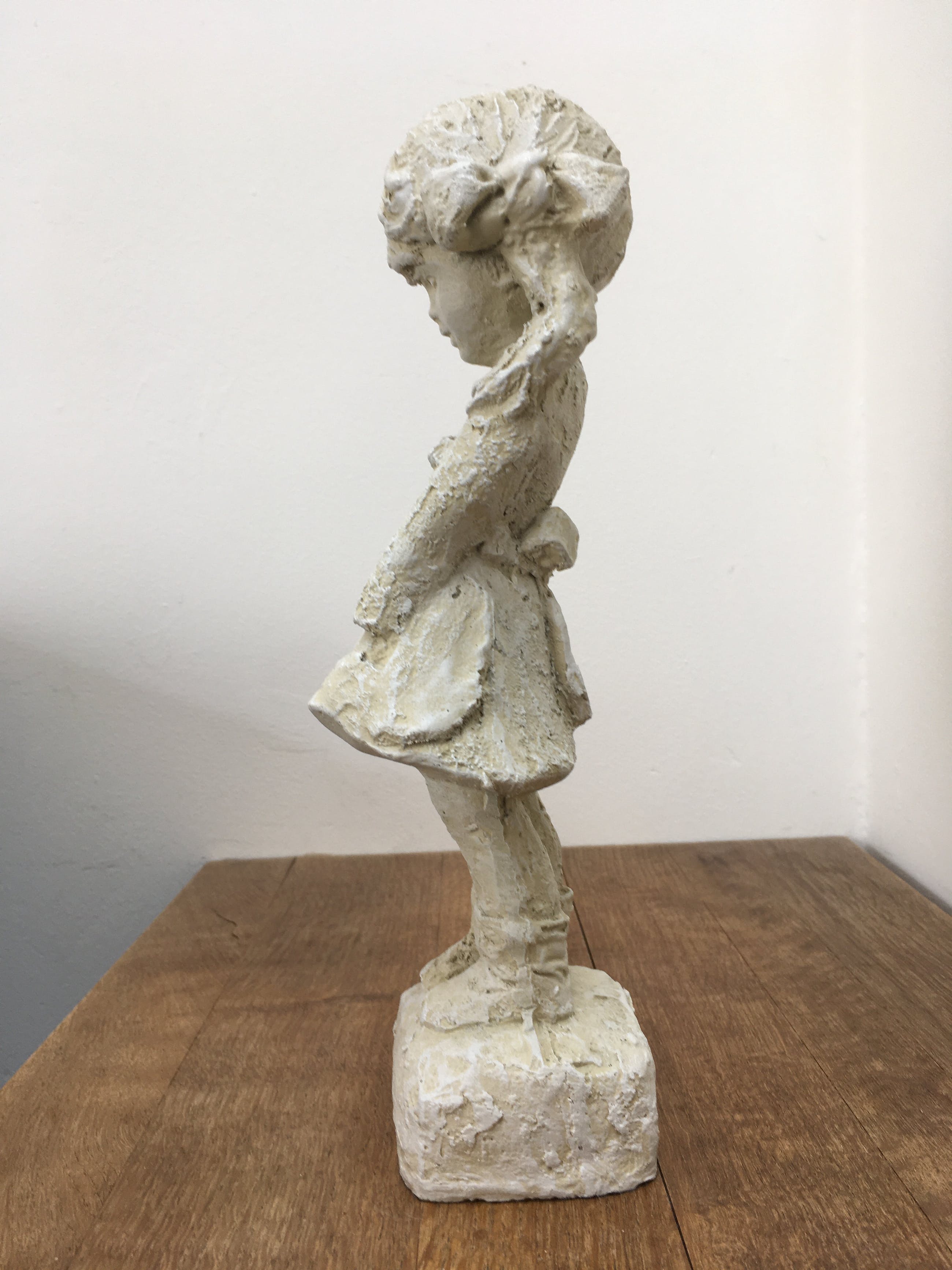 witte klei, licht beige gepatineerd en in zeer goede staat. Handgesigneerd.