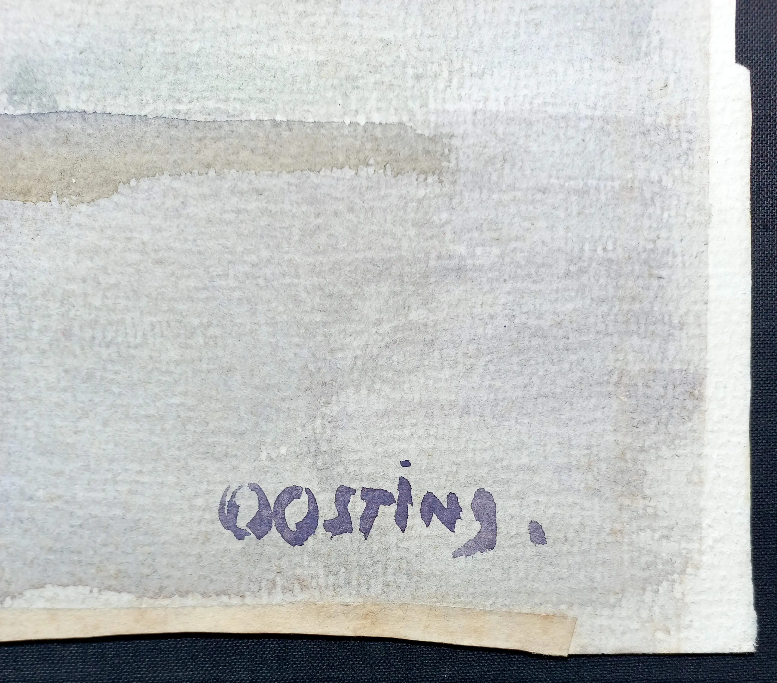 Blad heeft ingelijst gezeten maar geen spoor van foxing of verkleuringen, afgezien van de schaduw van een vorig passe-partout. Opnieuw ingelijst met passe-partout is het werk uitstekend.