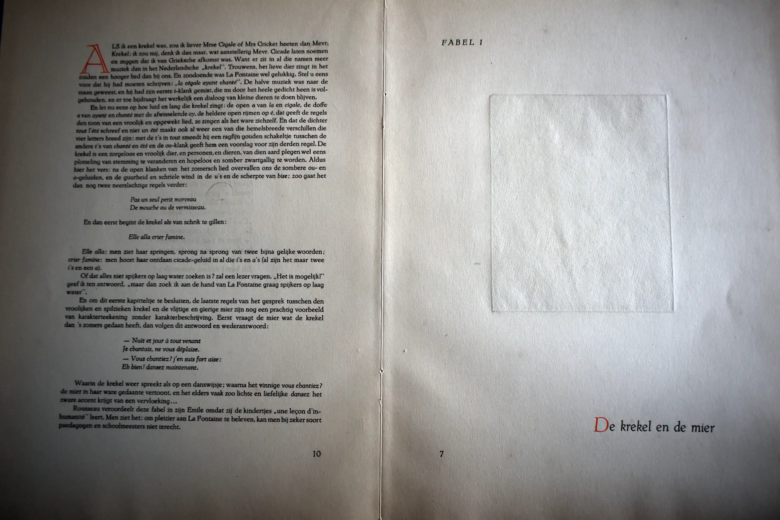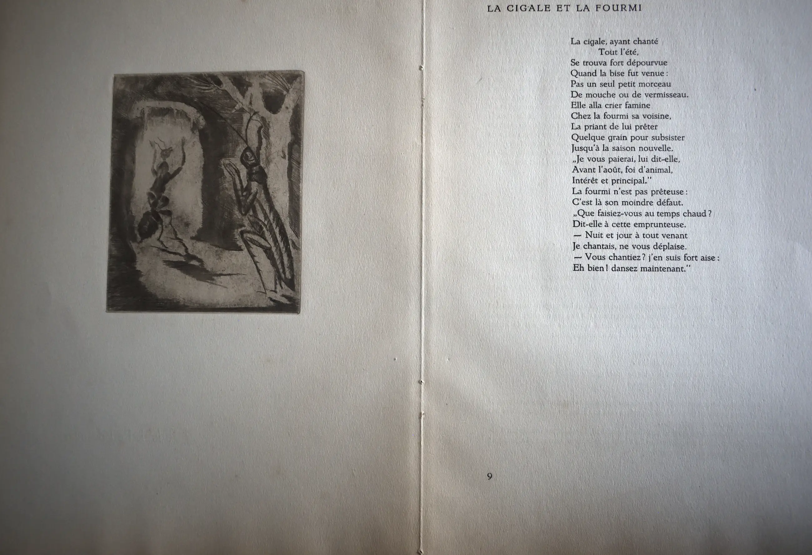 Ets naar een Fabel van Jean de La Fontaine. De krekel en de mier