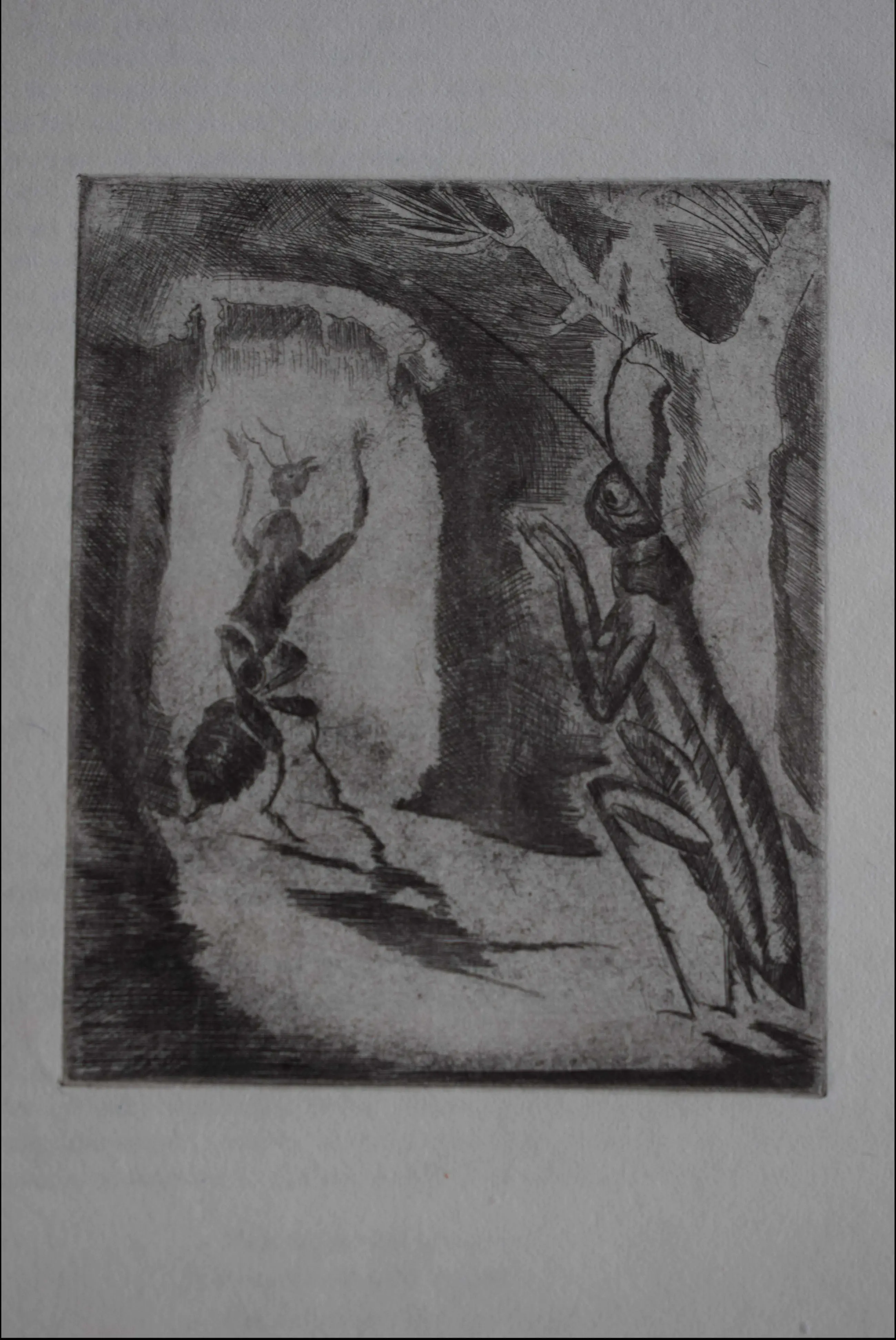 Voor het boek fabels van la Fontaine maakte Jeanne Bieruma Oosting een serie van 12 etsen.