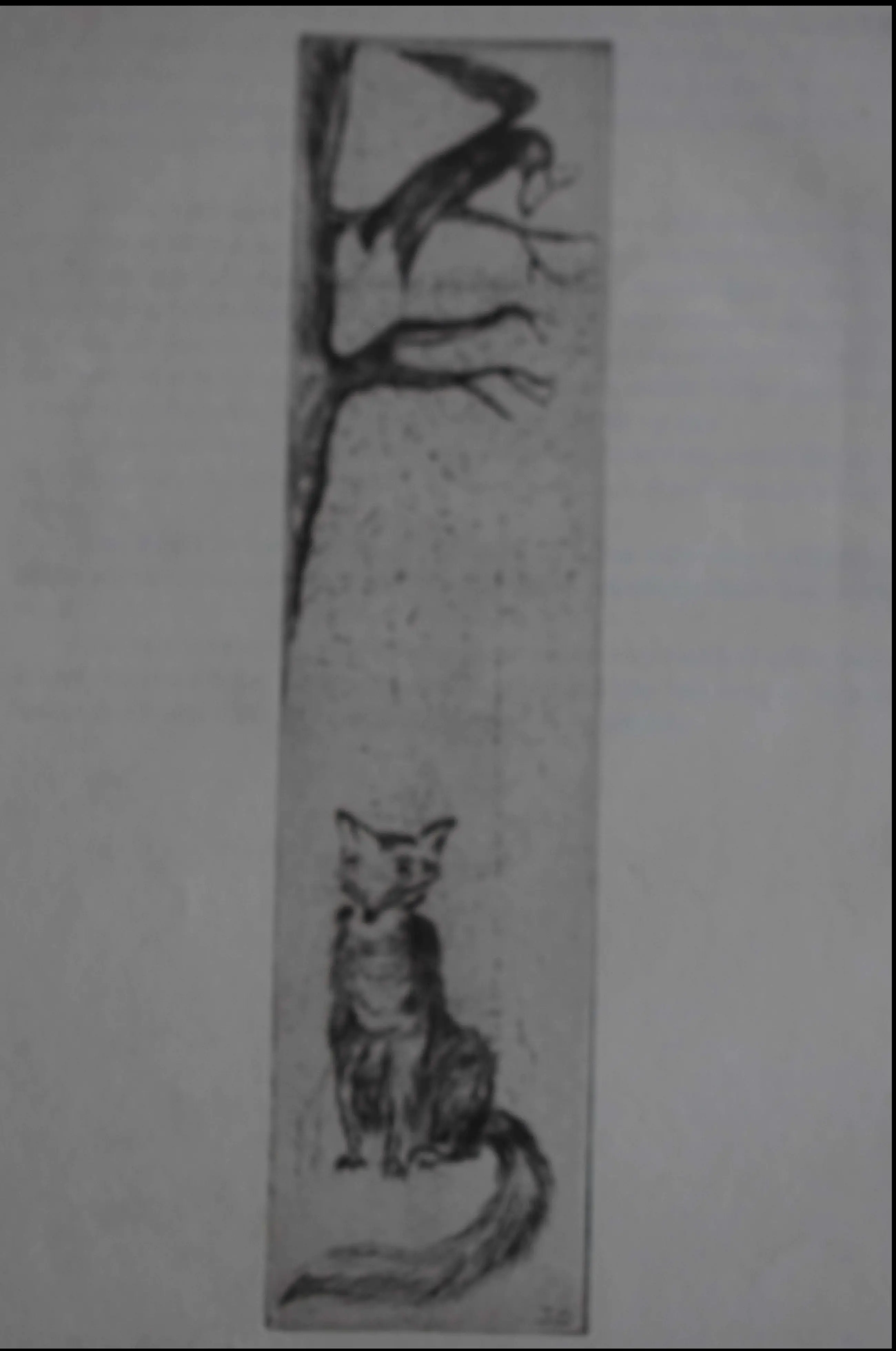 Voor het boek fabels van la Fontaine maakte Jeanne Bieruma Oosting een serie van 12 etsen.