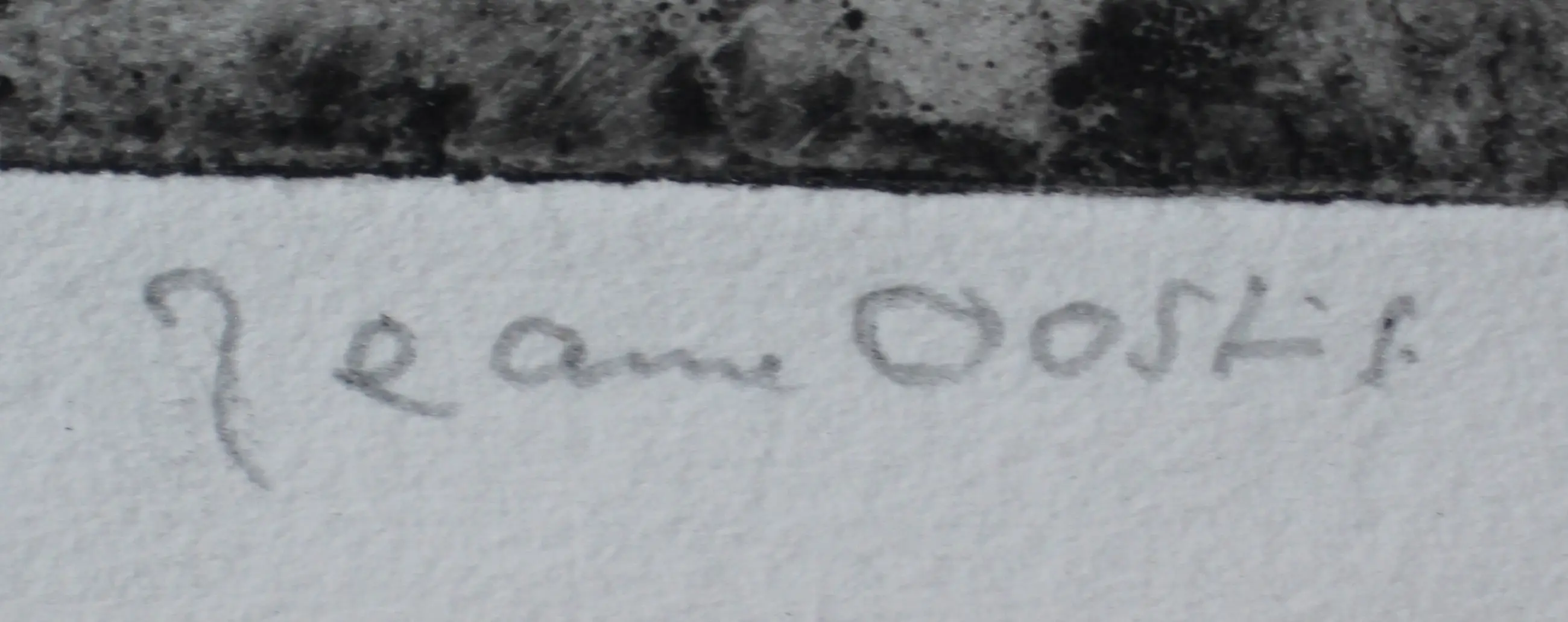 Ets van Jeanne Bieruma Oosting. Titel: 'Een winter in Rusland', Duiven in de sneeuw. Gedateerd: Moskou 1970. Afmetingen incl passe-partout: H44 x b32.5cm. Afmetingen voorstelling H12.5 x b.12.5cm. Het werk is rechtsonder gesigneerd door de kunstenares. De authenticiteit van dit werk wordt volledig gegarandeerd. Een certificaat kan, op aanvraag, worden gemaild.