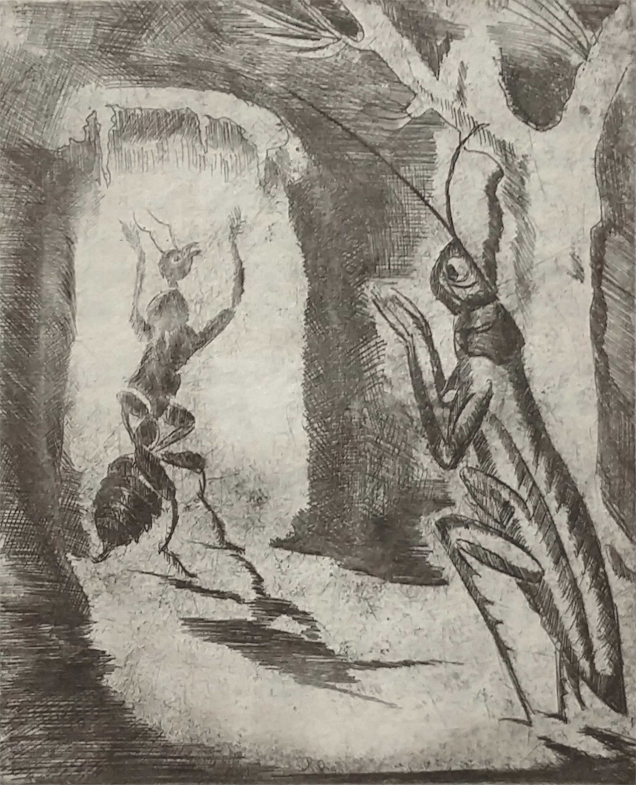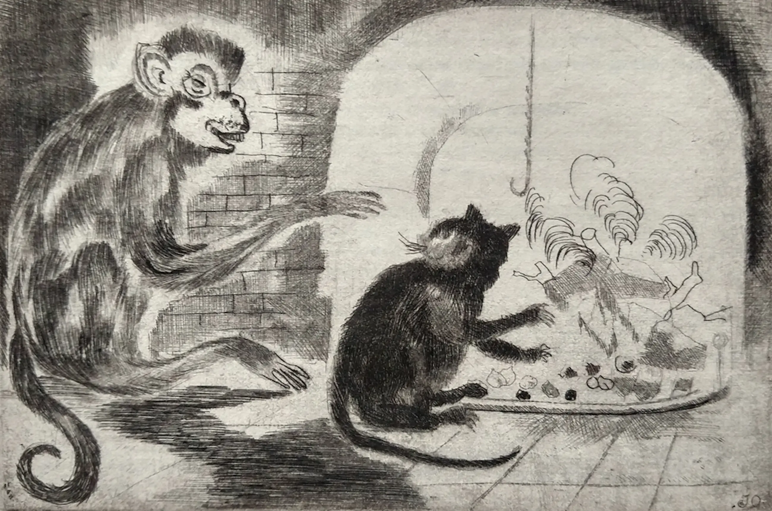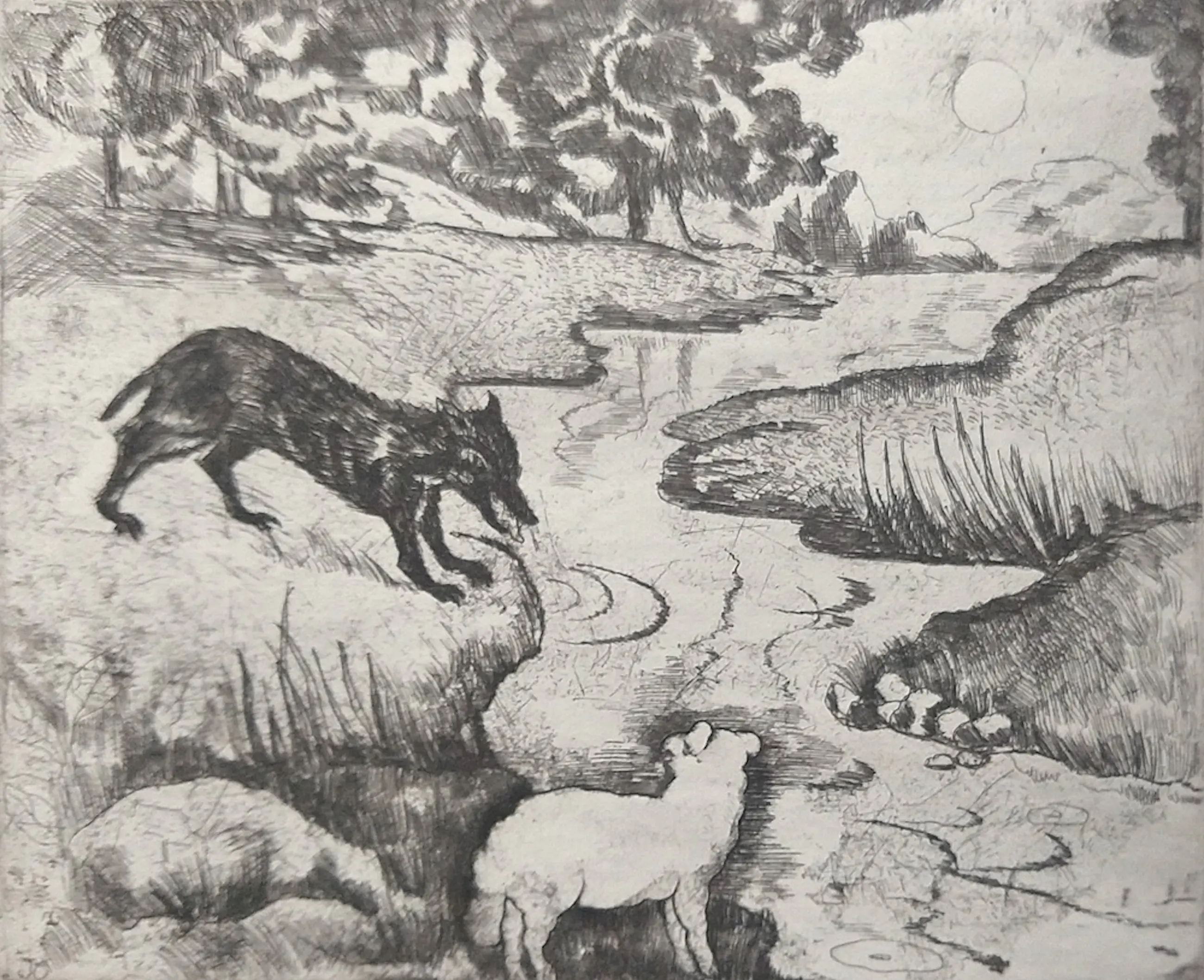 Boek met 12 etsen van de Nederlandse kunstenares Jeanne Bieruma Oosting. Betreft de fabels van La Fontaine. Het boek is uitgegeven in 1945. Genummerd 640 van 1000. Gesigneerd exemplaar.