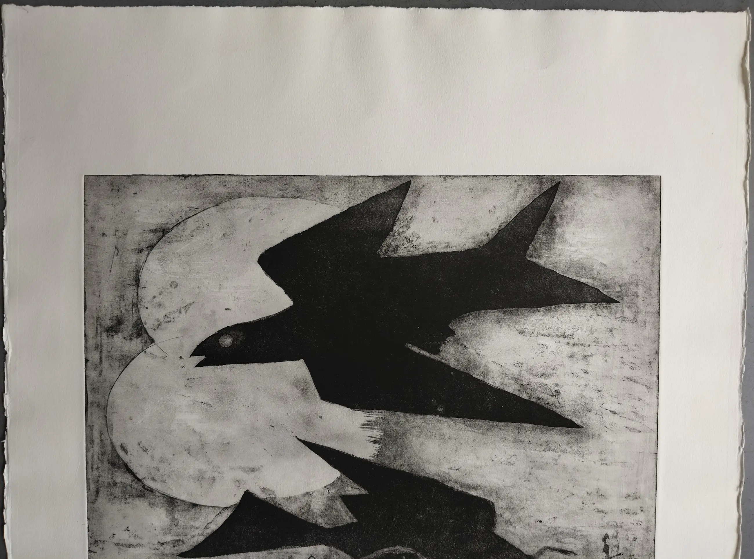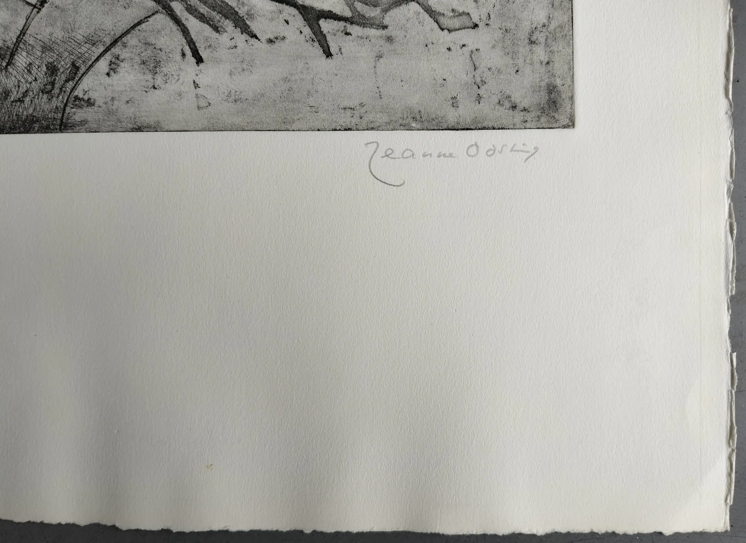 Jeanne Bieruma Oosting (1898-1994) gesigneerde ets, gedrukt in een oplage van 50 stuks. Rechtsonder is het werk gesigneerd in potlood. Linksonder met het nest 7/150. Afmeting beeld 39.5 x 39.5 cm. (hxb) Afmeting papier 65.5 x 50.5 cm. (hxb) In de rechter onder hoek zit een licht vouwtje. In de wit marge zitten wat kleine lichte vlekjes, kreukels en deukjes. Verder is het werk in prima staat en is nooit ingelijst geweest.