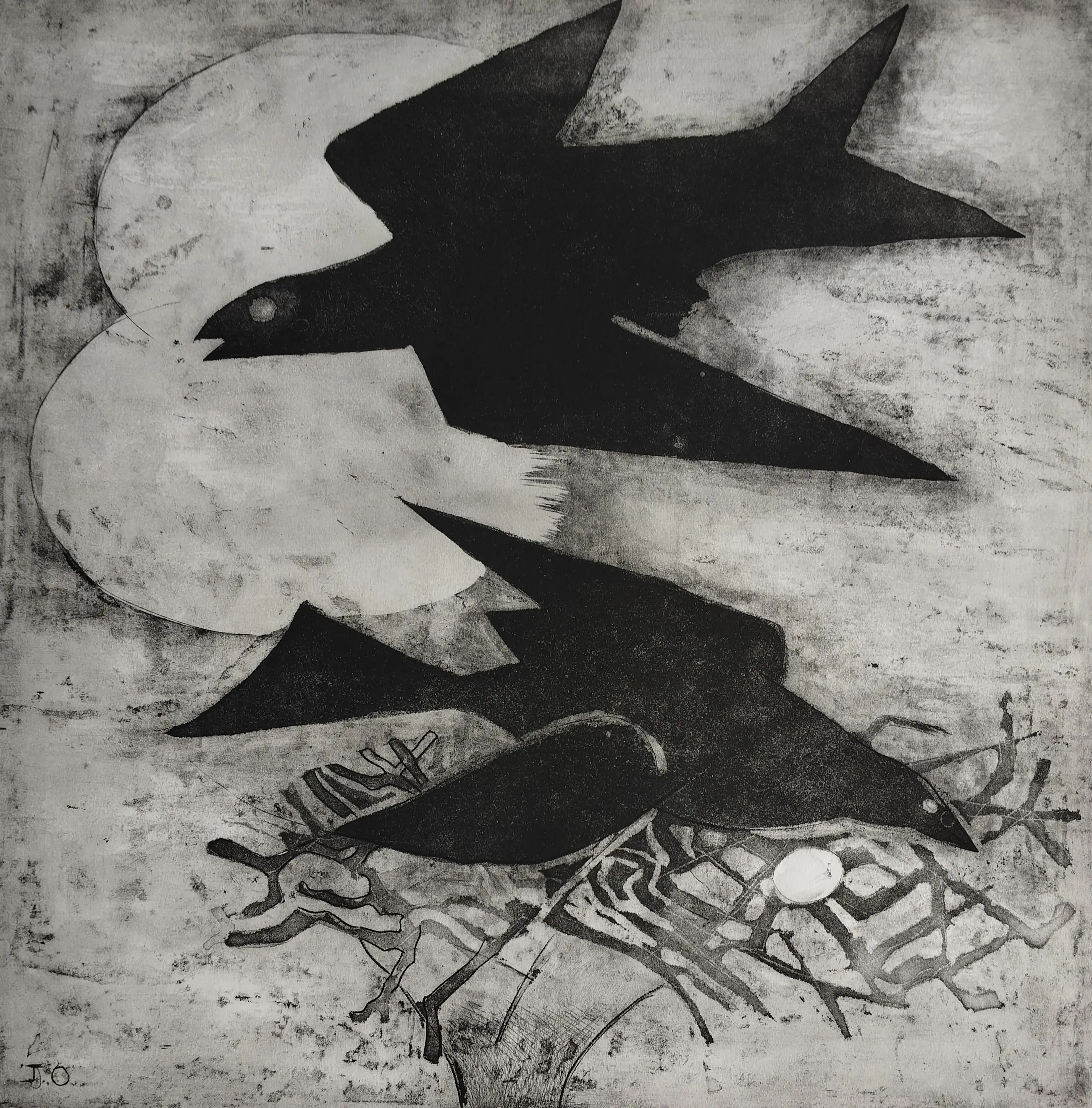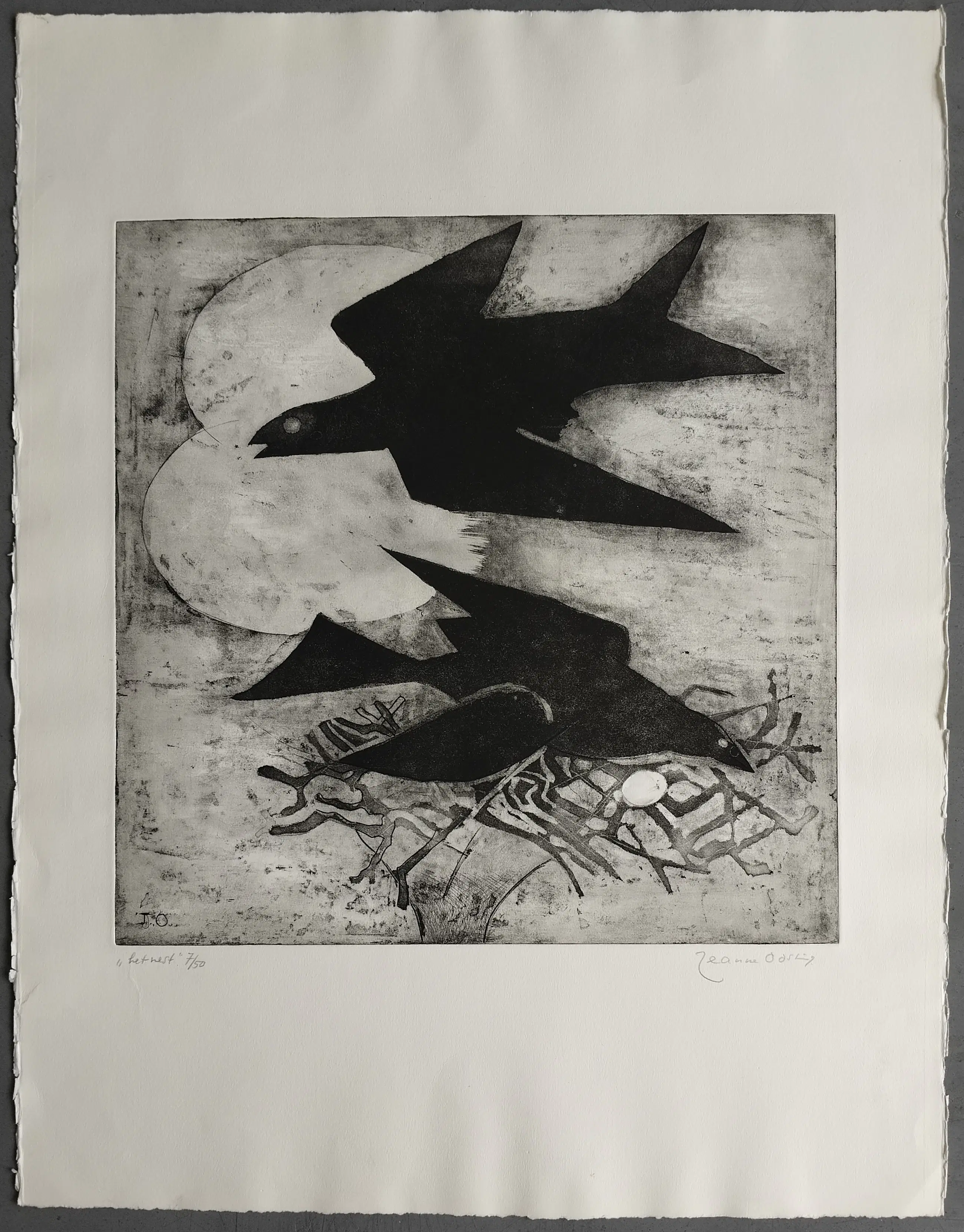 Jeanne Bieruma Oosting - het nest - gesigneerde ets