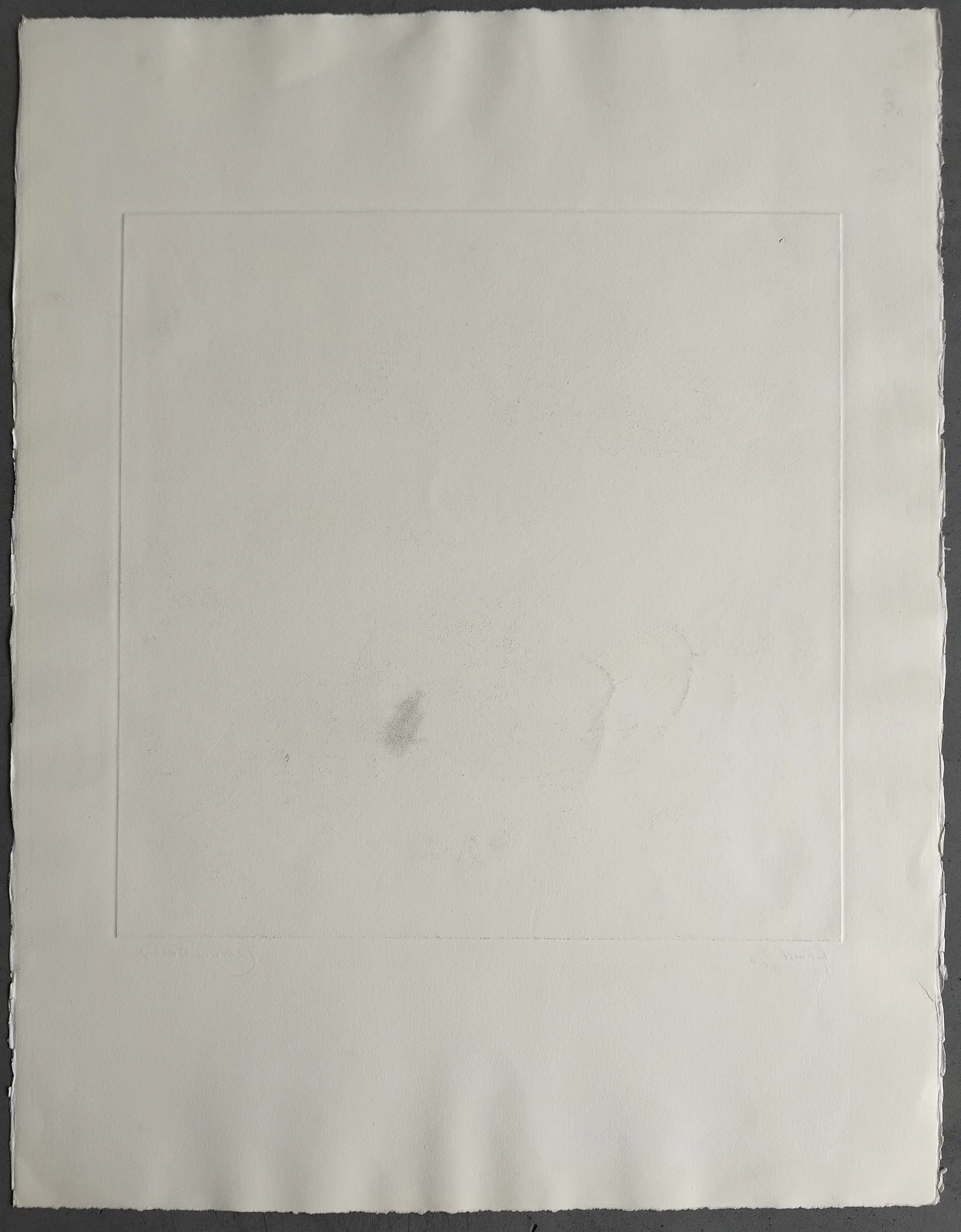 In de rechter onder hoek zit een licht vouwtje. In de wit marge zitten wat kleine lichte vlekjes, kreukels en deukjes. Verder is het werk in prima staat en is nooit ingelijst geweest.