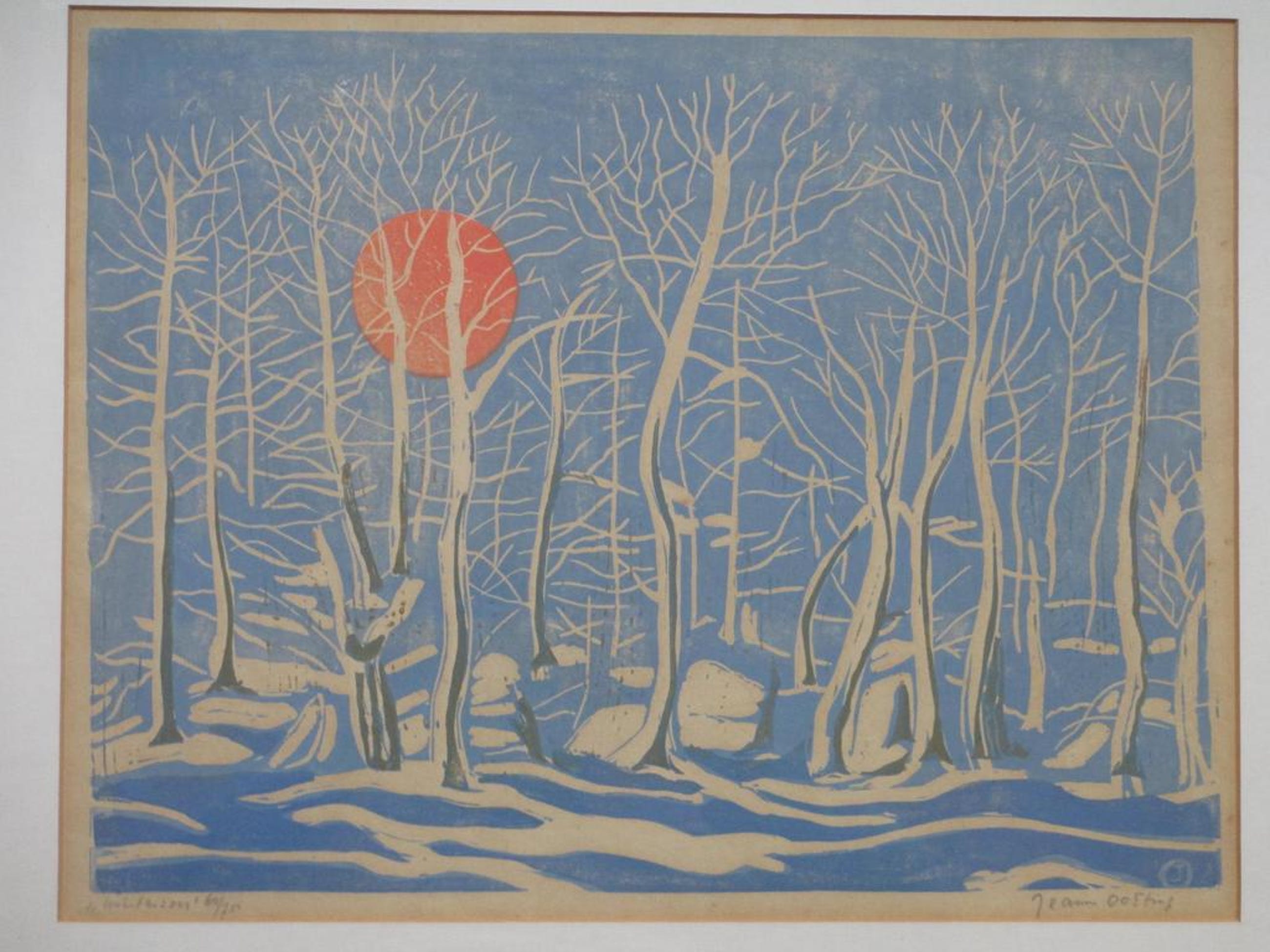 Fraaie kleurenhoutsnede door Jeanne Bieruma-Oosting.