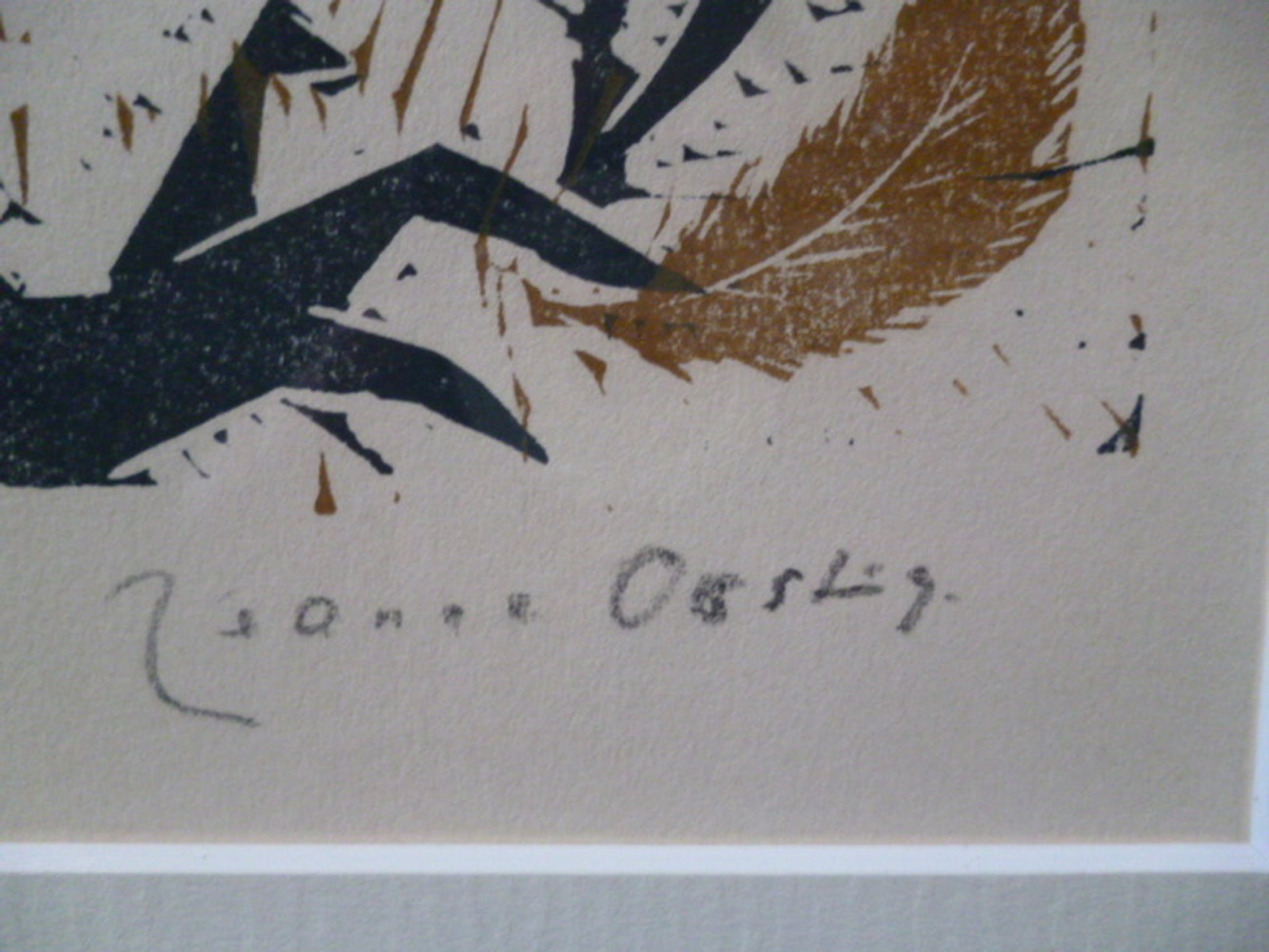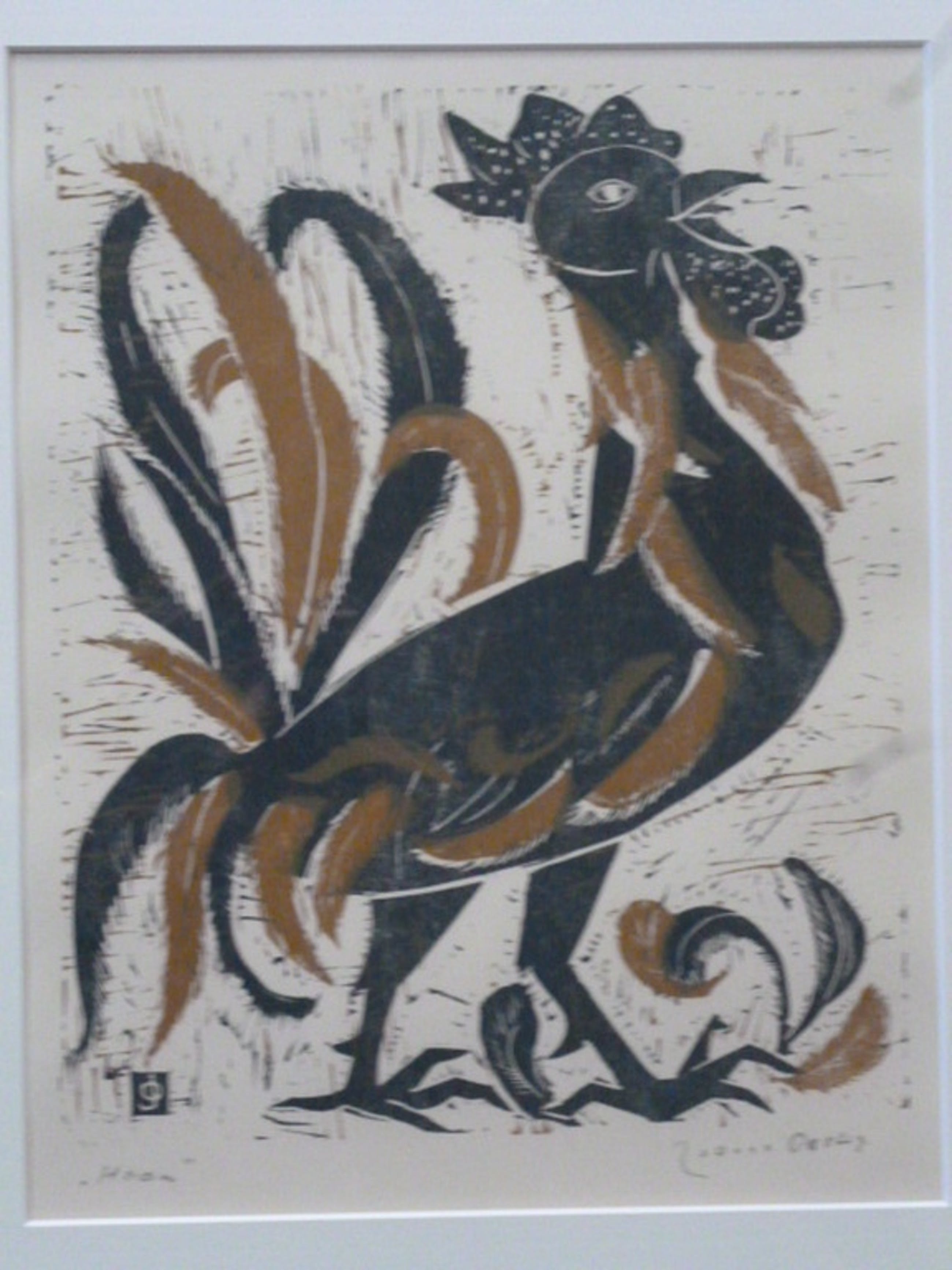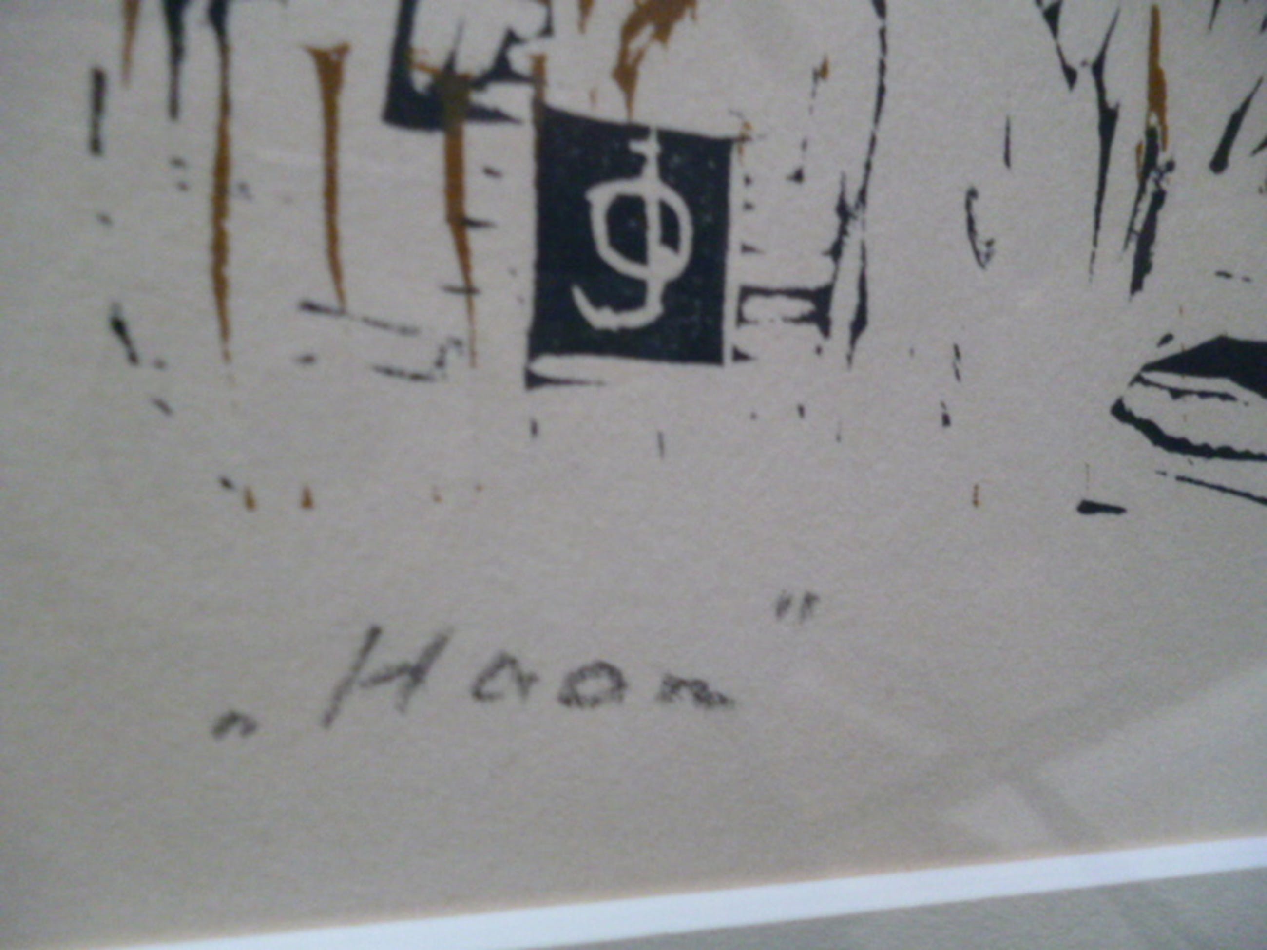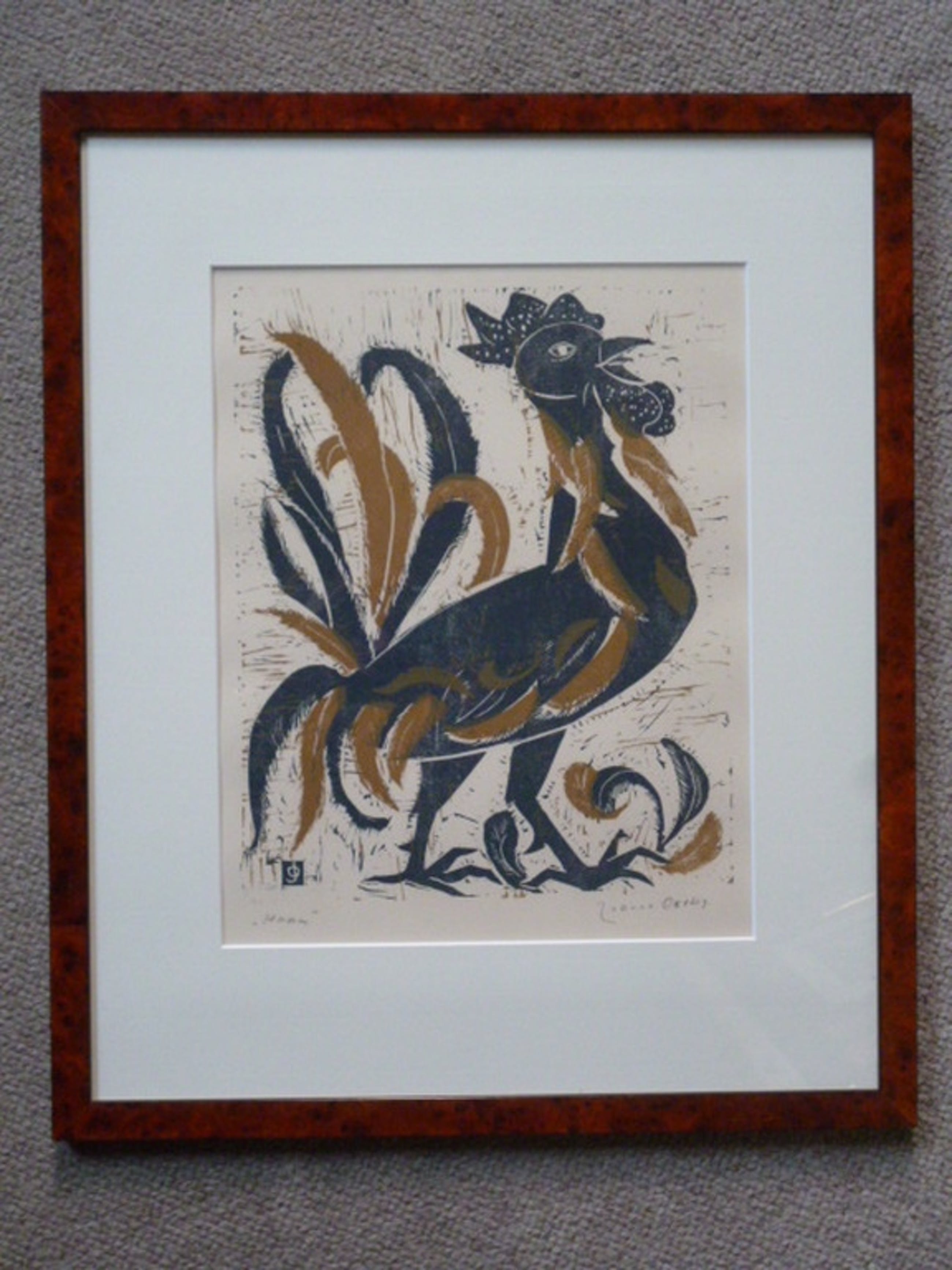 Kleurenlinosnede, potlood gesigneerd rechtsonder. Getiteld linksonder.
