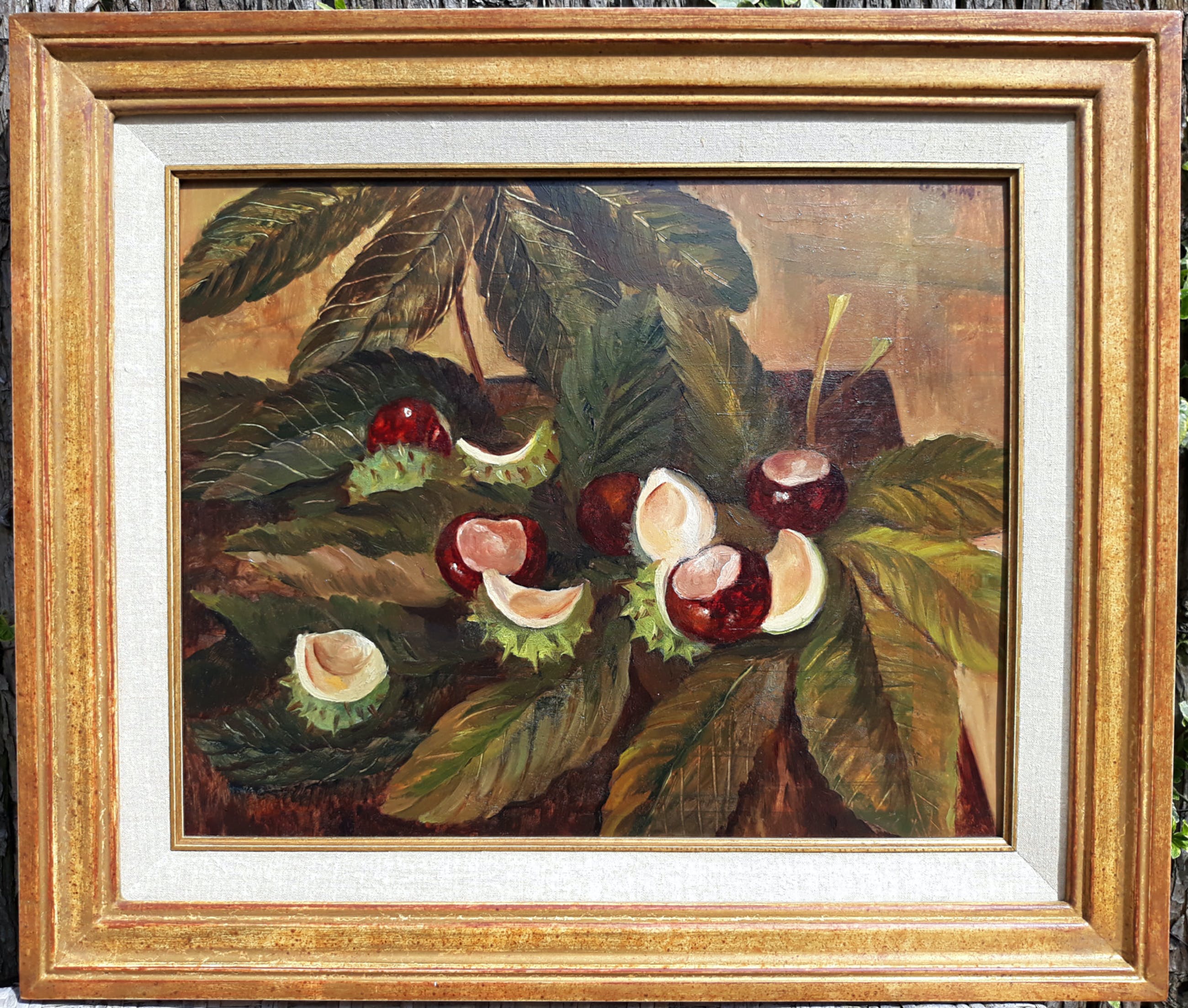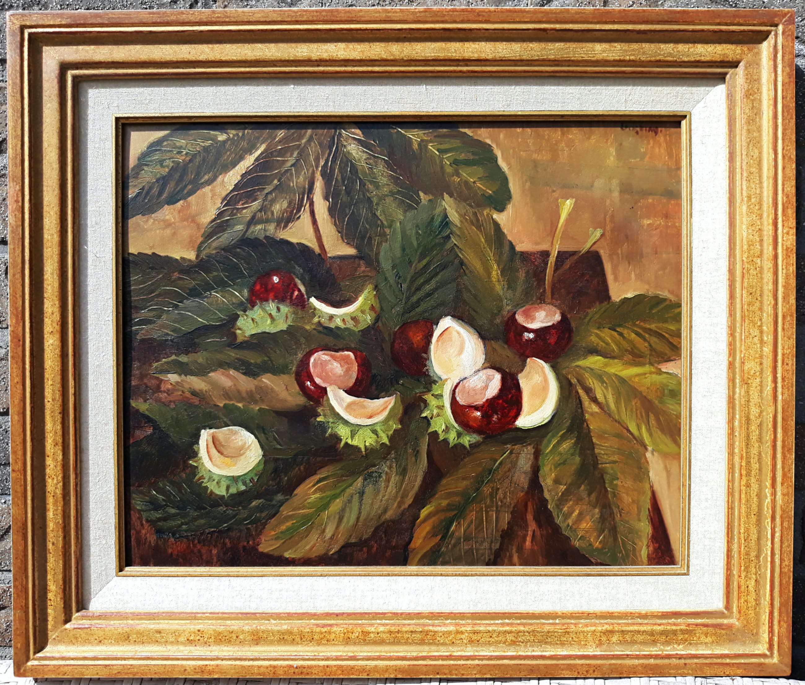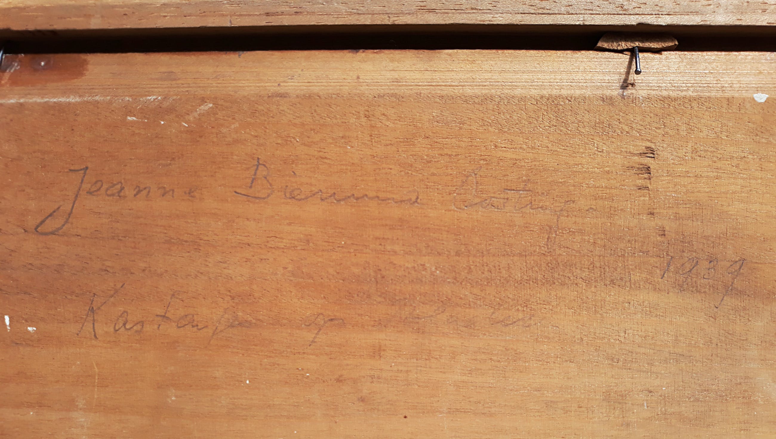Jeanne Bieruma Oosting heeft echt op het genoemde adres geregistreerd gestaan, er is in ieder geval een vermelding in het stadsarchief van Dordrecht met betrekking tot ingebracht werk voor een tentoonstelling (zie foto 7). Ook zit er een bijna identiek schilderij uit 1939 in de collectie van het Stedelijk Museum in Amsterdam, bijna zeker geschilderd naar dezelfde selectie kastanjes en bladeren (zie foto 8).