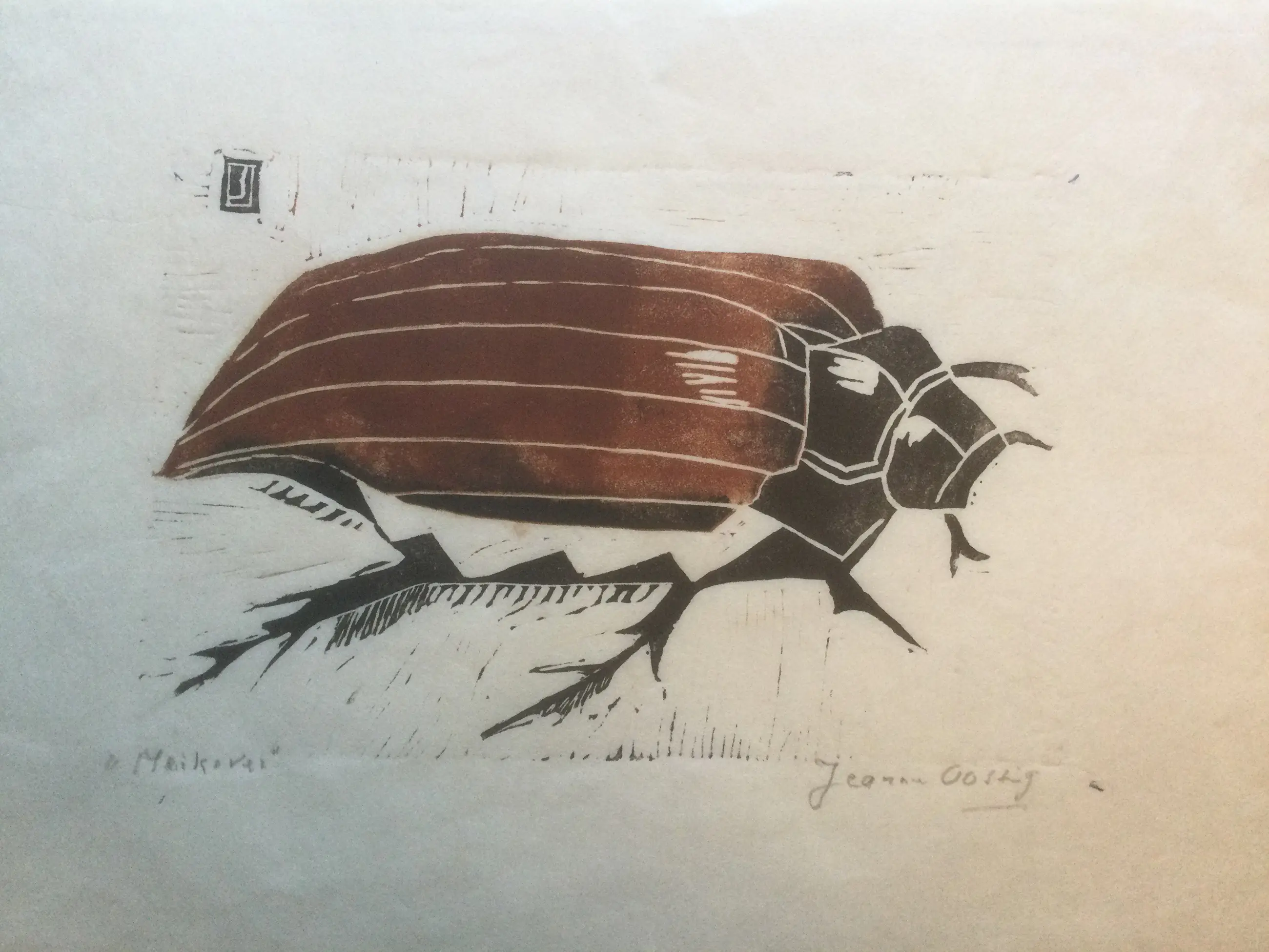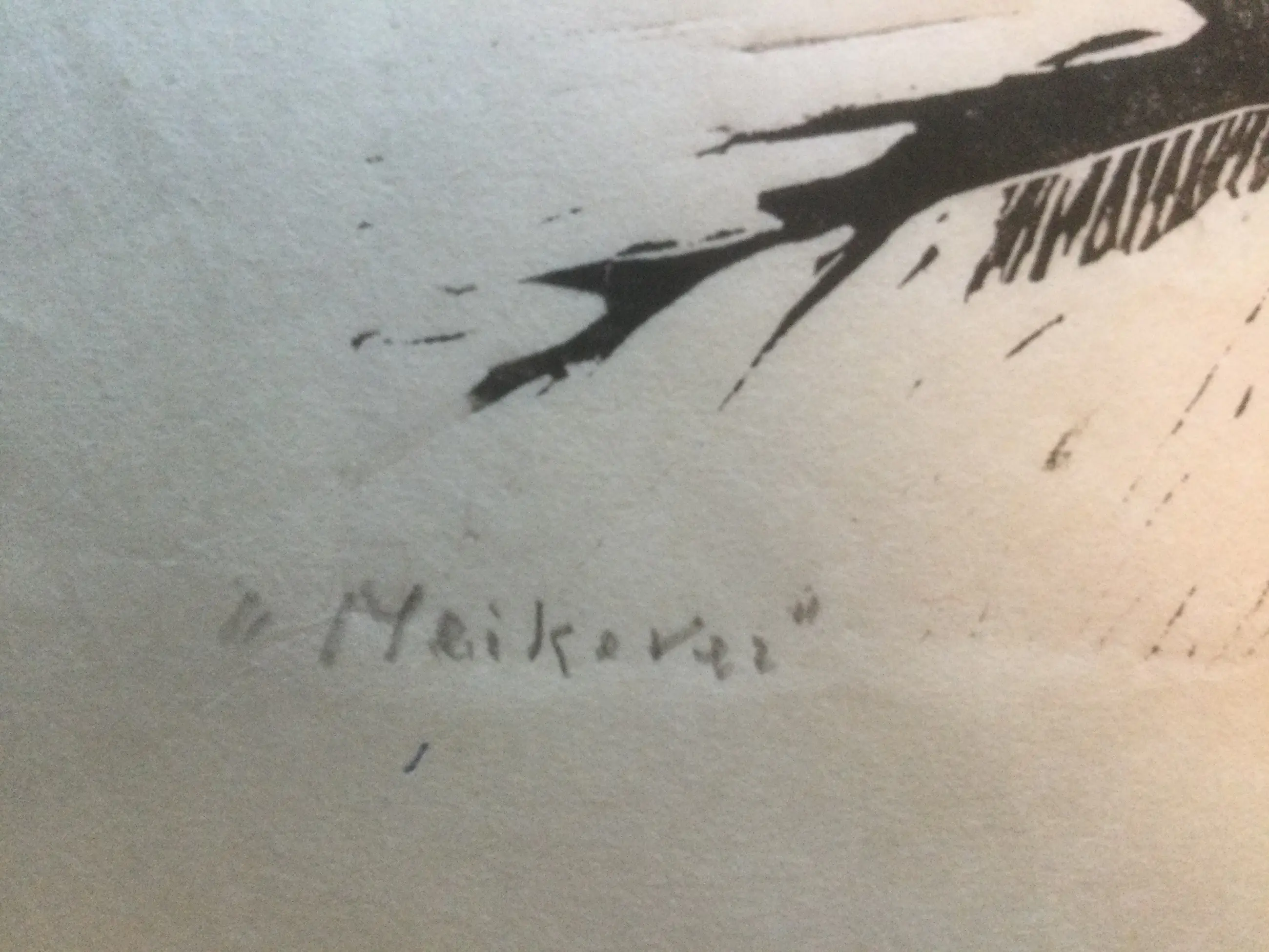 Mooie linosnede. Papierformaat 34 bij 51,5 centimeter.