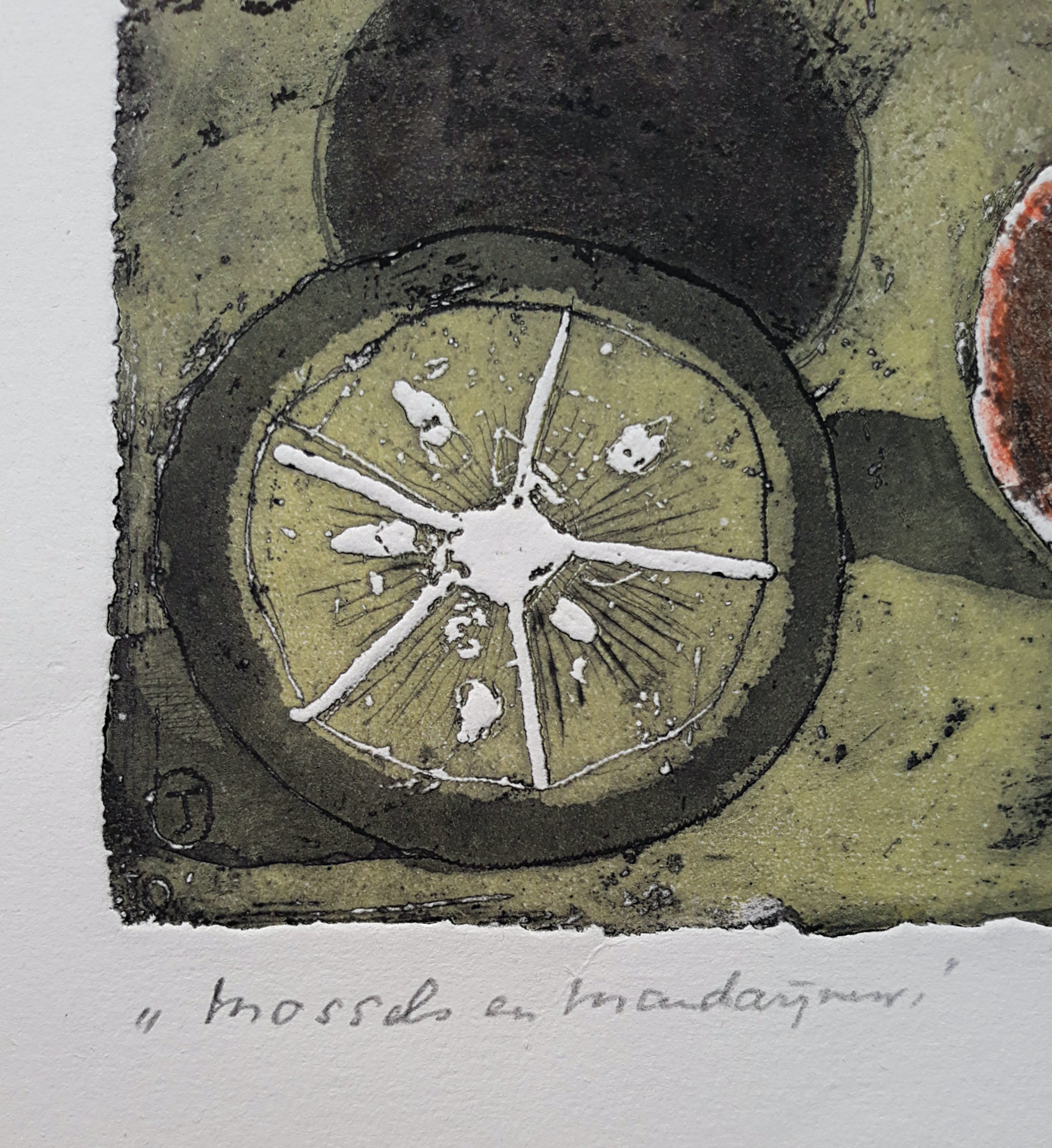 Prachtig, karakteristiek stilleven door Jeanne Bieruma Oosting. Reliëfets met aquatint ets op geschept papier, met potlood gesigneerd en getiteld. In uitstekende conditie. Deze ets zit ook in de collectie van het Rijksmuseum.
