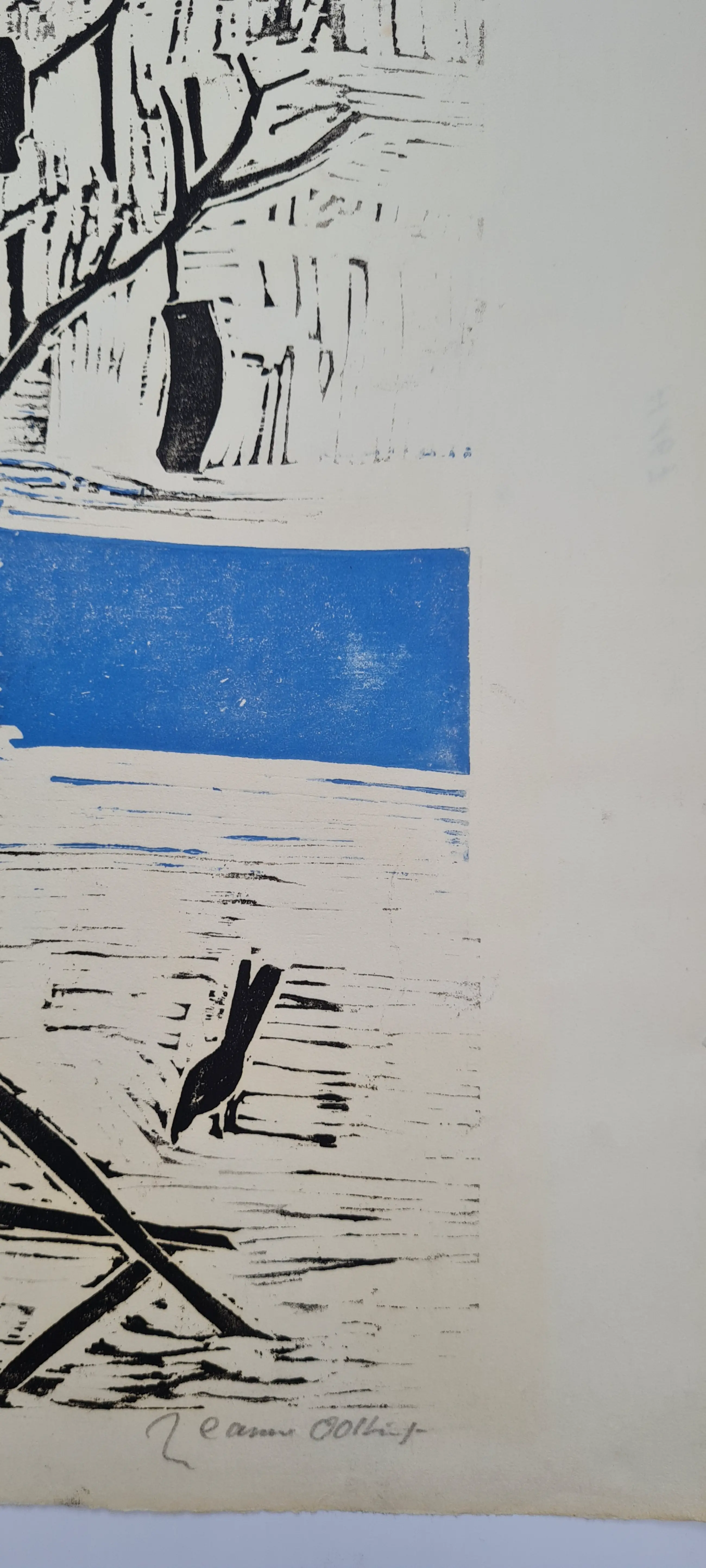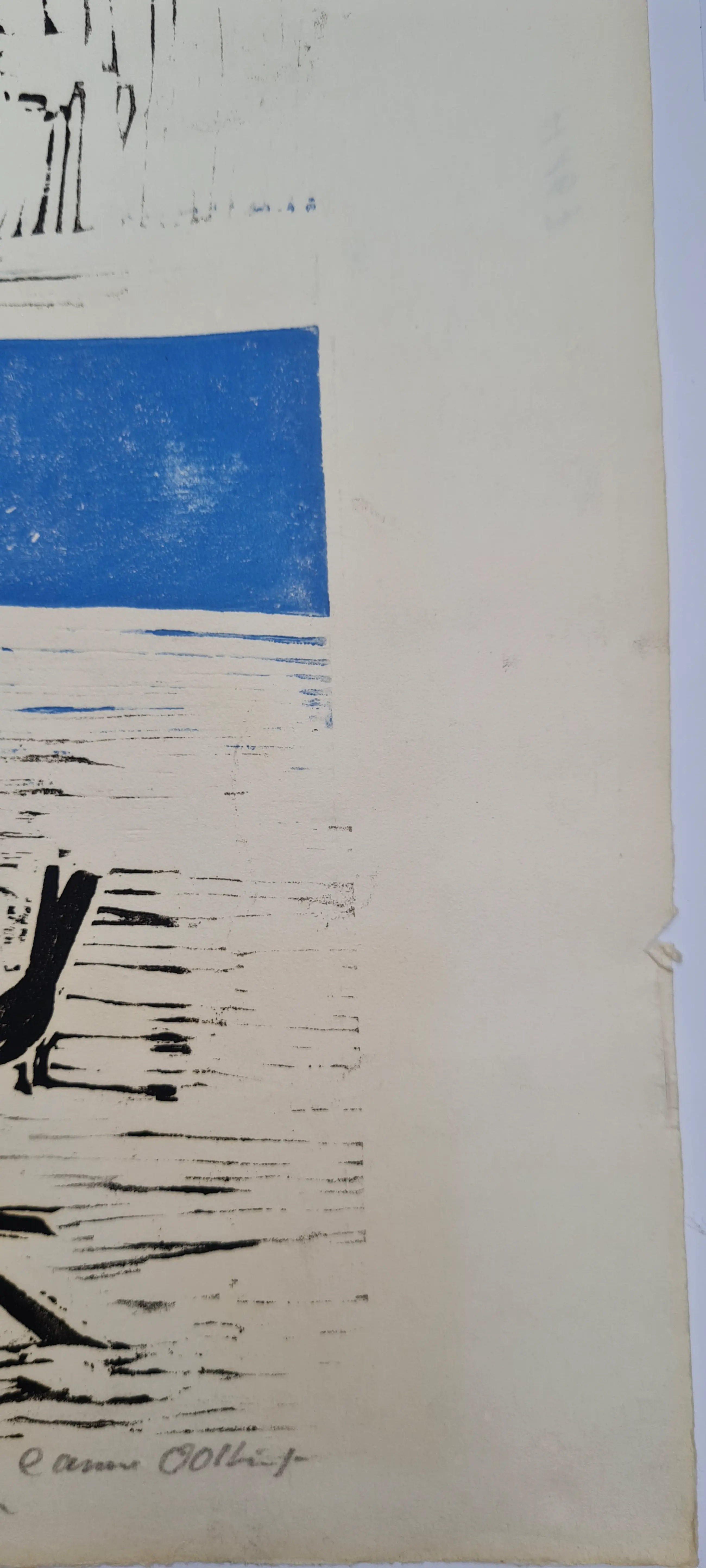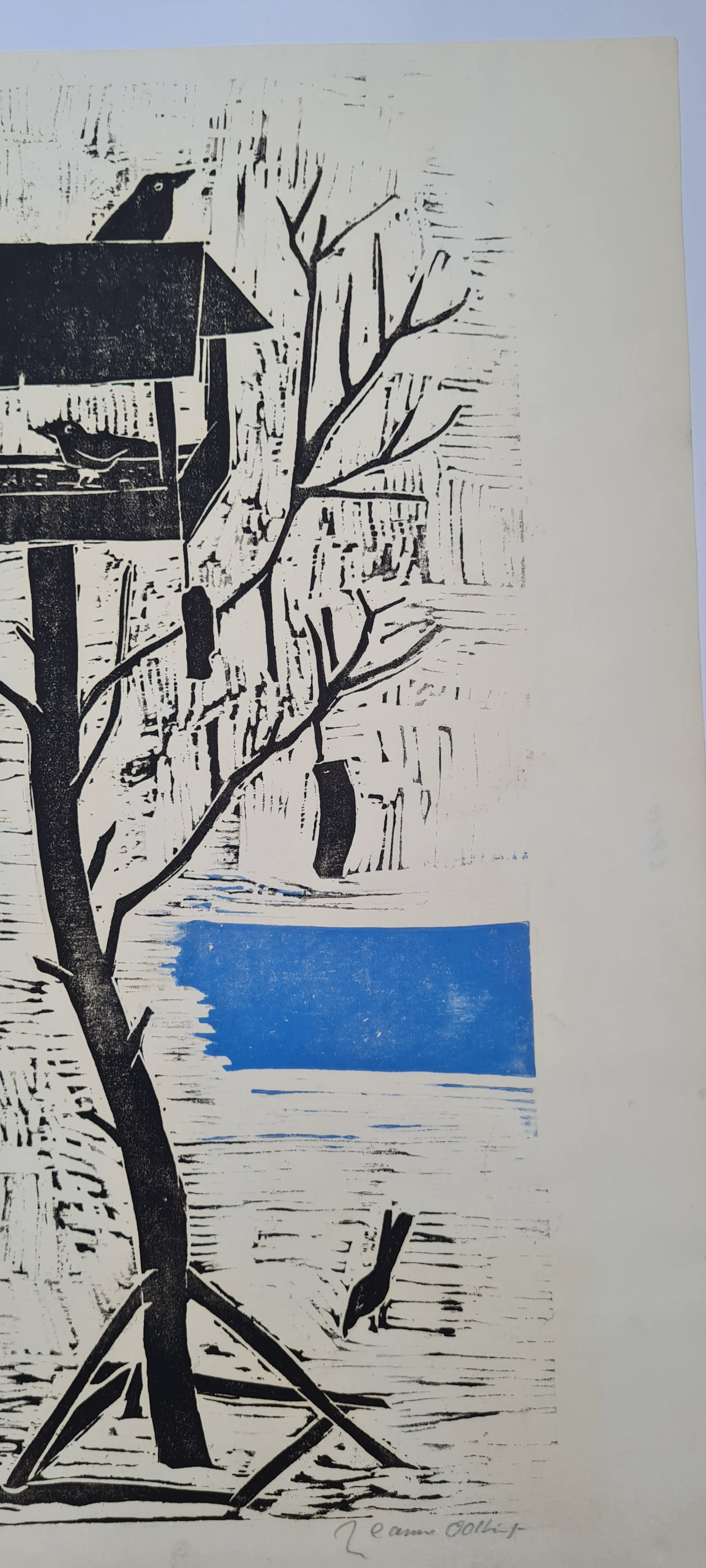 Leuke handgesigneerde linosnede van Jeanne Bieruma Oosting.