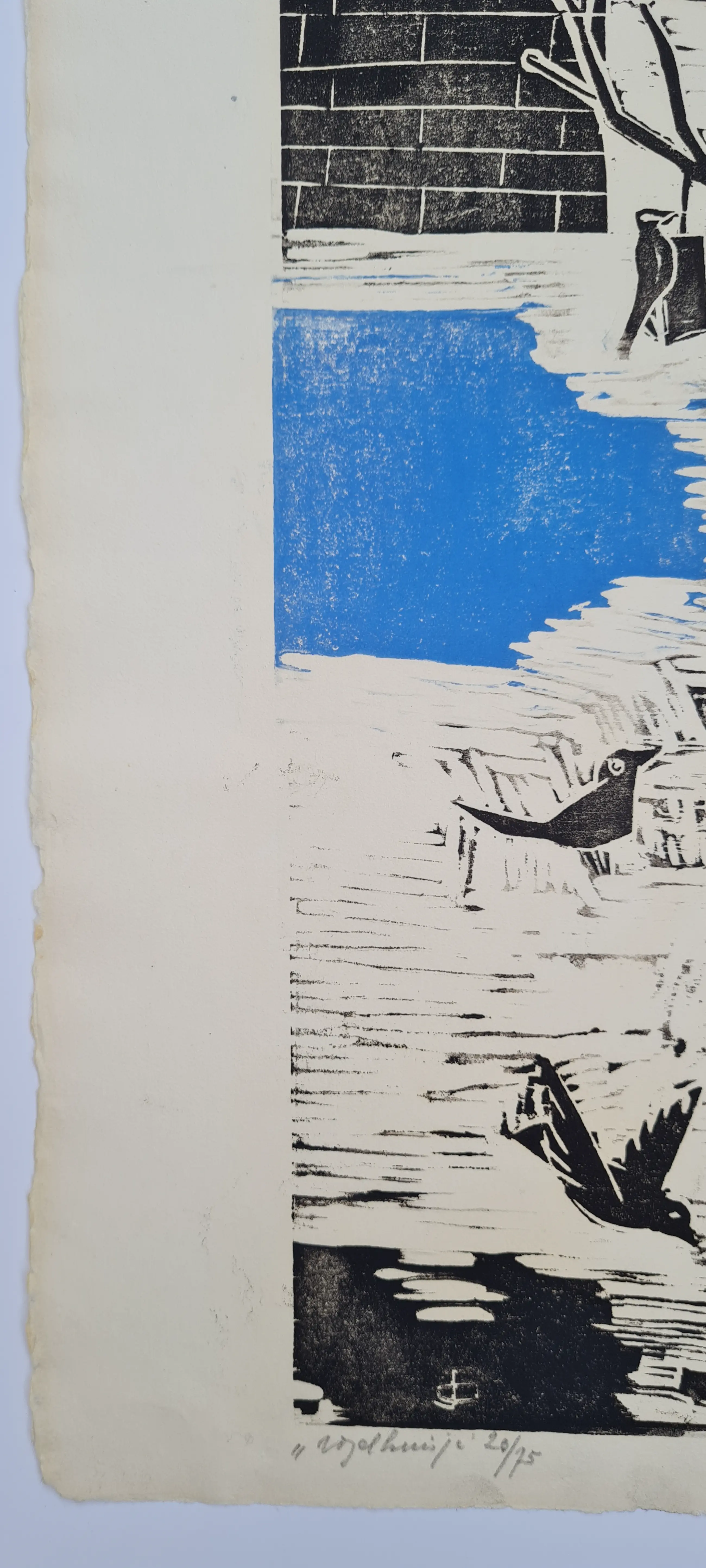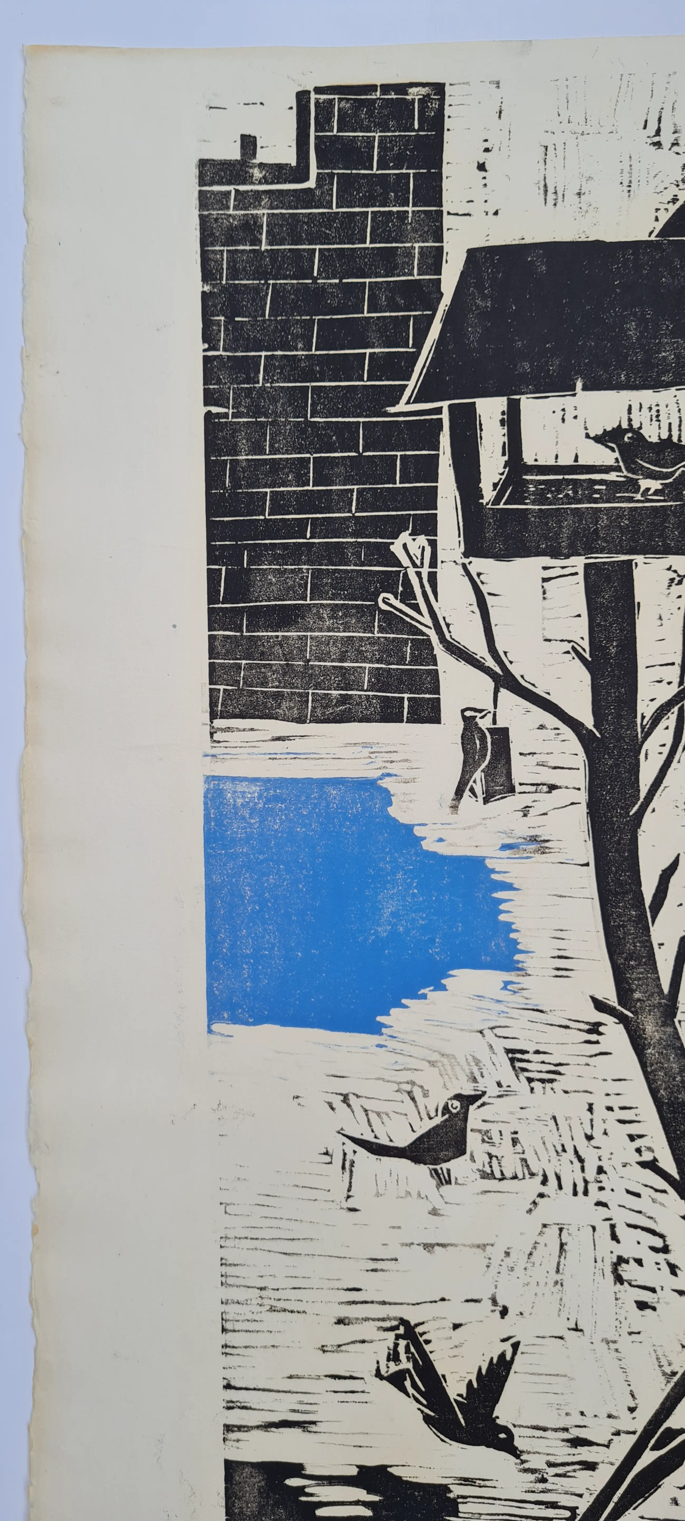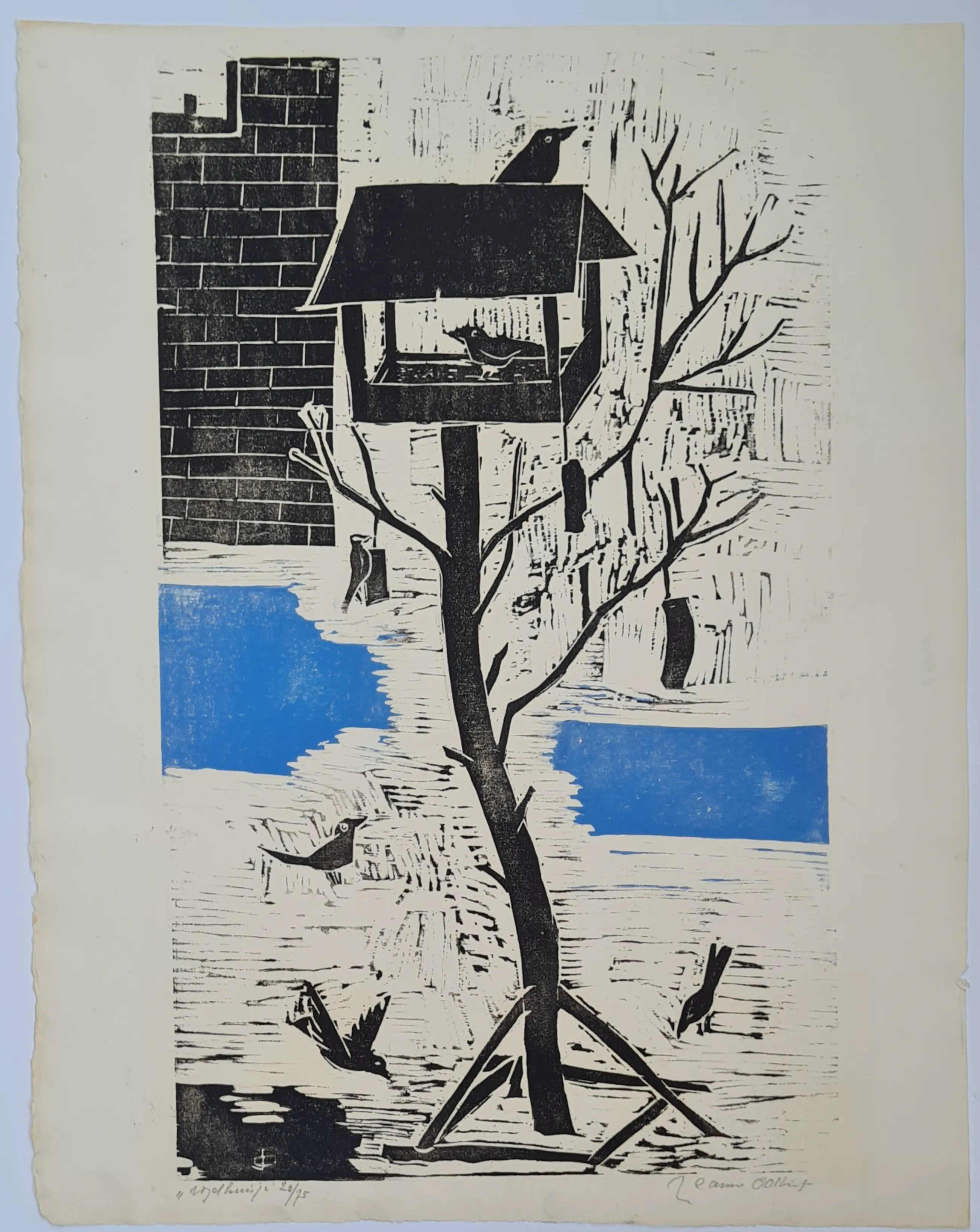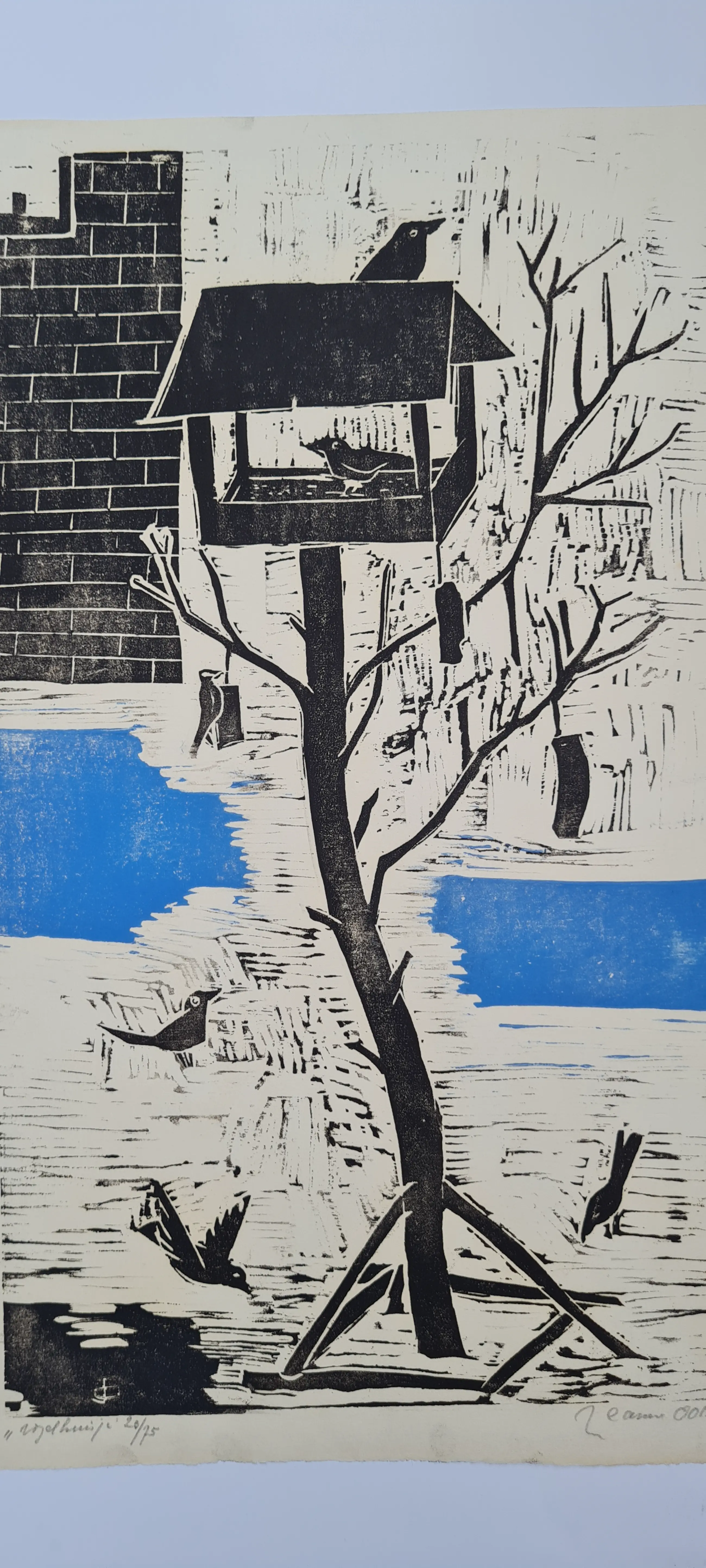 Leuke handgesigneerde linosnede van Jeanne Bieruma Oosting.