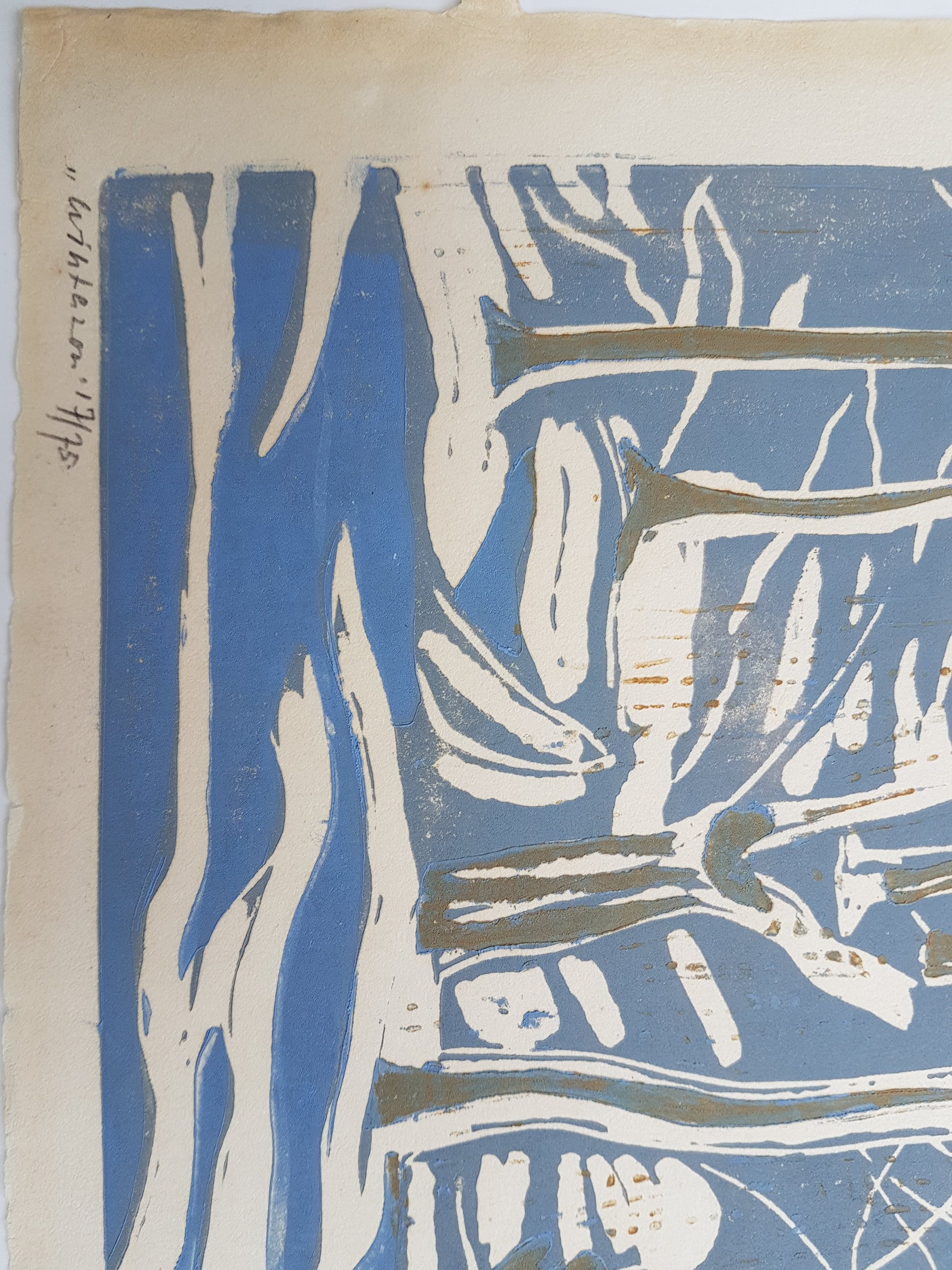 Leuke houtsnede van Jeanne Oosting, handgesigneerd, getiteld en genummerd in potlood.